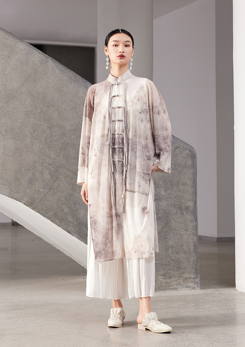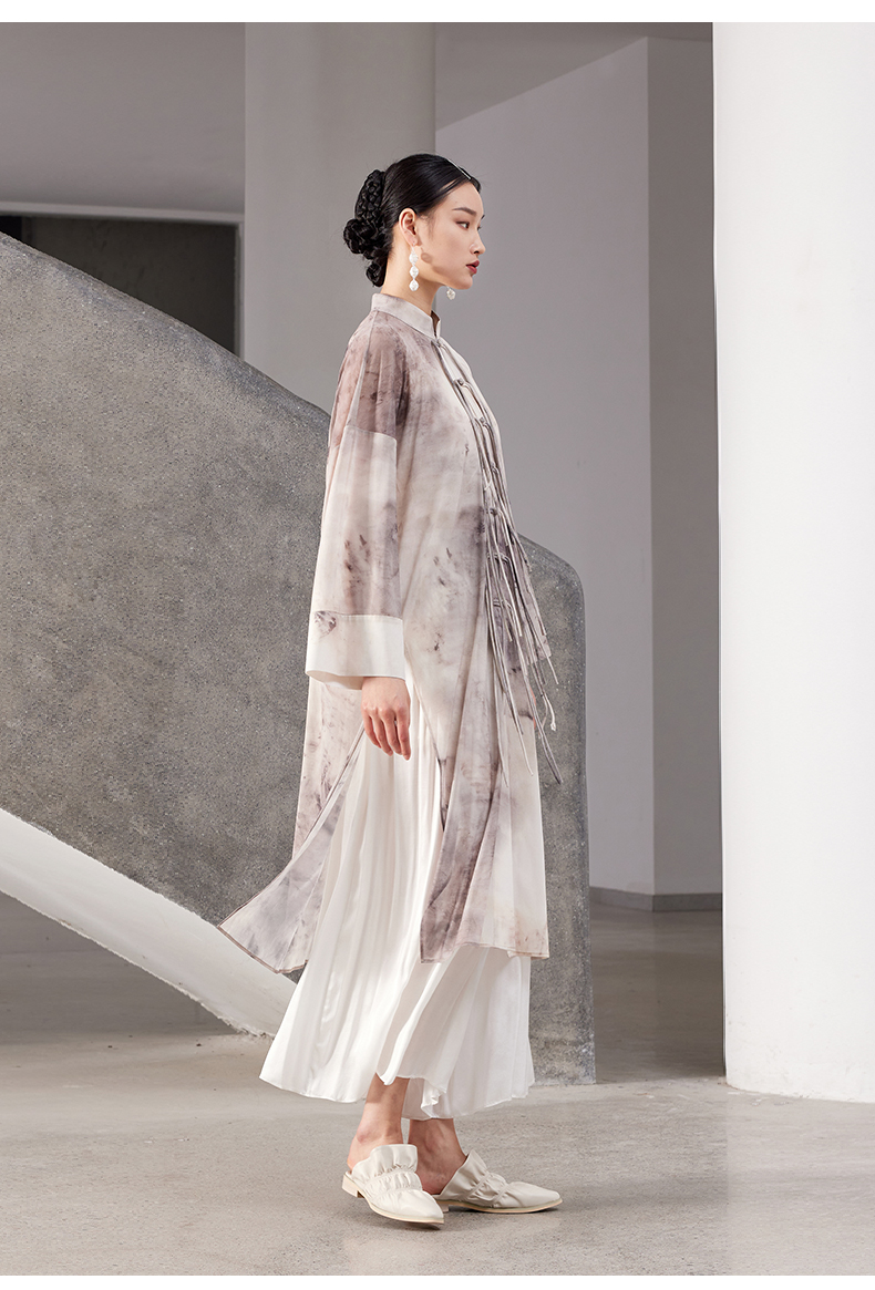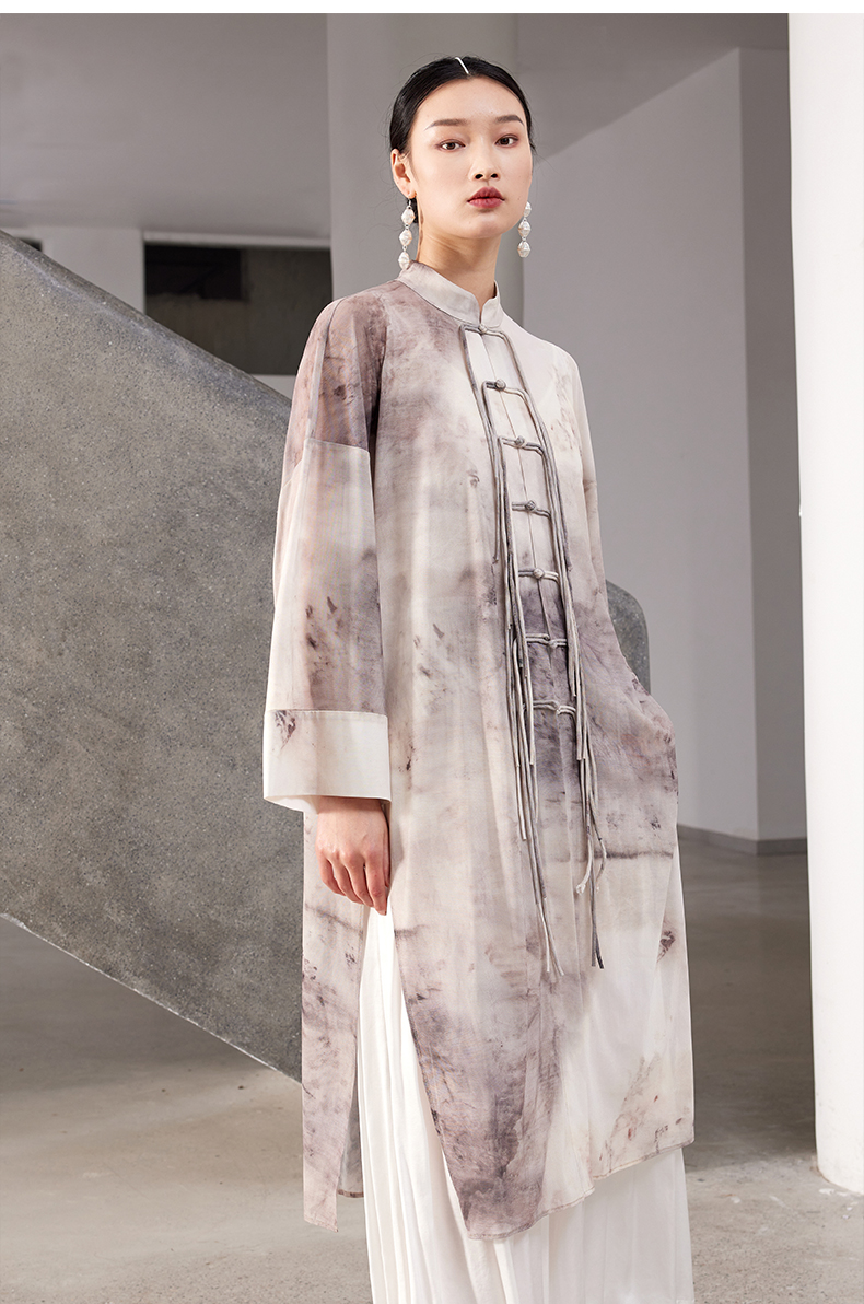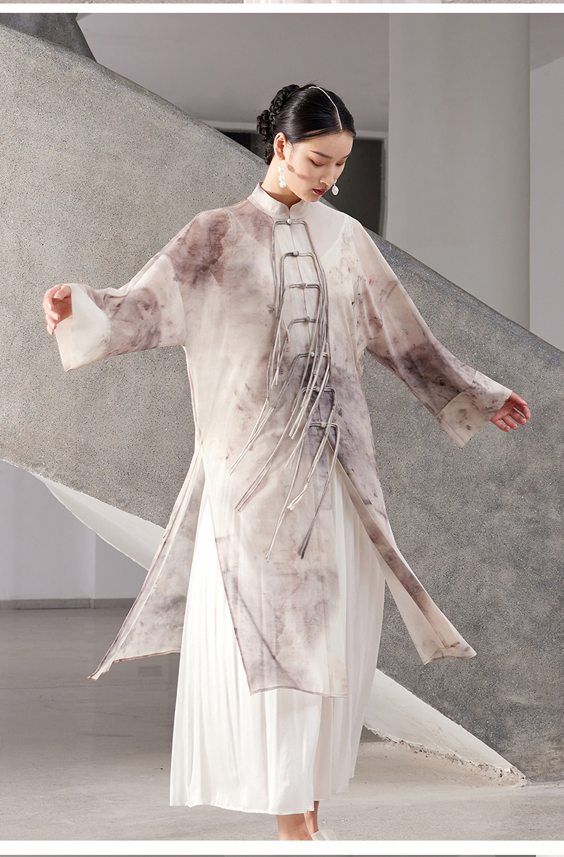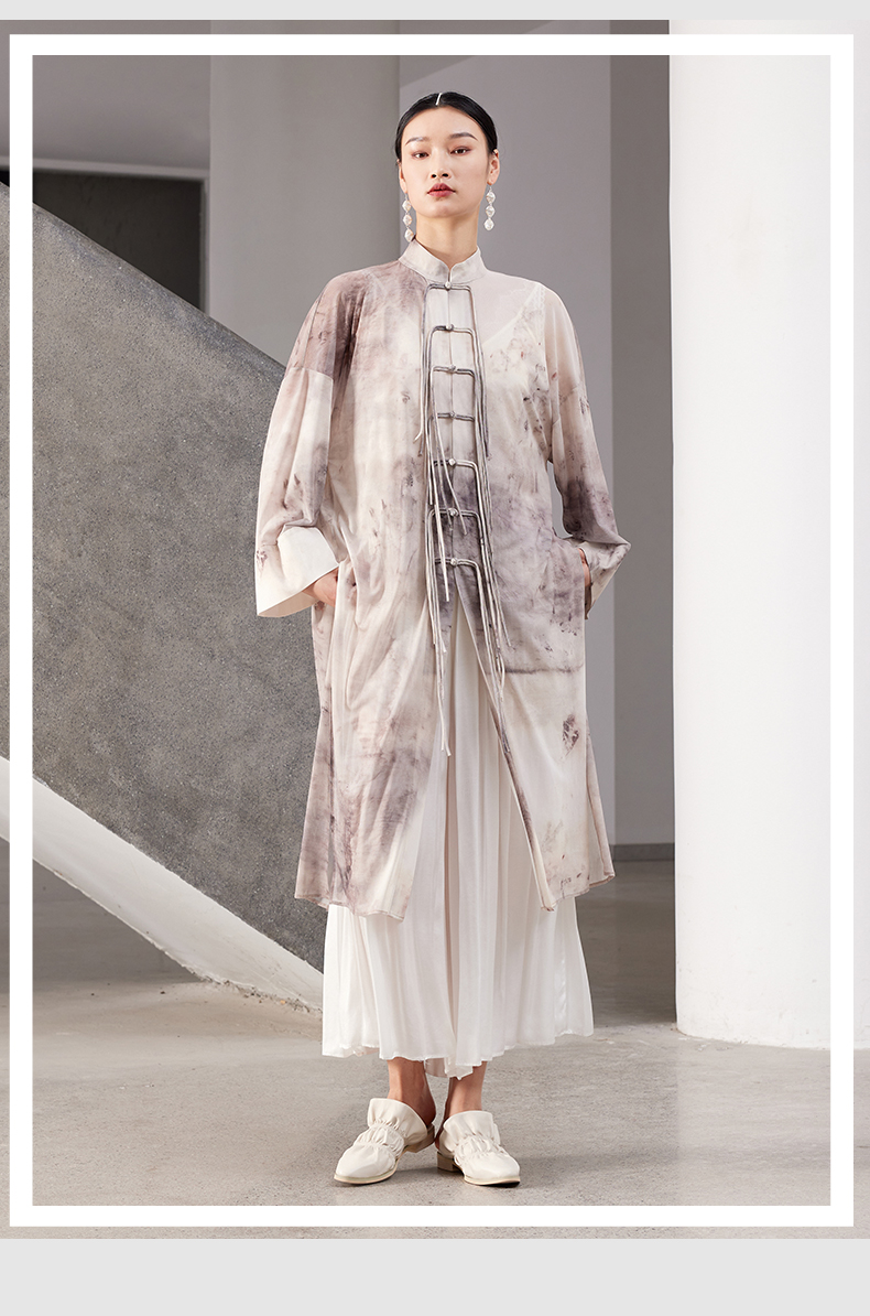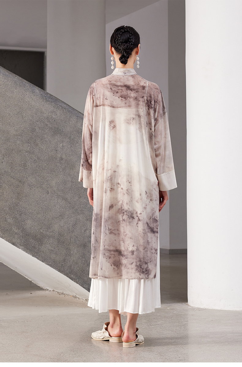 ASAYA4167 ✨ Sheer Smudged Print Long Top ✨