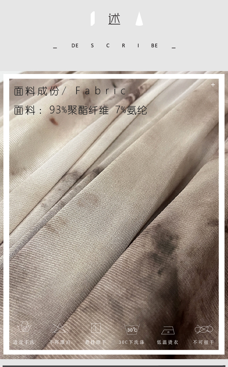 | Material composition | Polyester fiber 93% polyurethane elastic fiber (spandex) 7% |