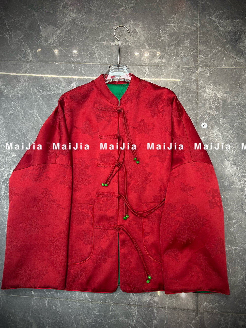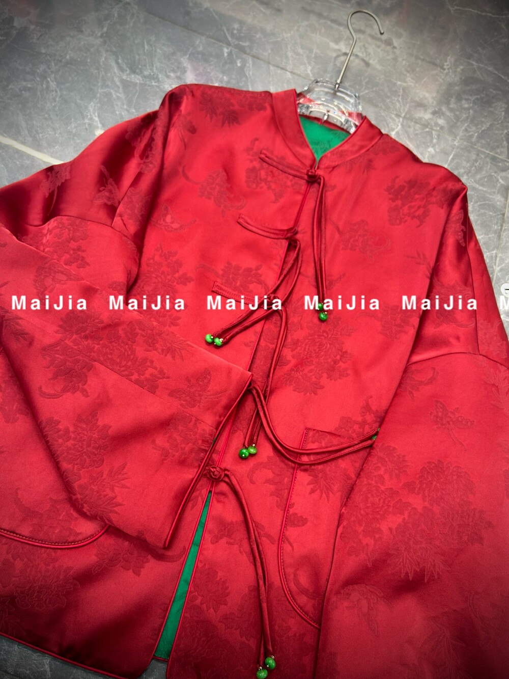 ASAYA5763 – Crimson Jade Silk Jacket ❤️💚