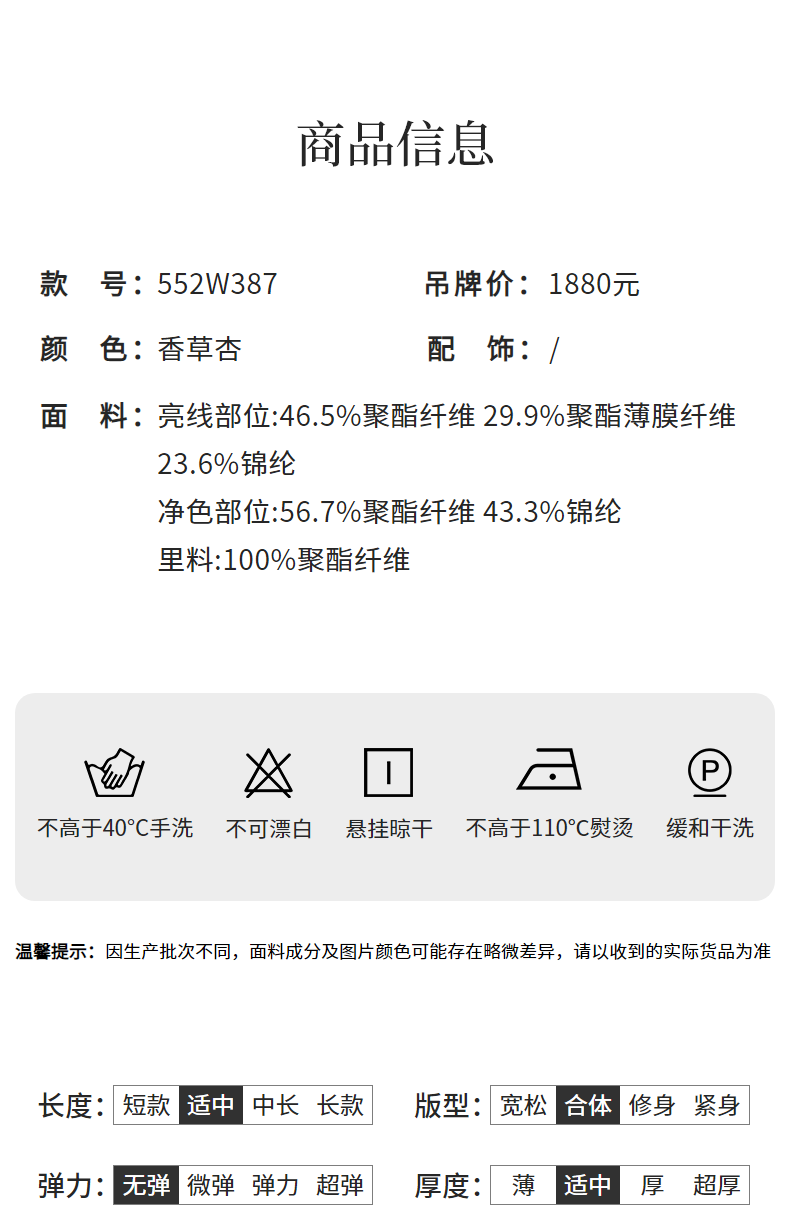 | Material composition | Polyester fiber 56.7%, polyamide fiber (nylon) 43.3% |