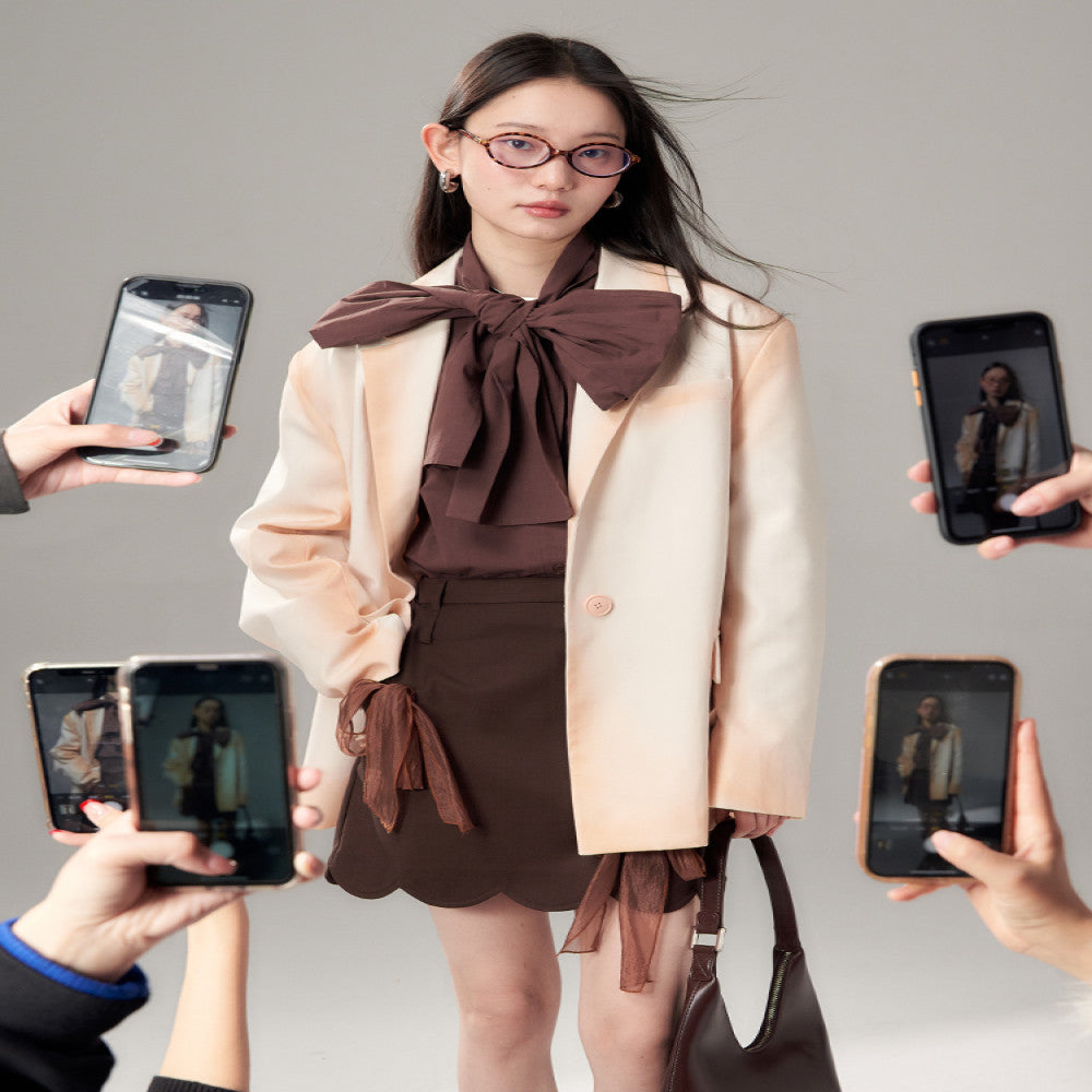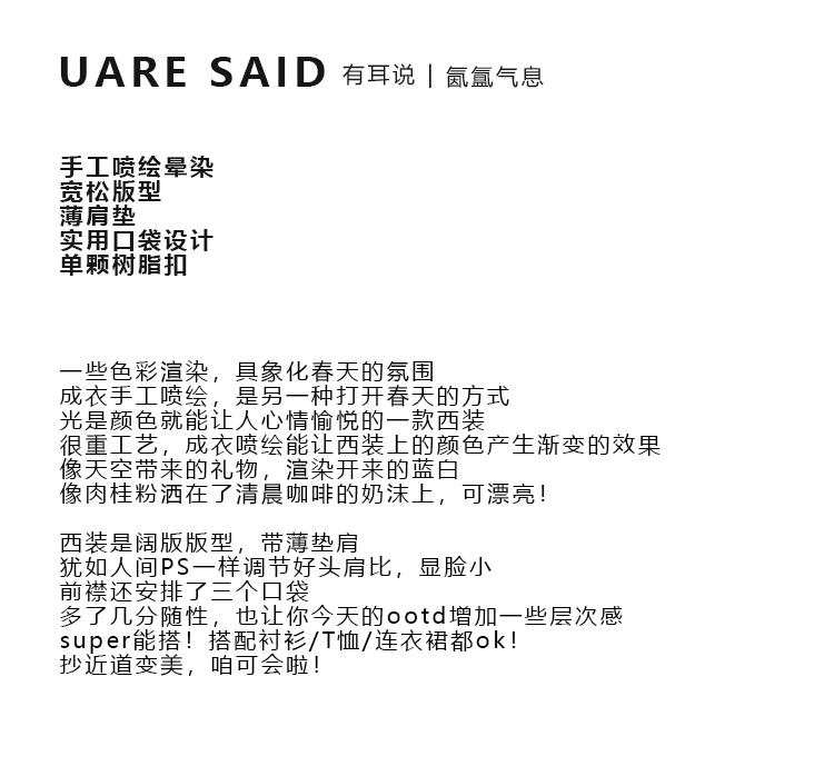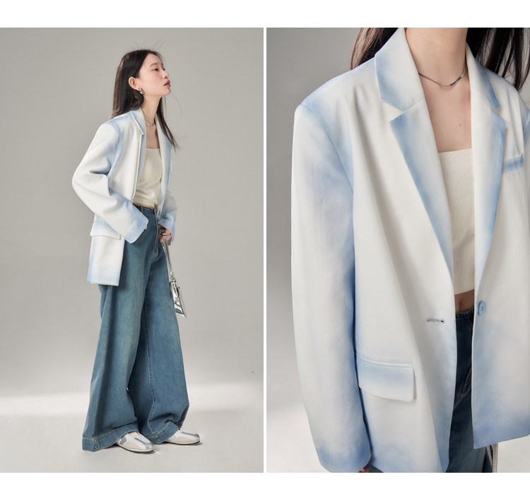 ASAYA3055 Hand-made gradient spray-painted and smudge-dyed loose silhouette blazer