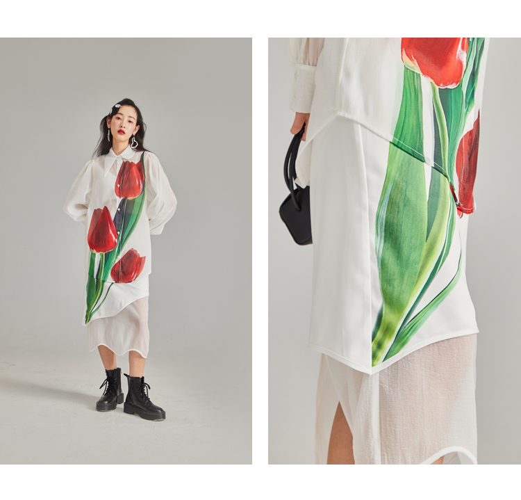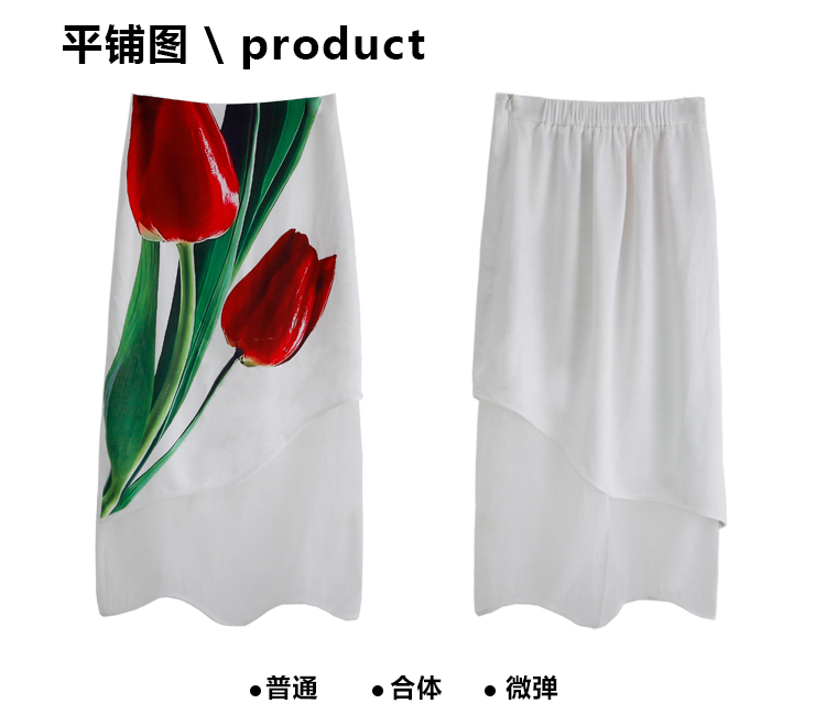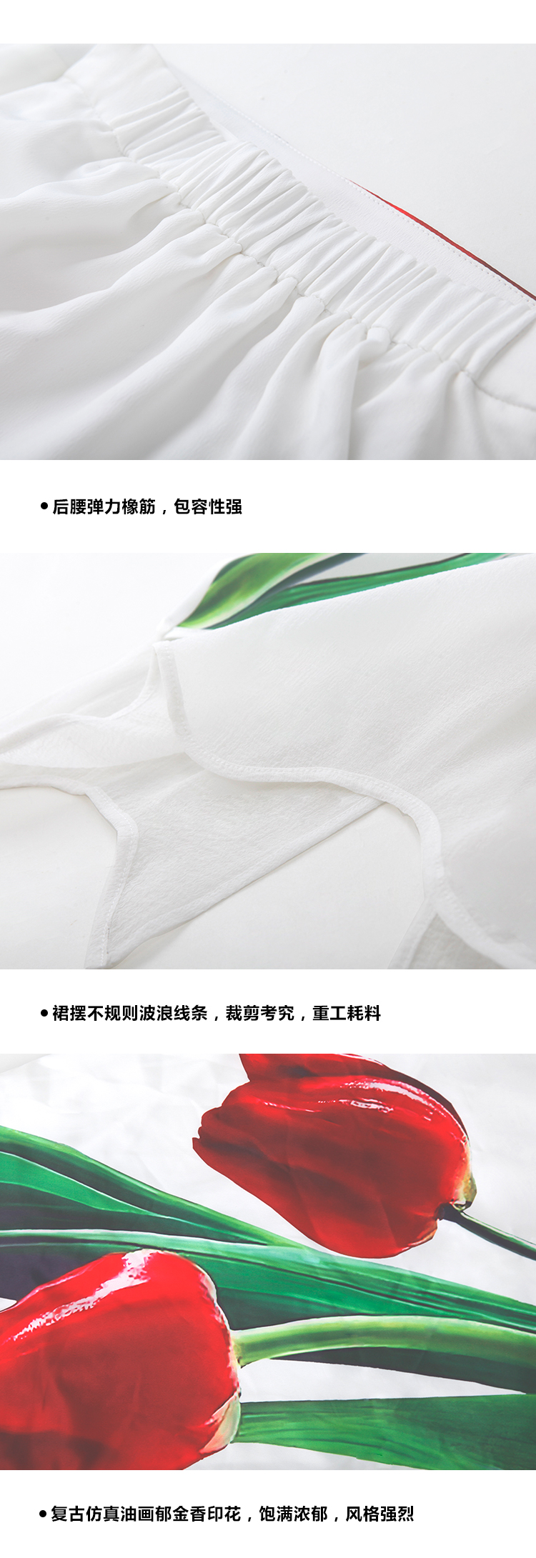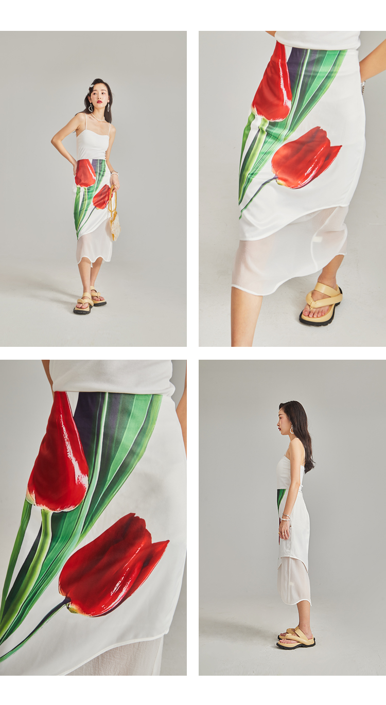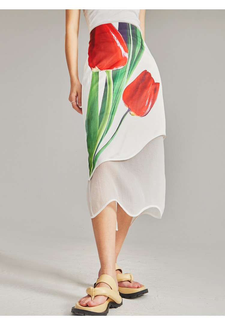 ASAYA2653 Original design artistic simulation oil painting tulip satin early autumn organza irregular skirt