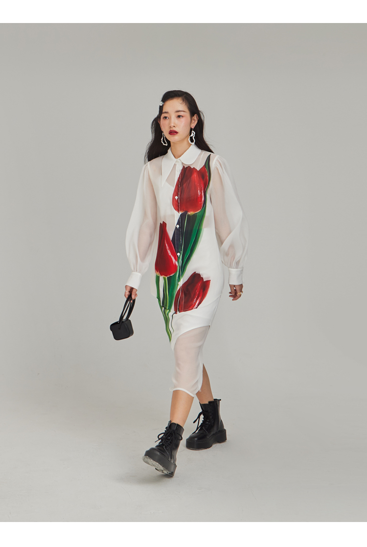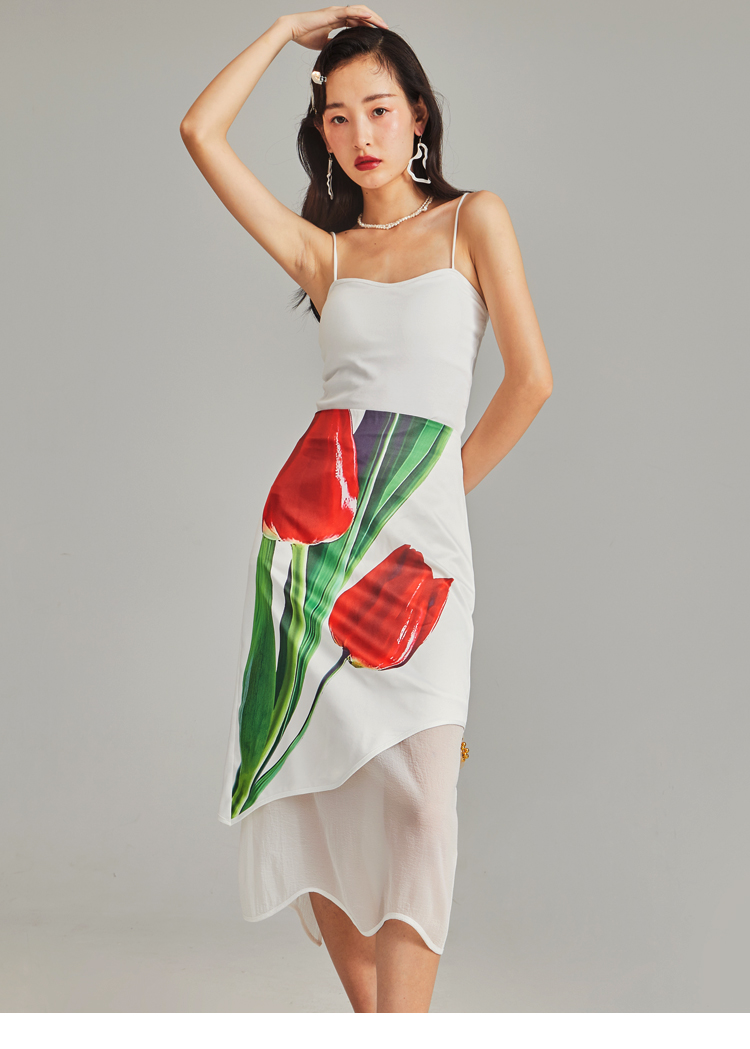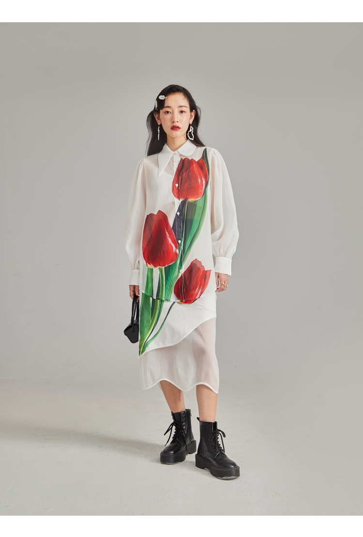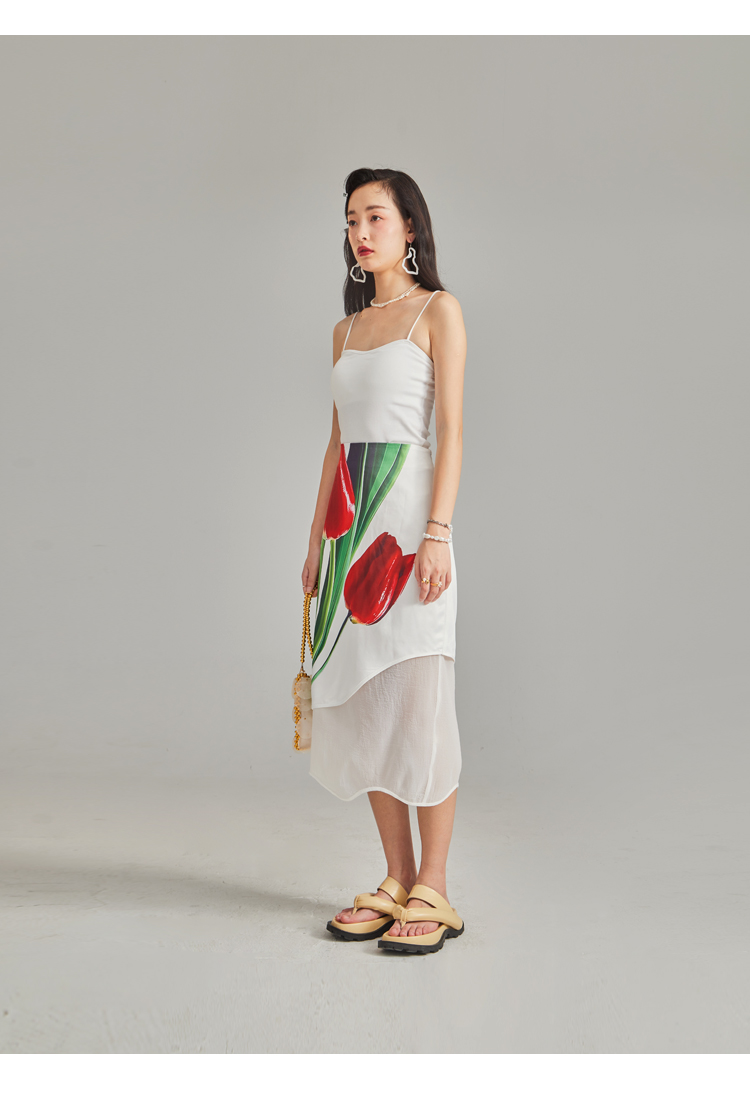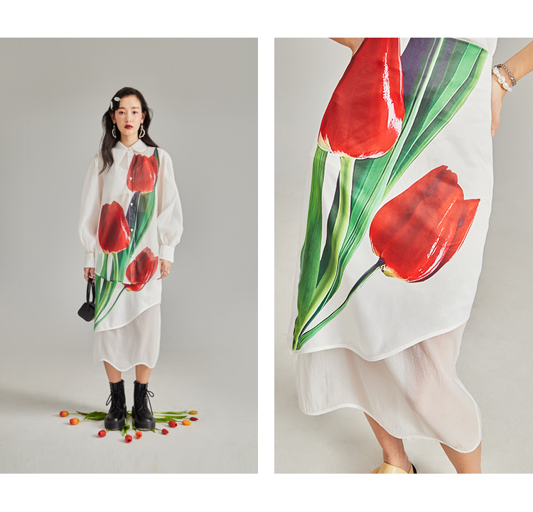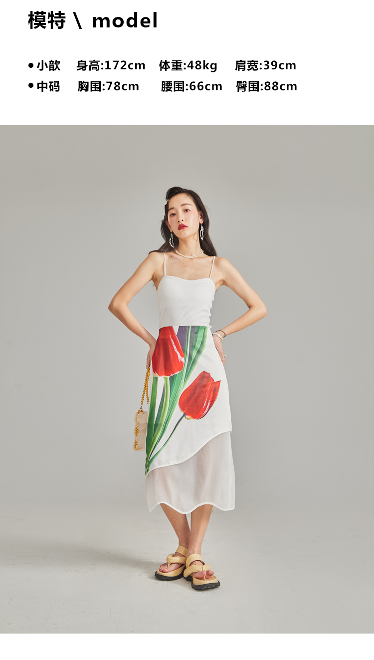ASAYA2653 Original design artistic simulation oil painting tulip satin early autumn organza irregular skirt