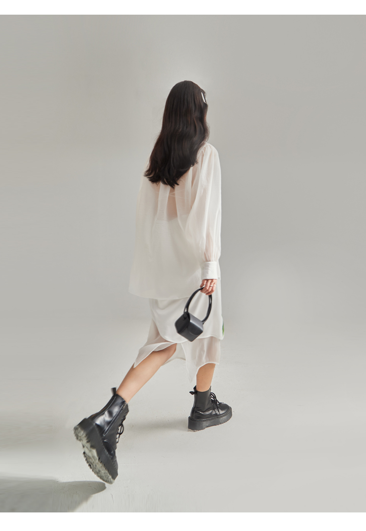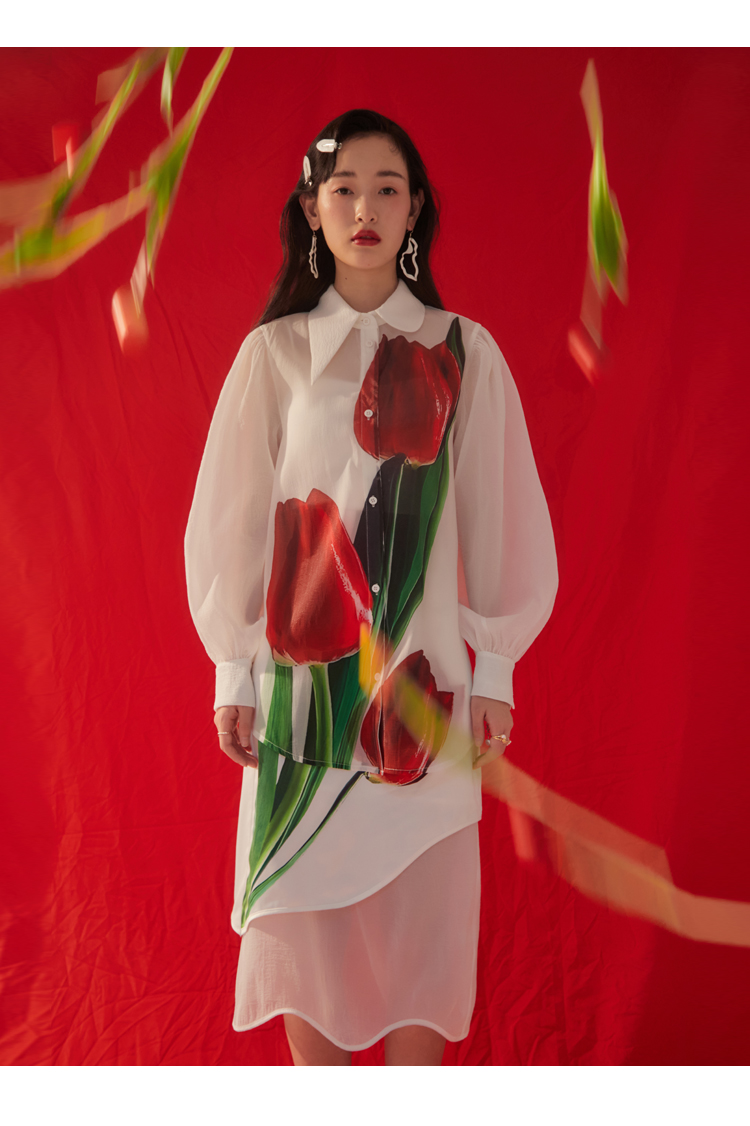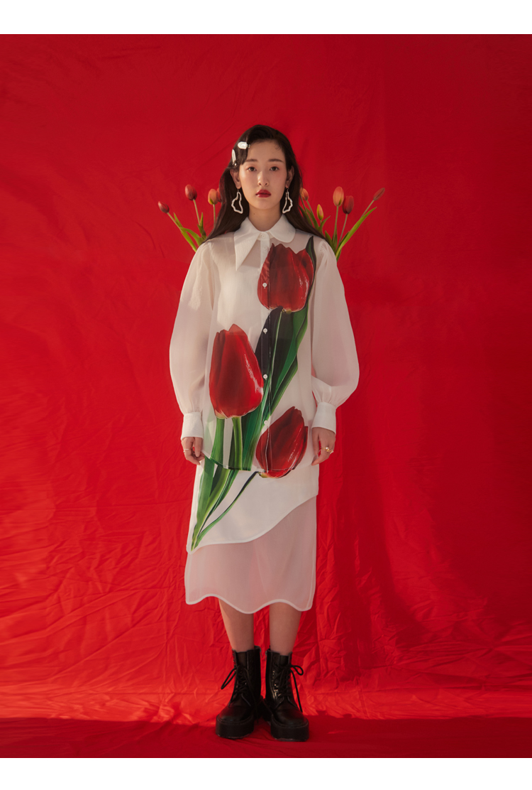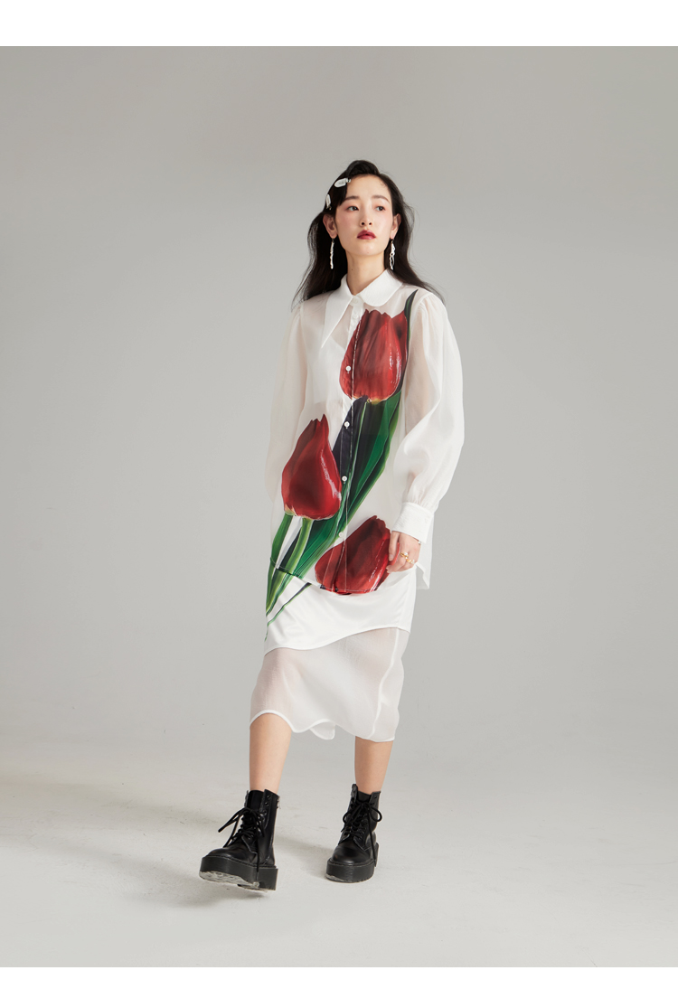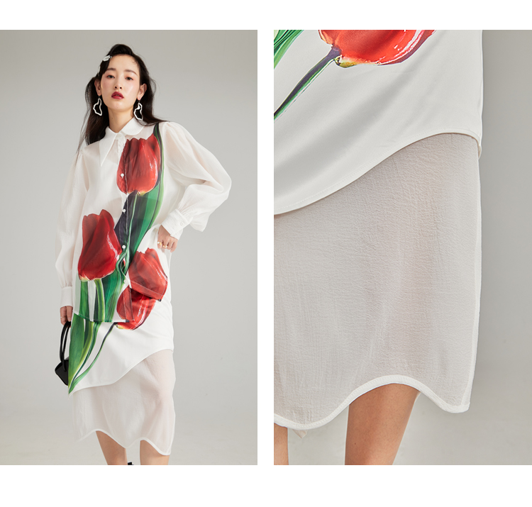 ASAYA2653 Original design artistic simulation oil painting tulip satin early autumn organza irregular skirt