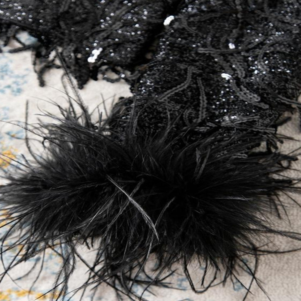 ASAYA3942 Dazzle in Elegance: Sequined Ostrich Feather Jacket 🖤