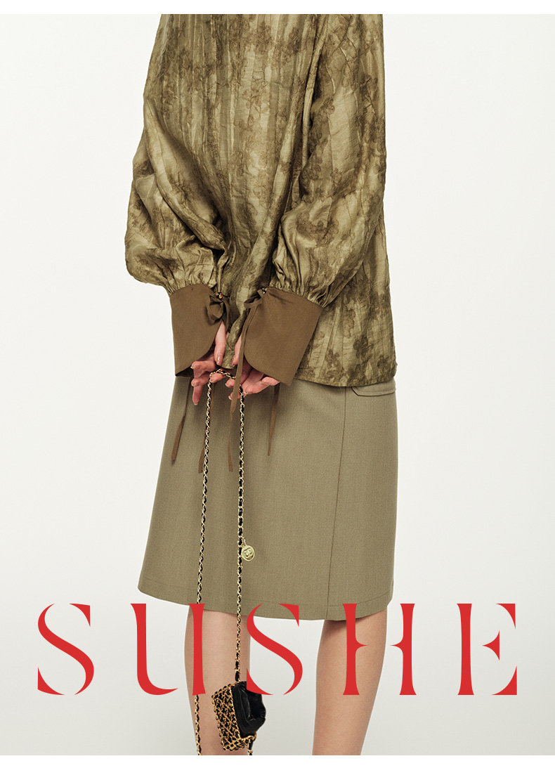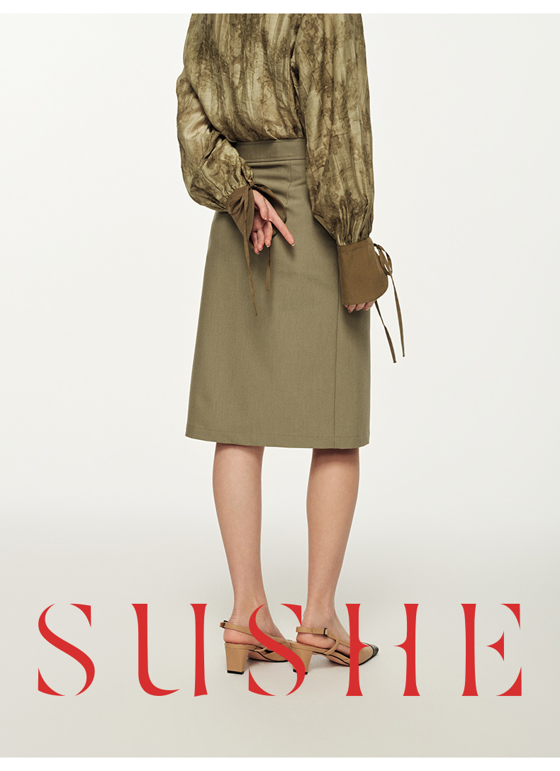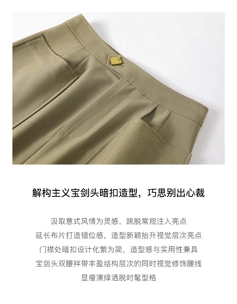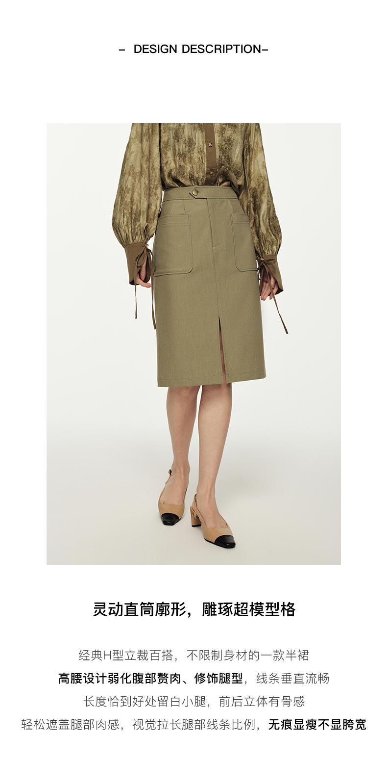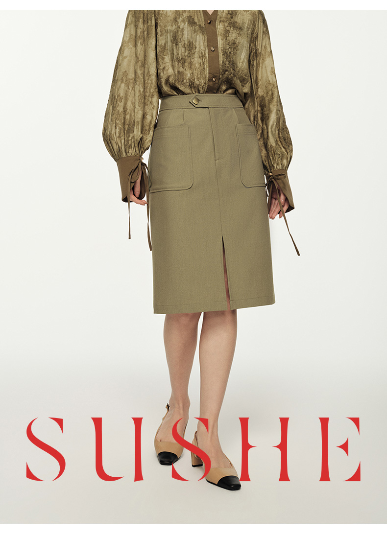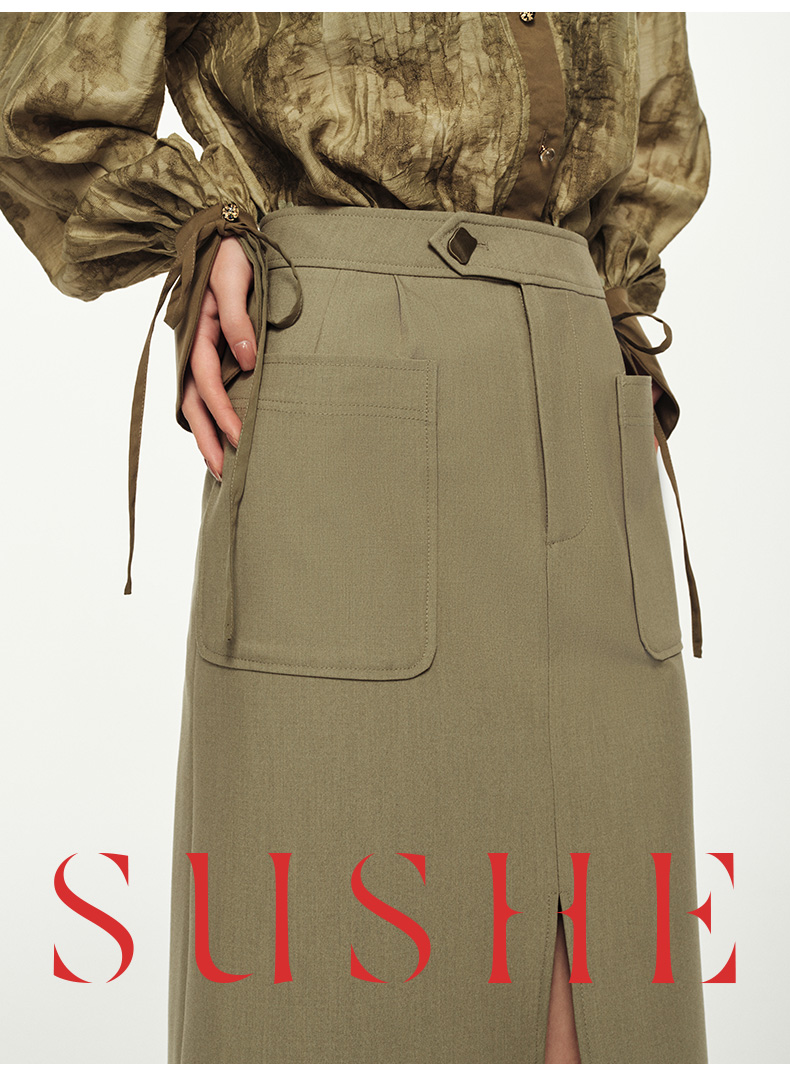 ASAYA2999 New Chinese style vertical cut double pleated patch pocket slit high waist skirt