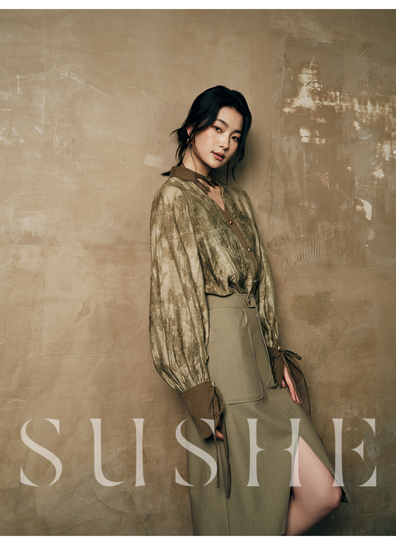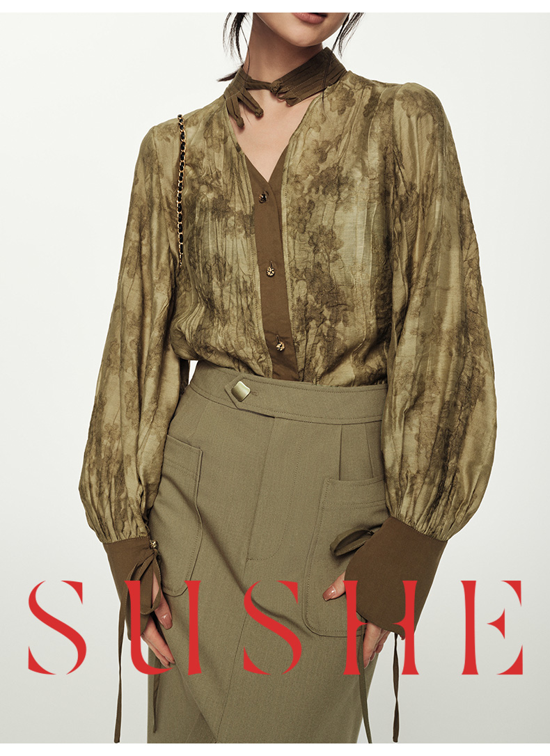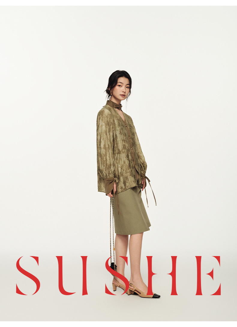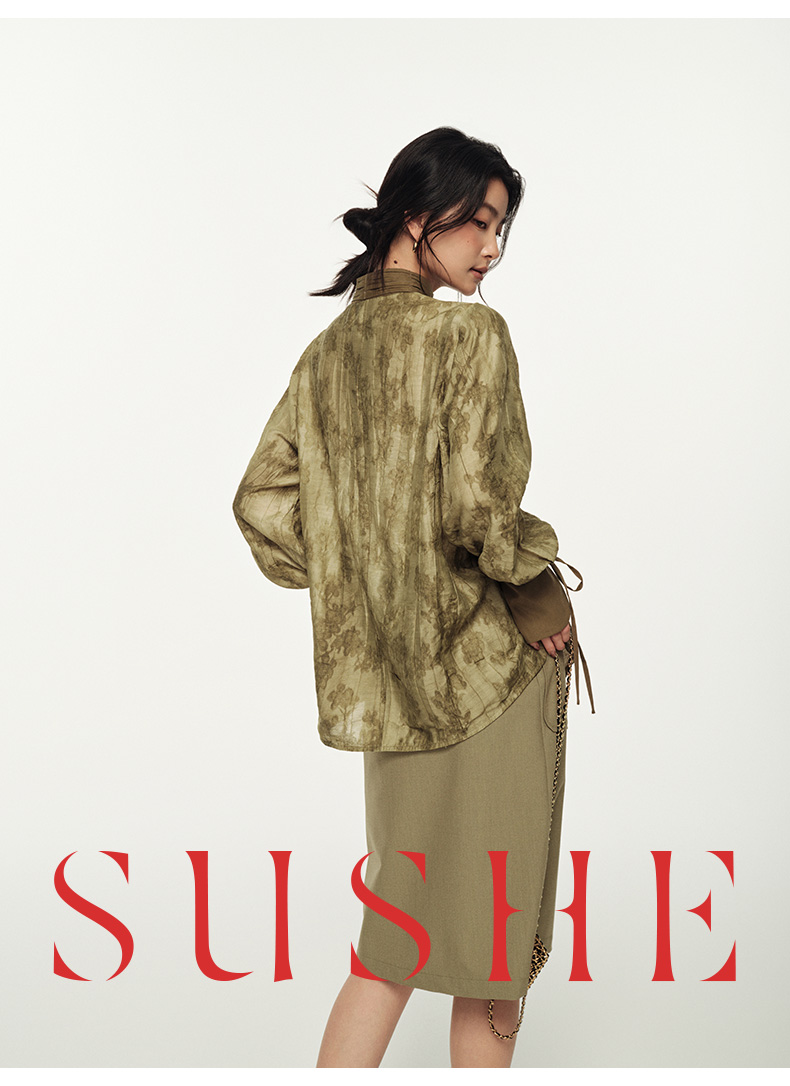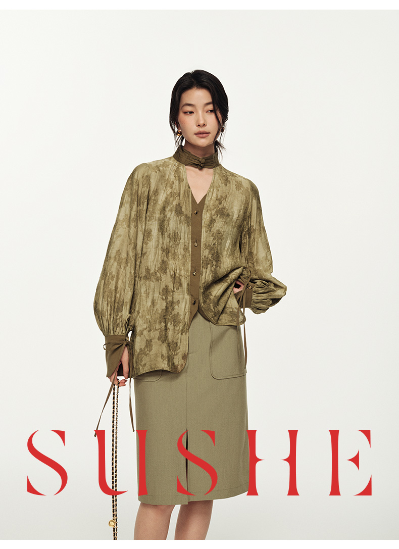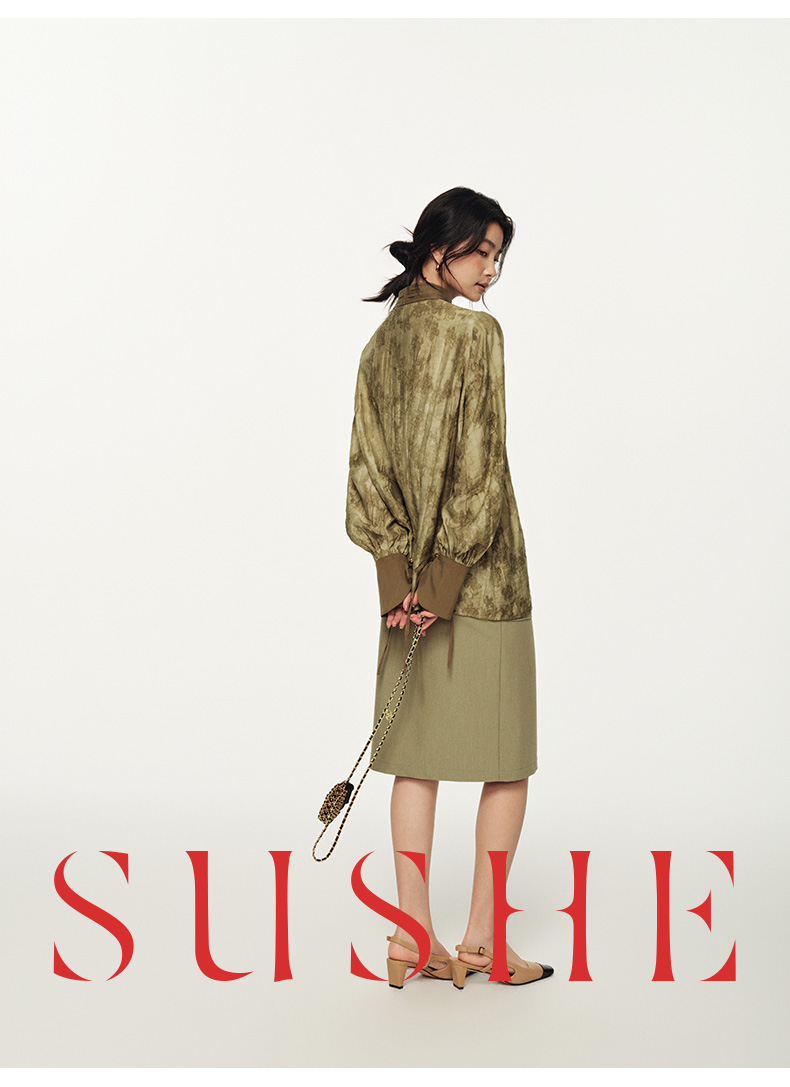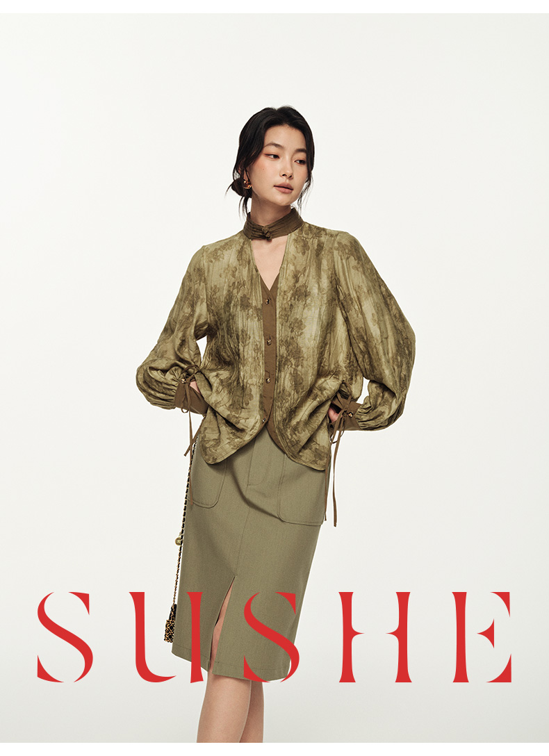 ASAYA2999 New Chinese style vertical cut double pleated patch pocket slit high waist skirt