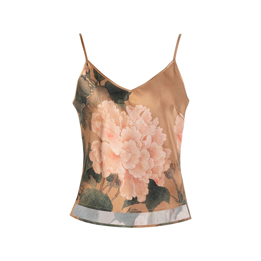 | Color classification | Yellow brown peony print suspender top, yellow brown peony print half skirt |