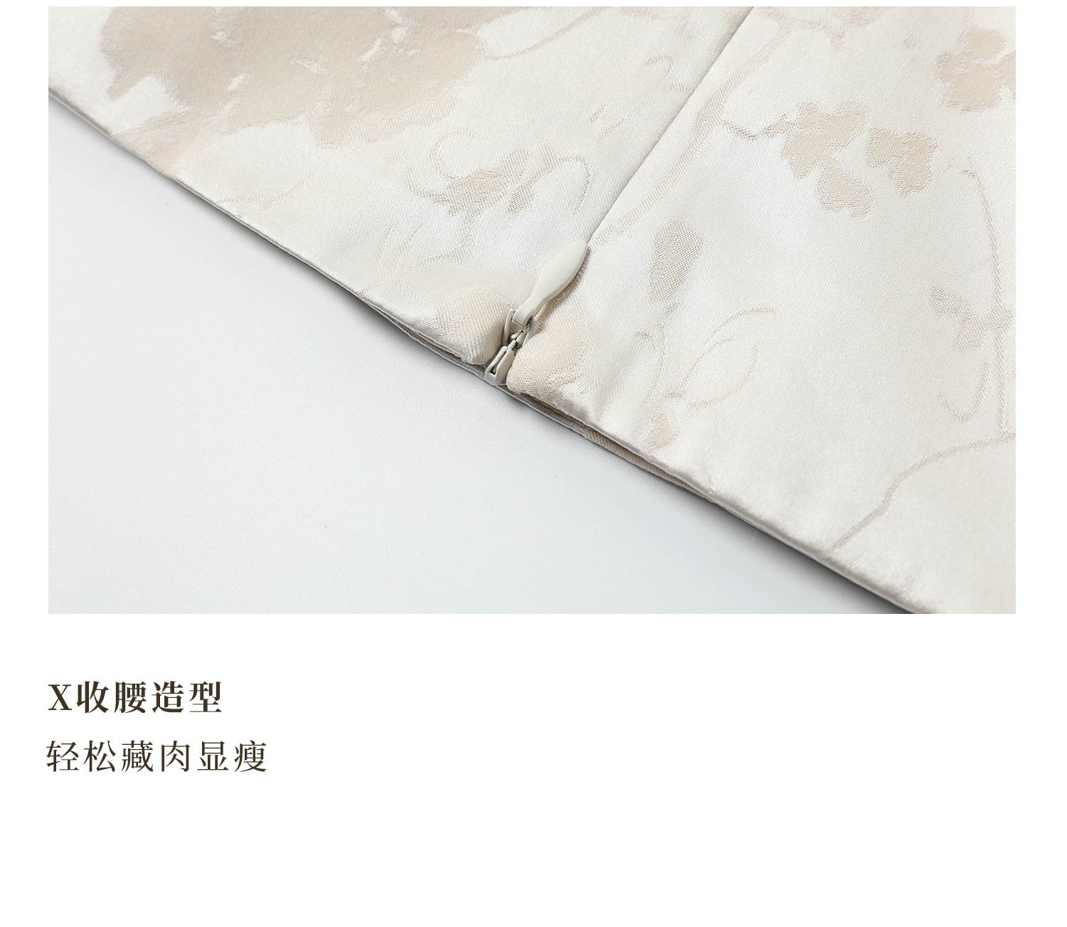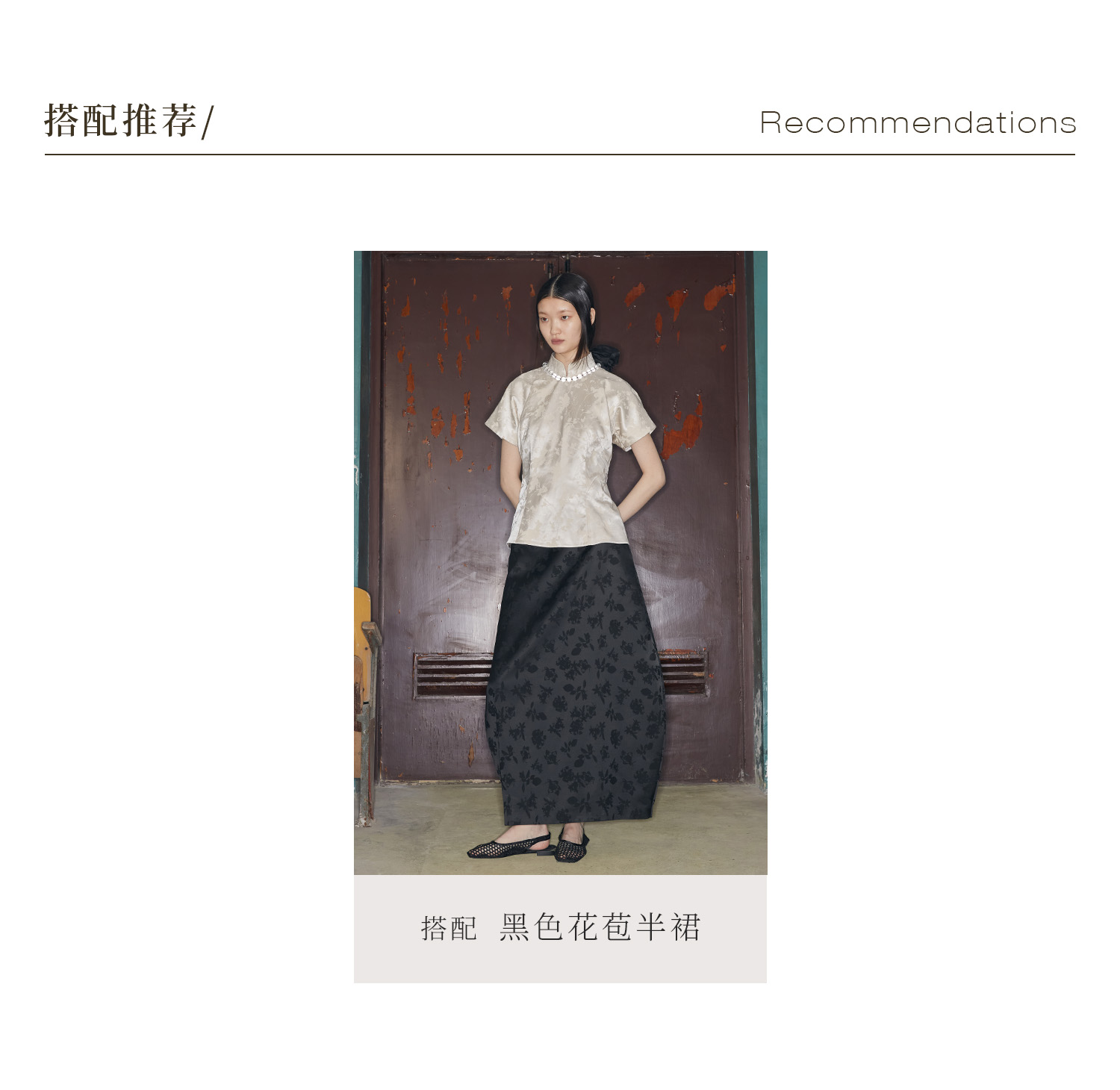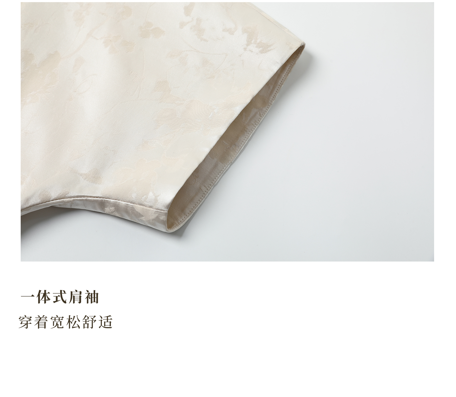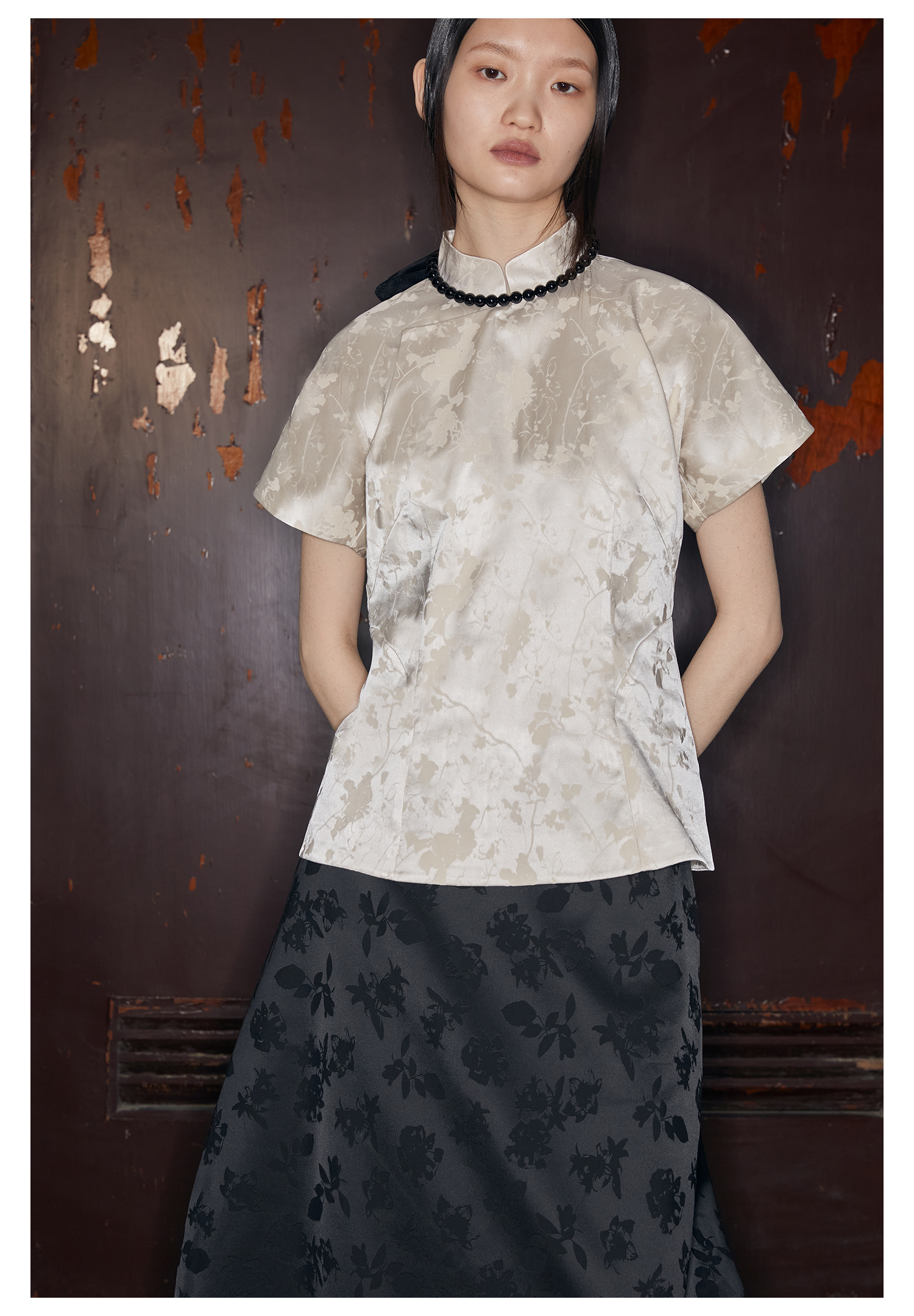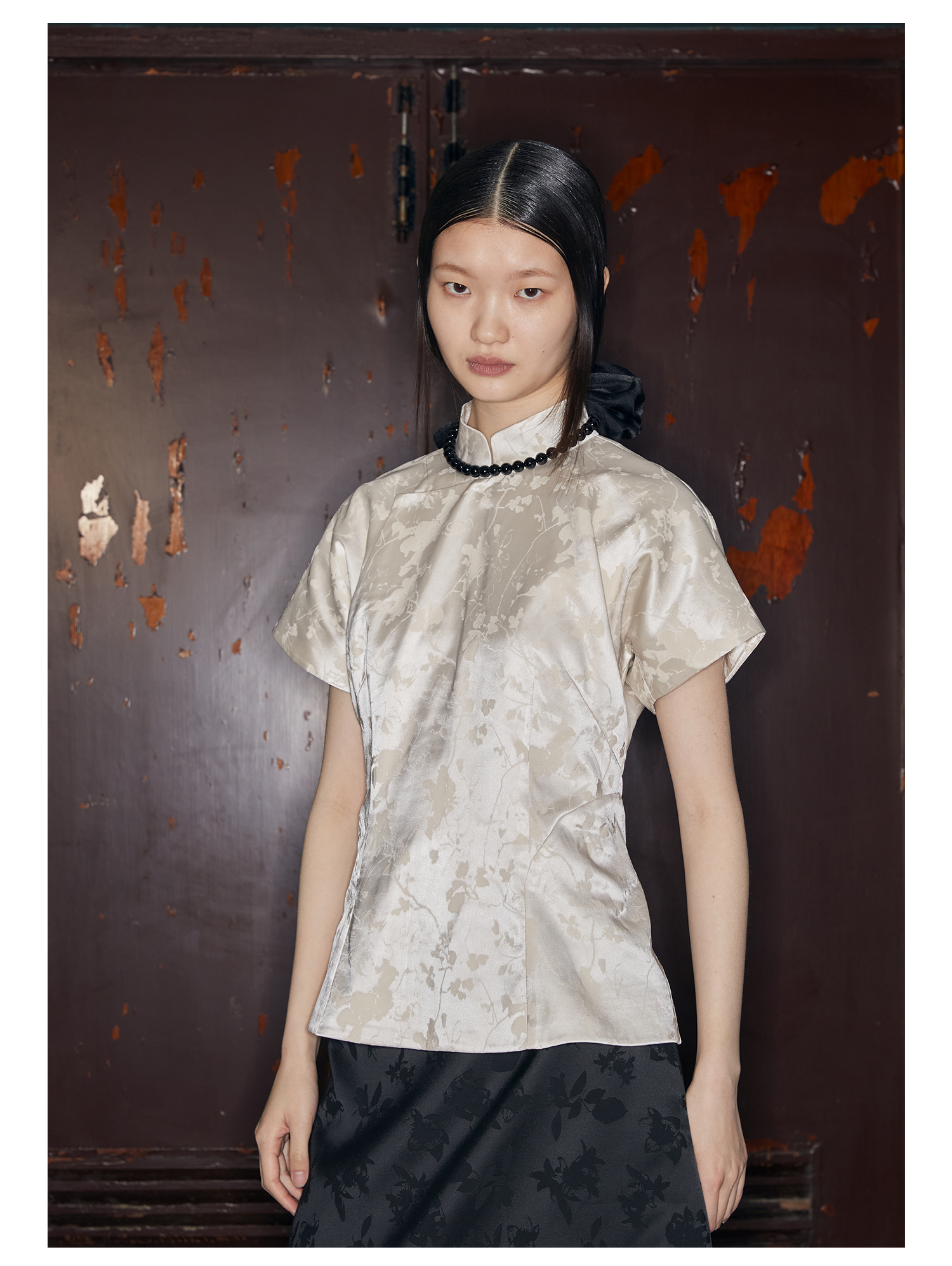 ASAYA3373 Chinese Style Beige Satin Jacquard Three-dimensional Slanted Placket Retro Shirt