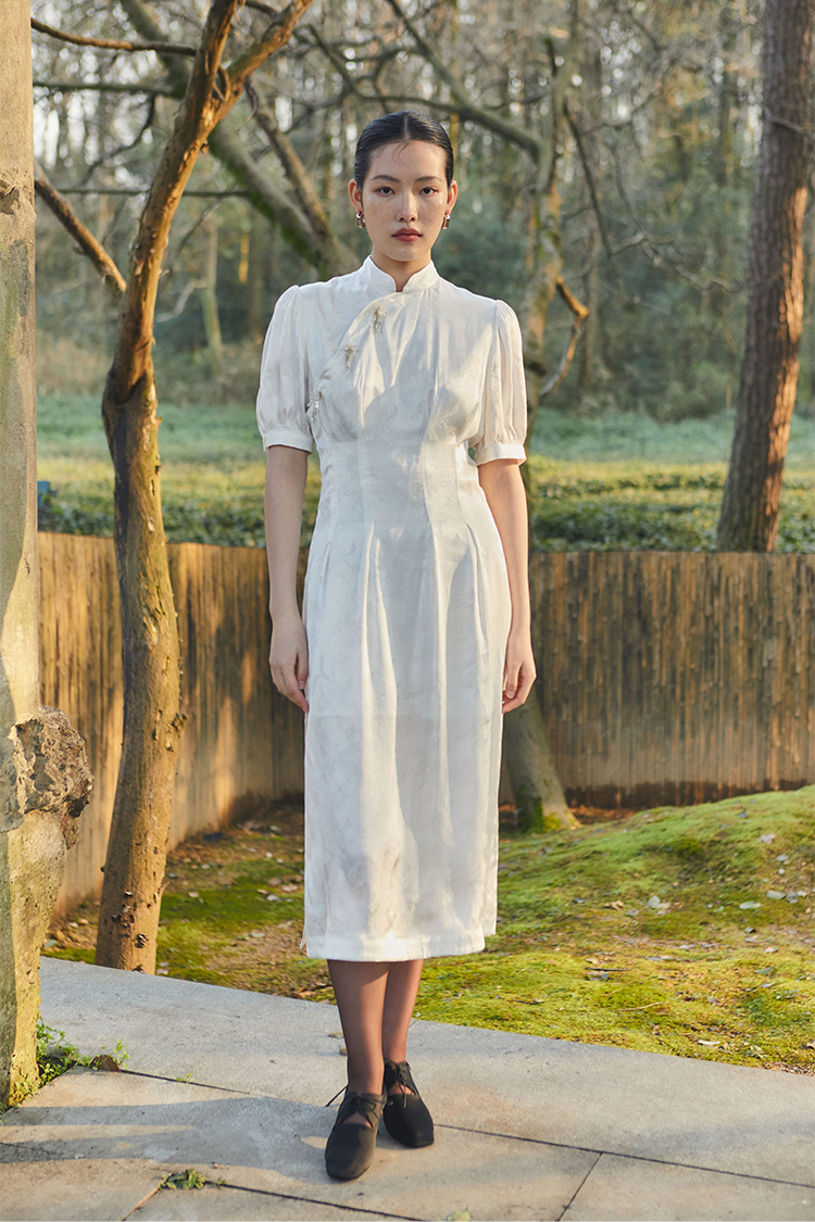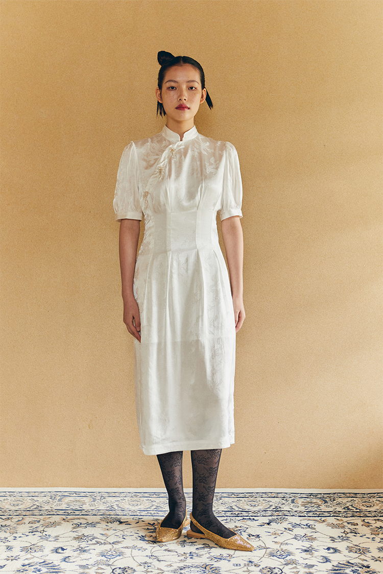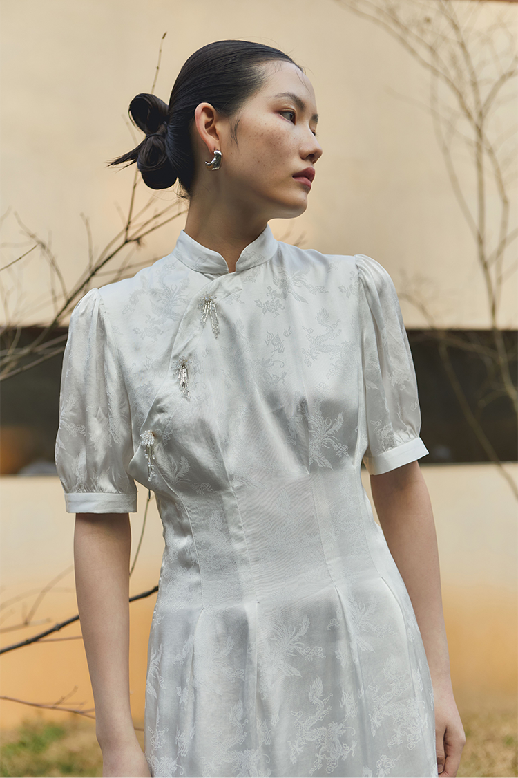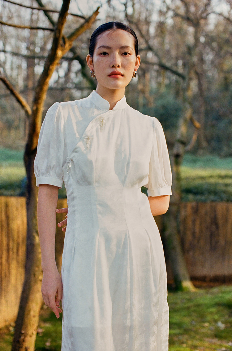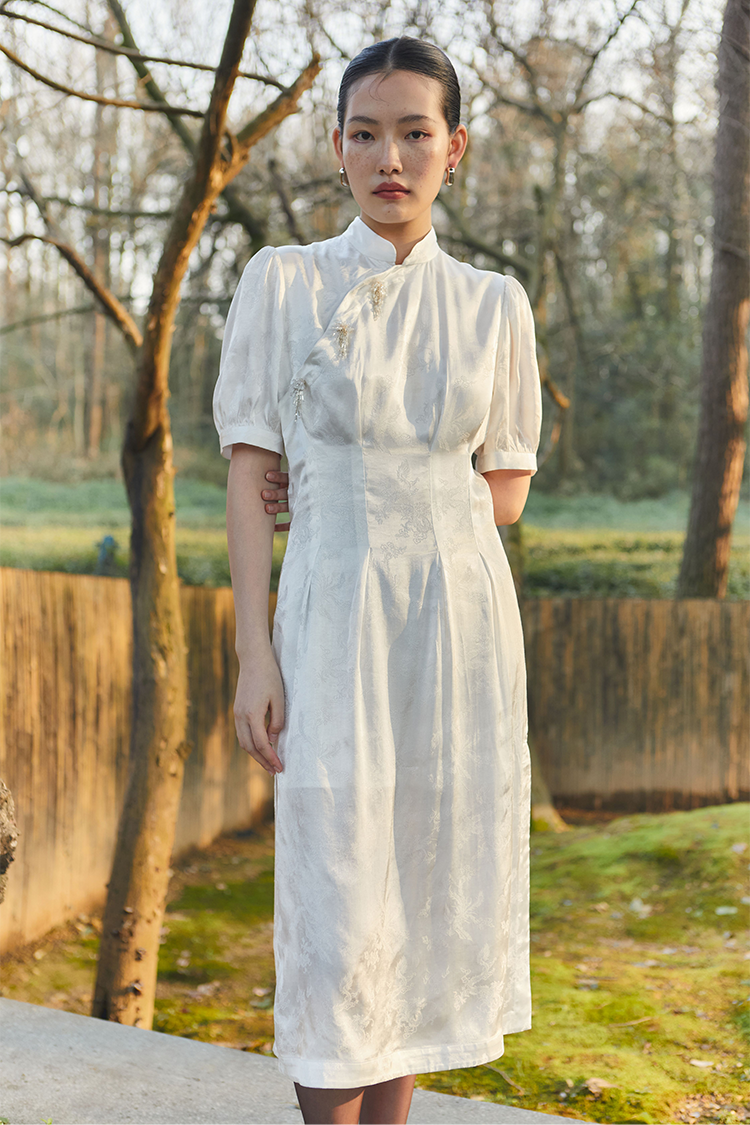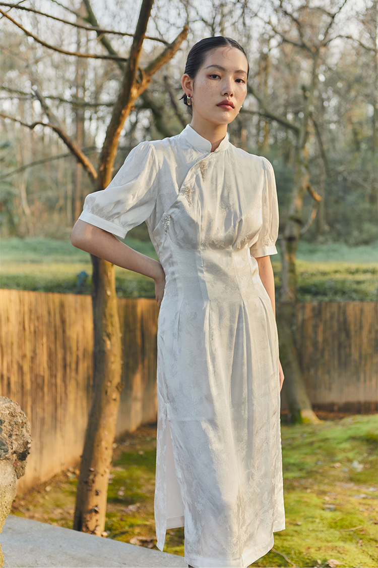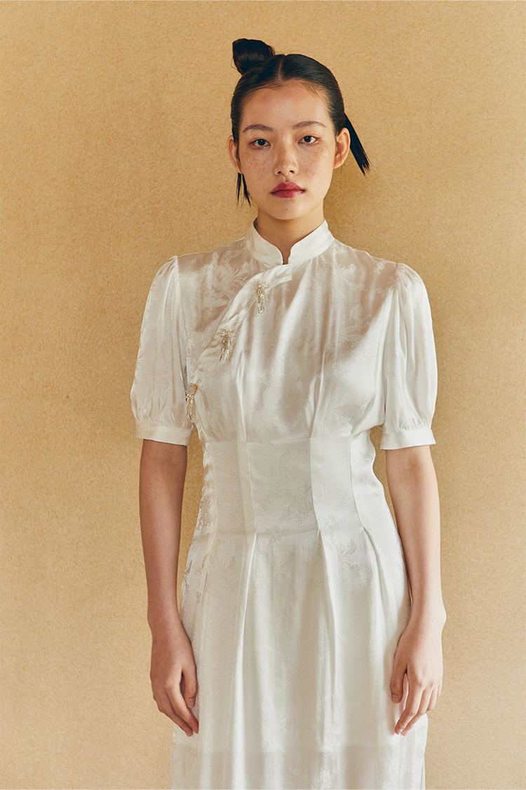 Asaya616 - PaleBlueDot original design new Chinese white jacquard modified cheongsam dress