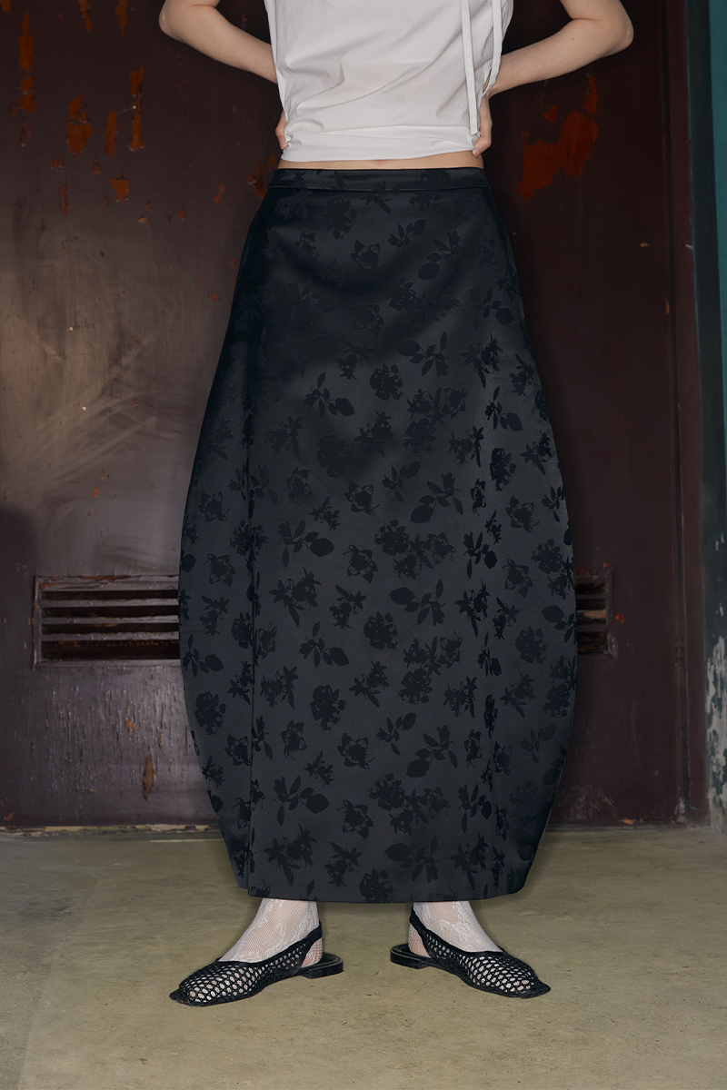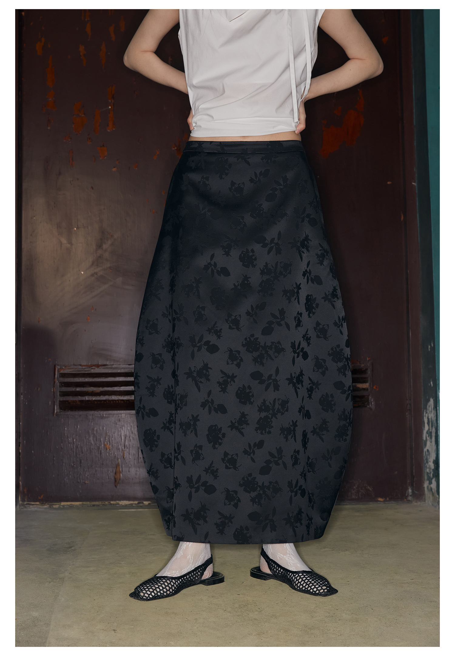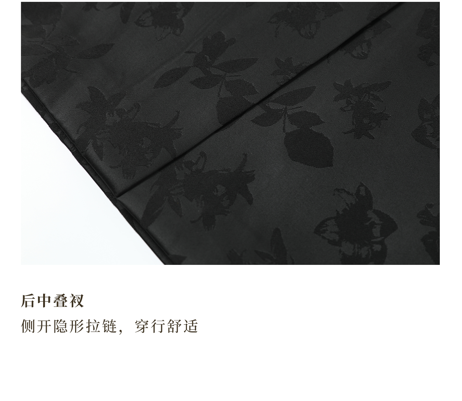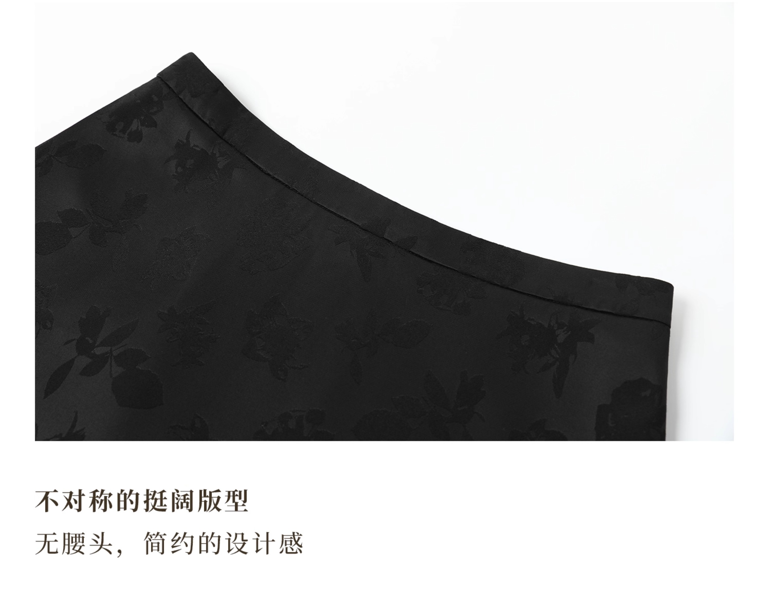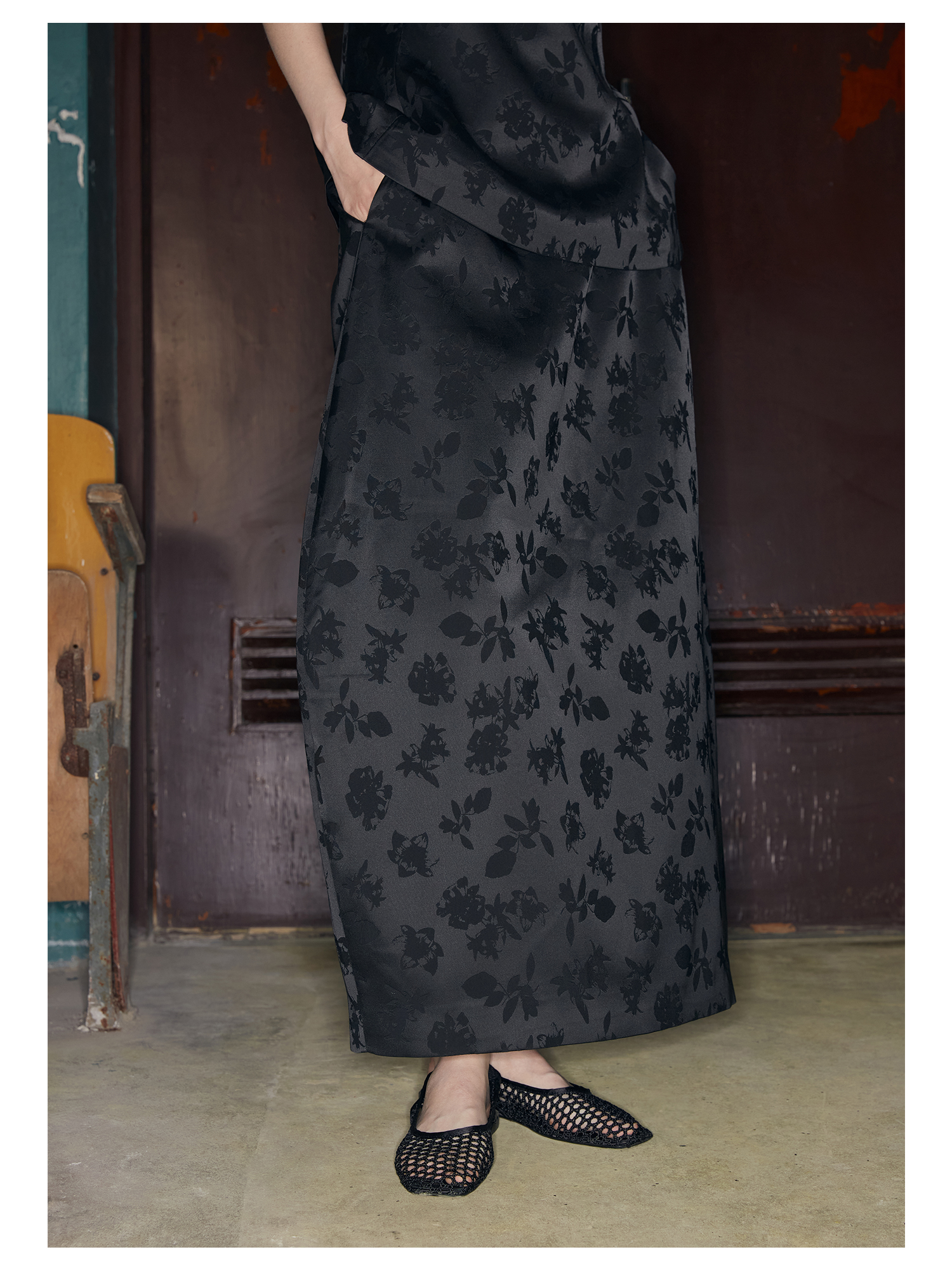 ASAYA3374 Chinese Black Satin Jacquard Design Flower Bud Skirt