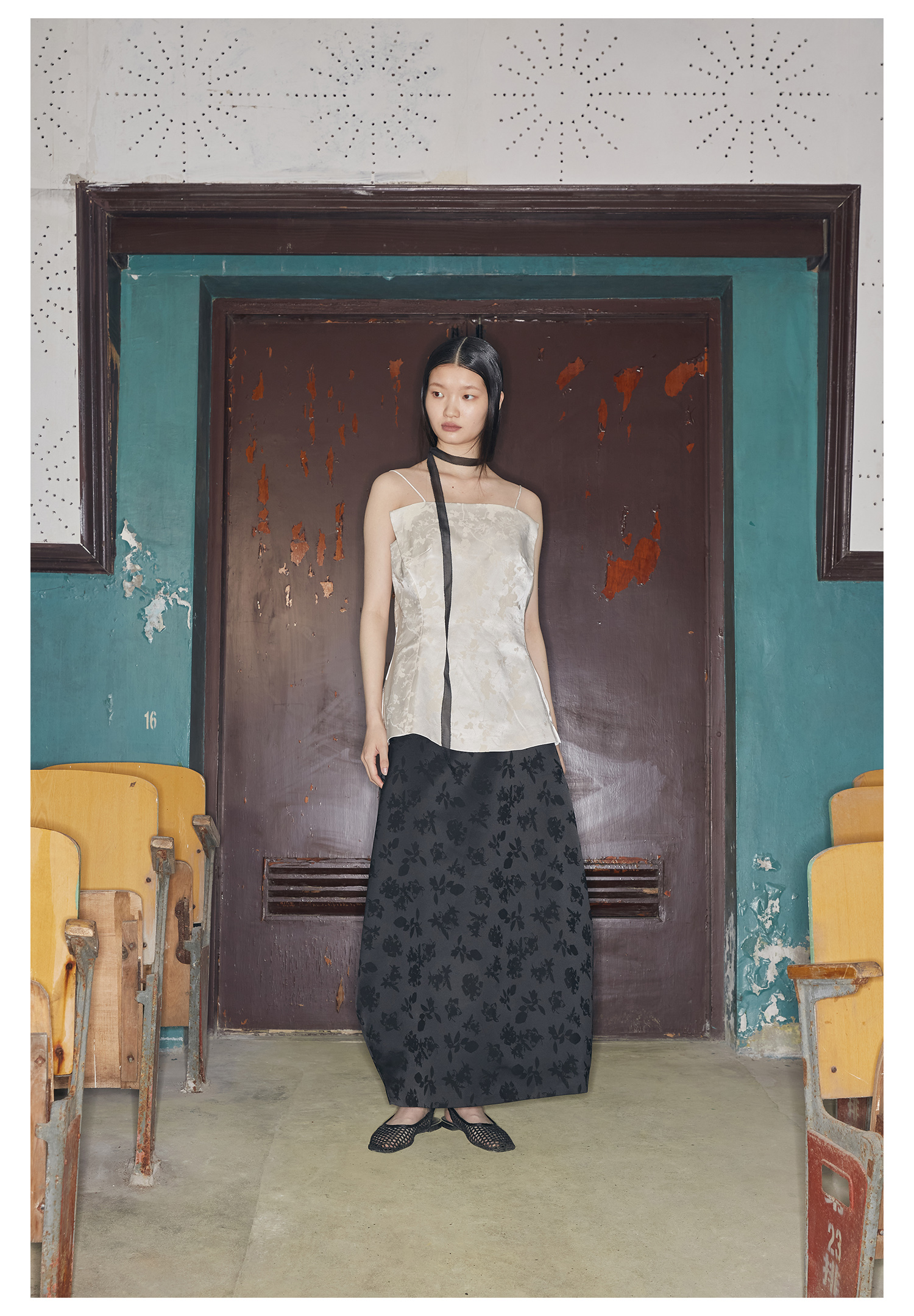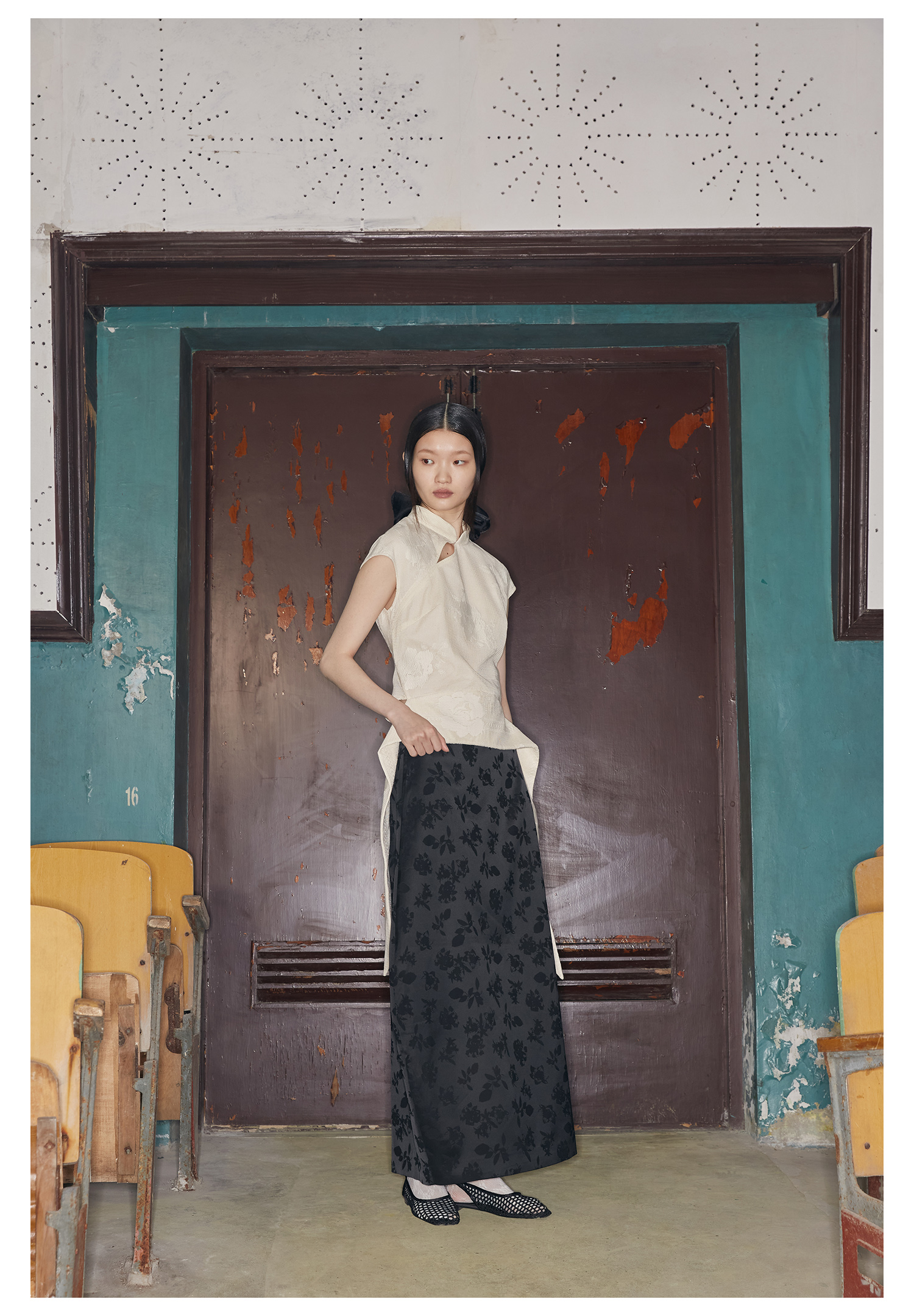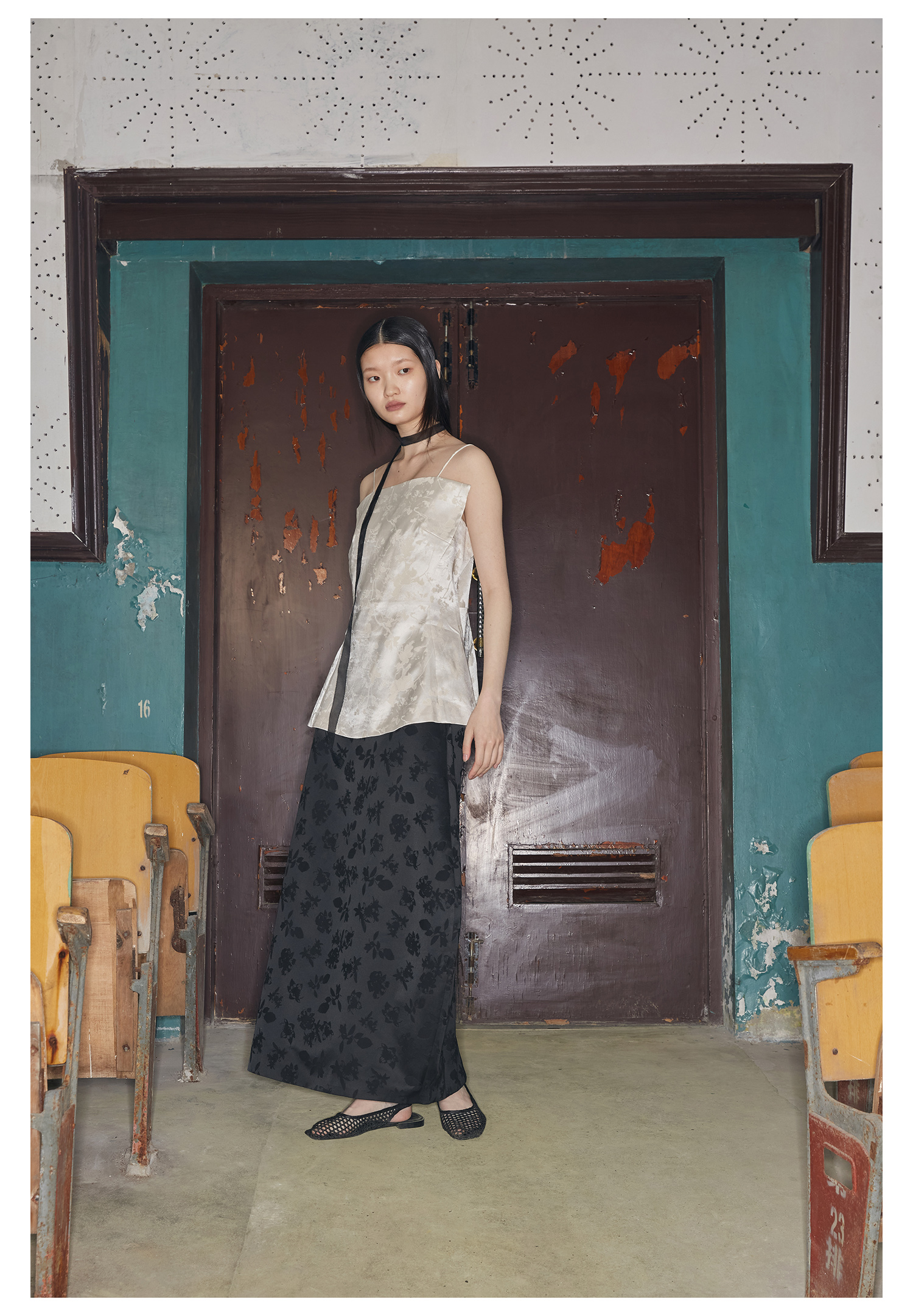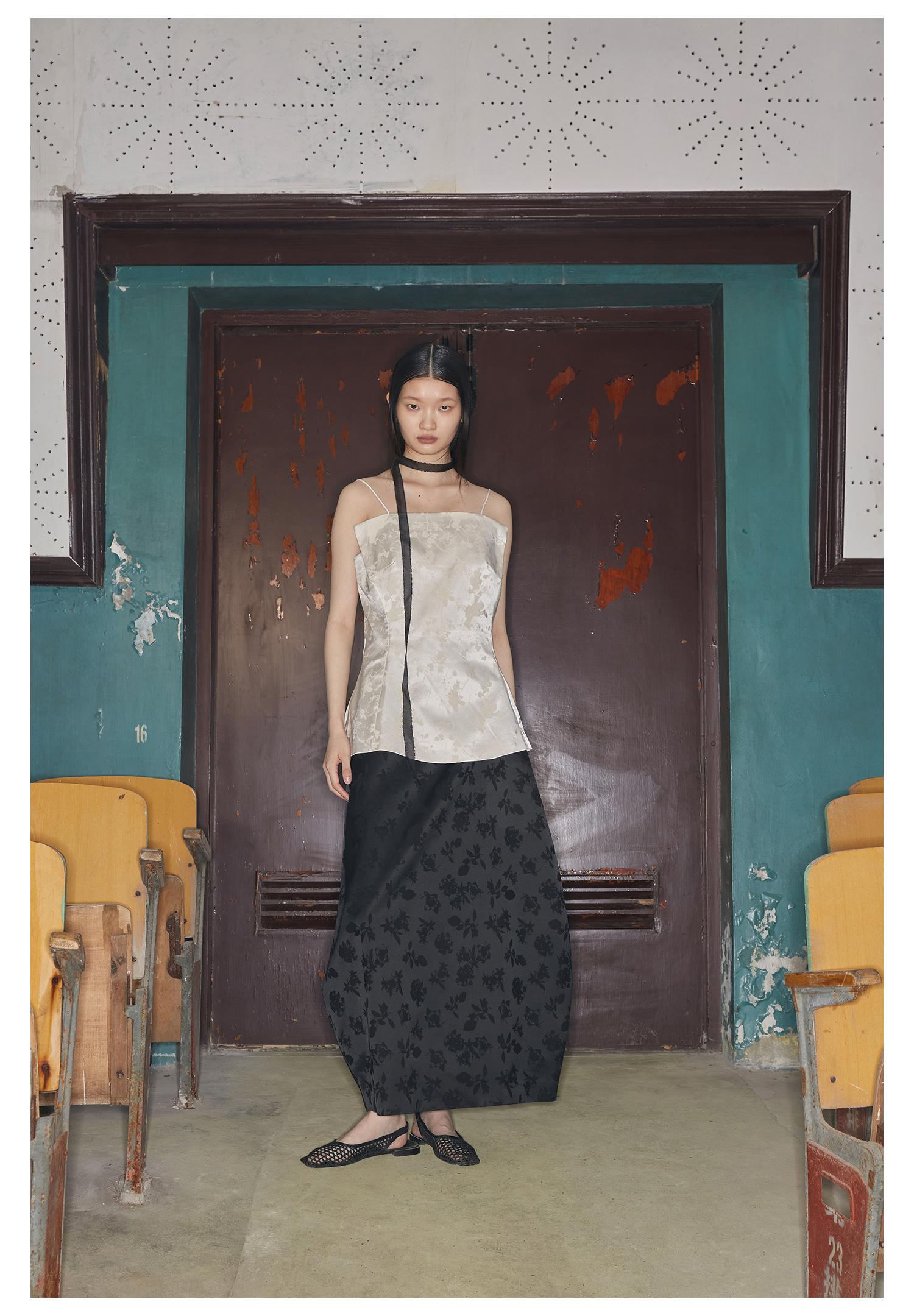 ASAYA3374 Chinese Black Satin Jacquard Design Flower Bud Skirt