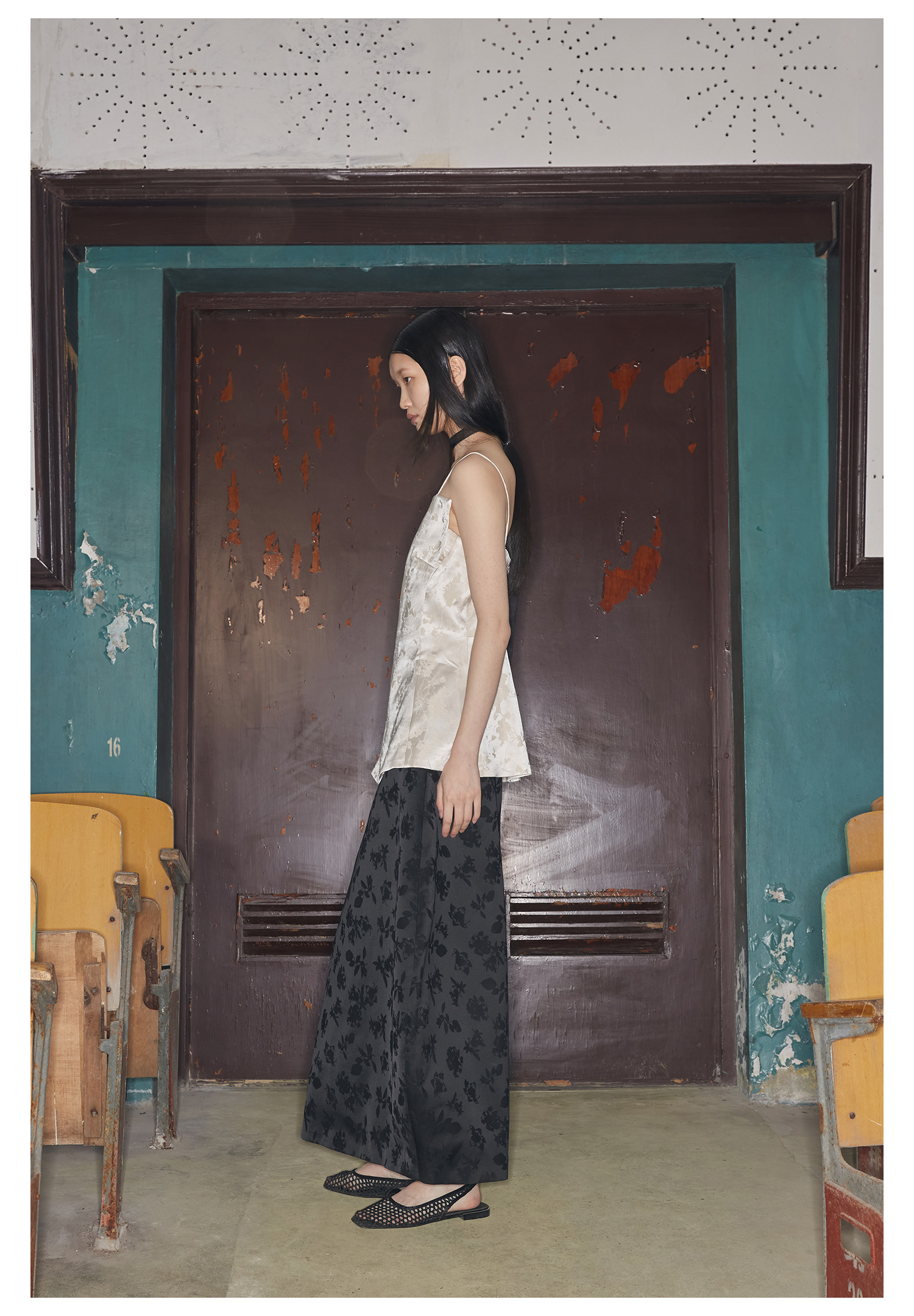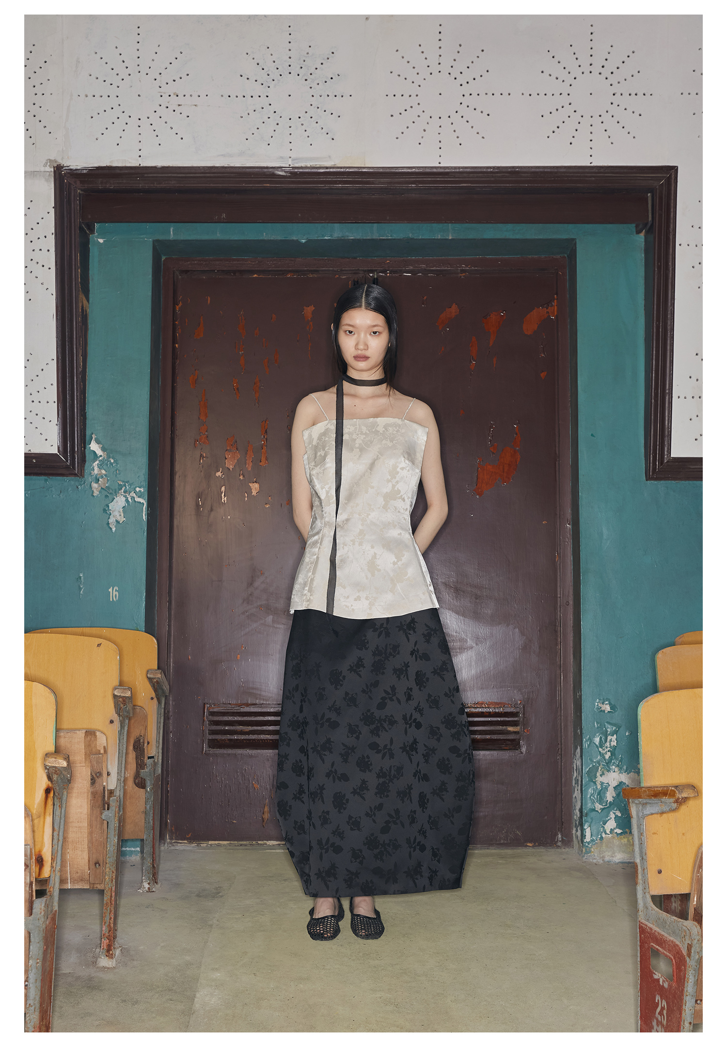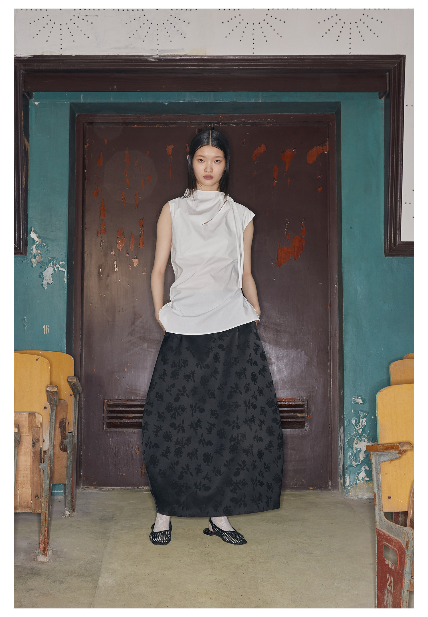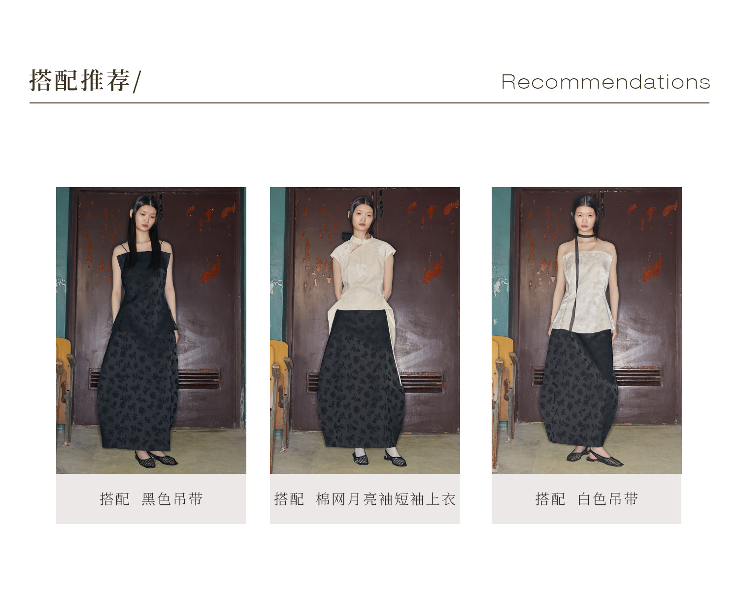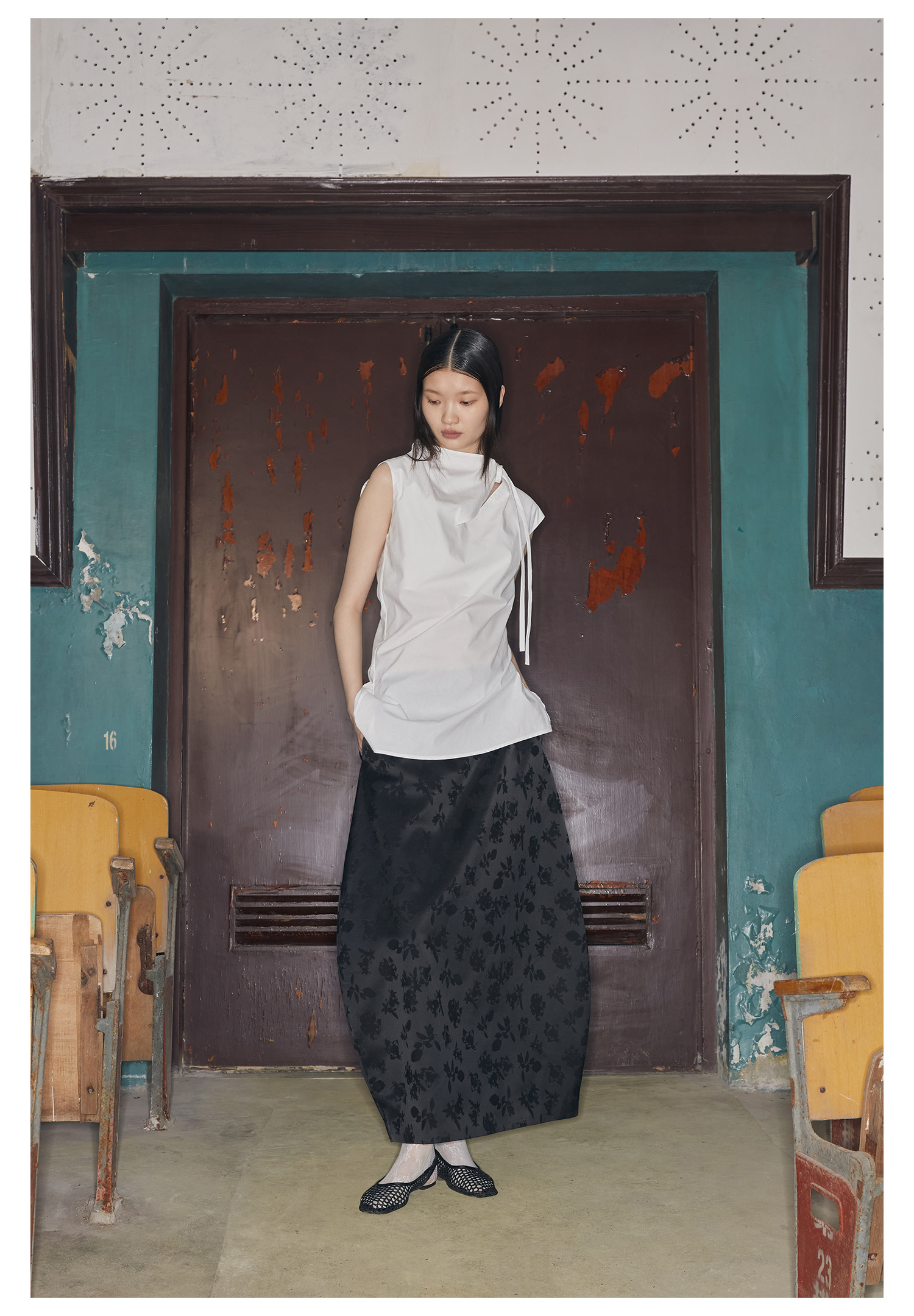 ASAYA3374 Chinese Black Satin Jacquard Design Flower Bud Skirt