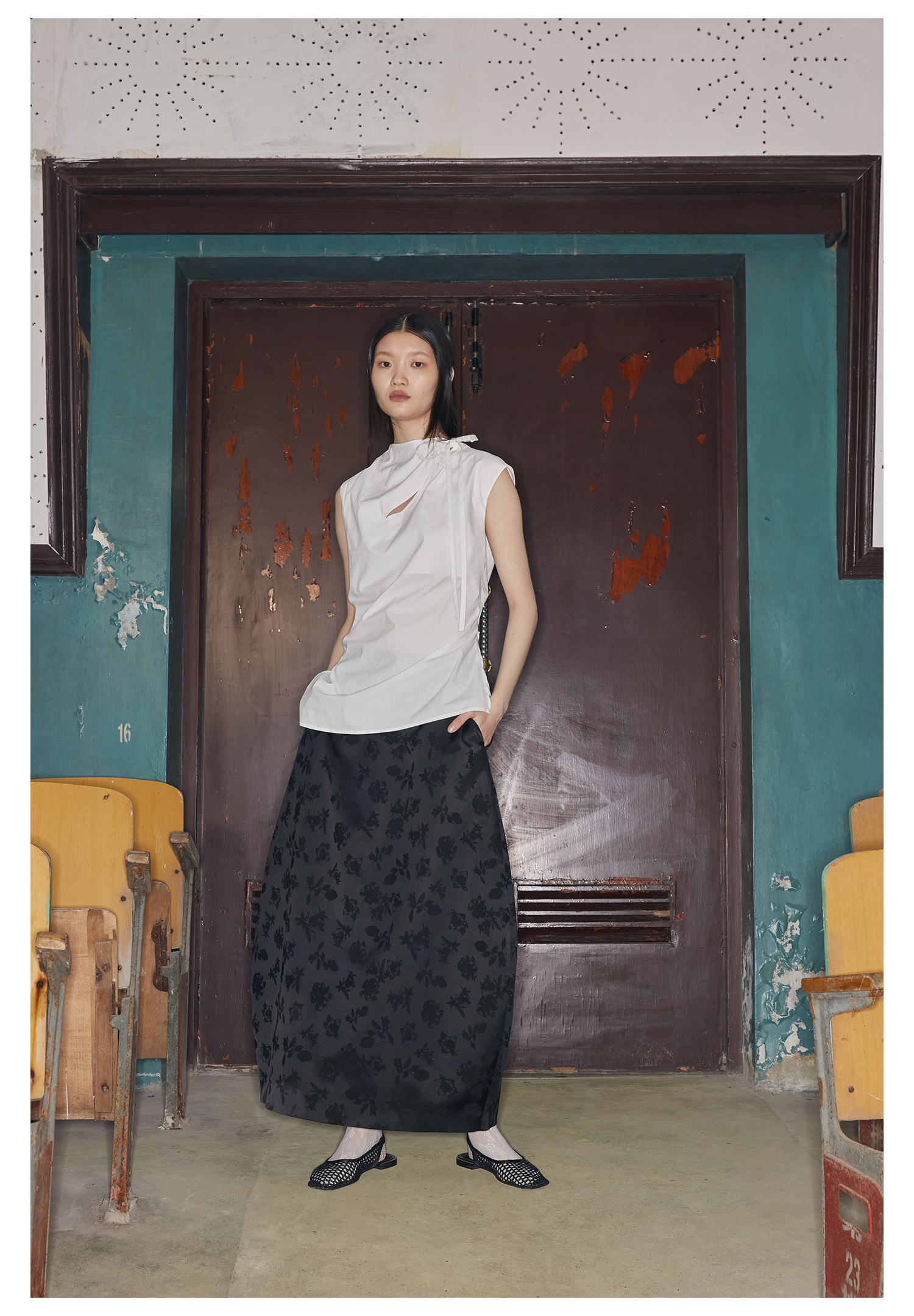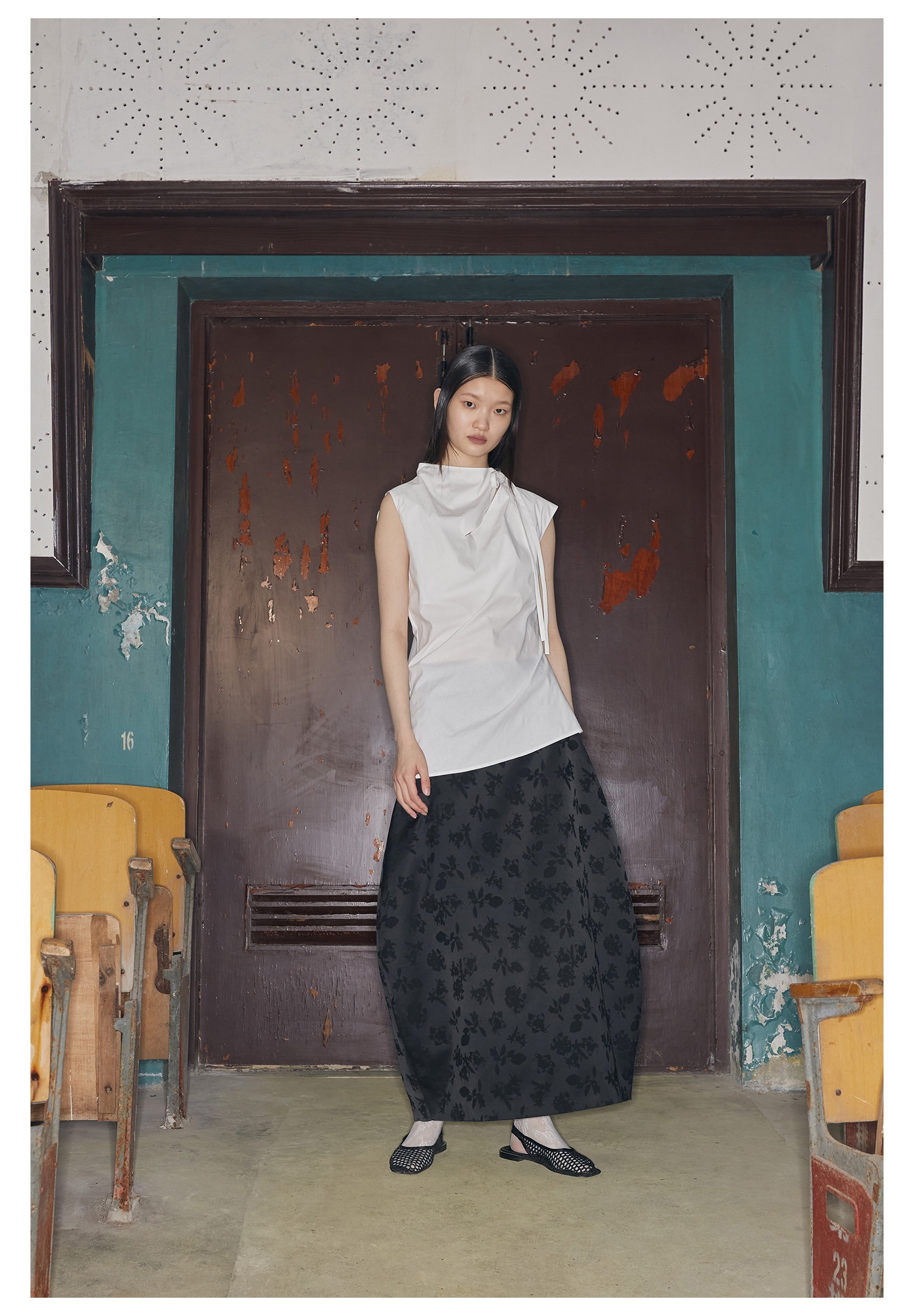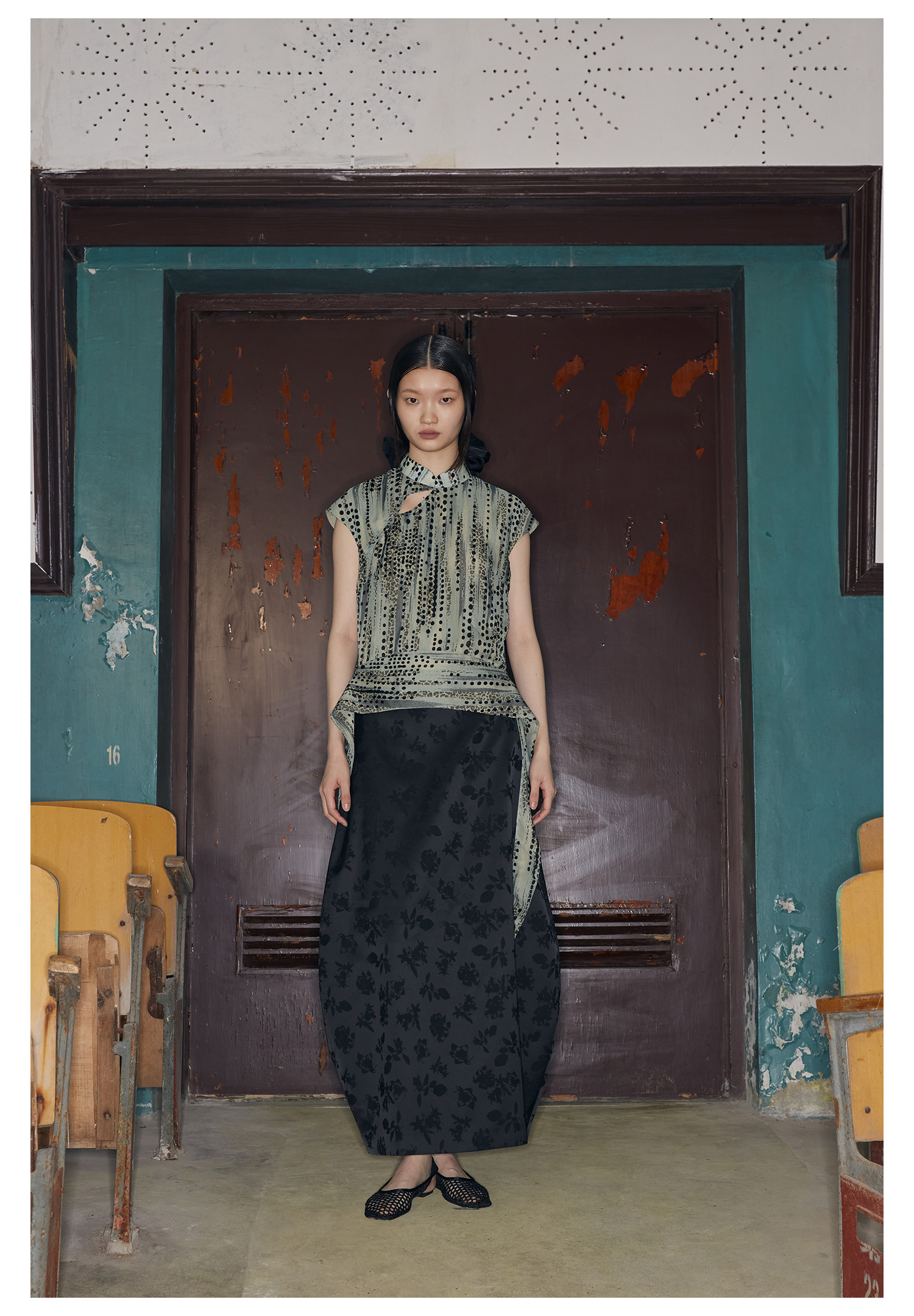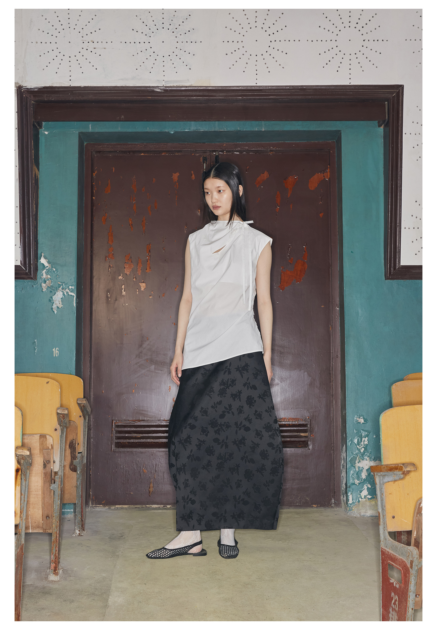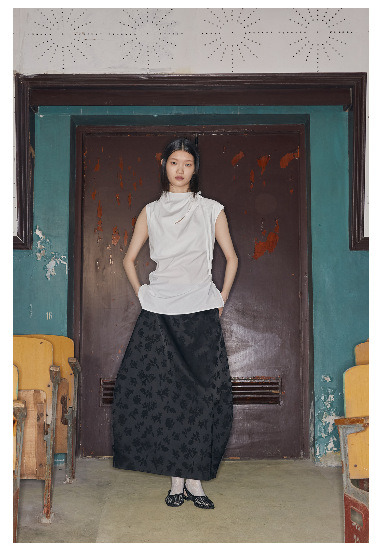 ASAYA3374 Chinese Black Satin Jacquard Design Flower Bud Skirt