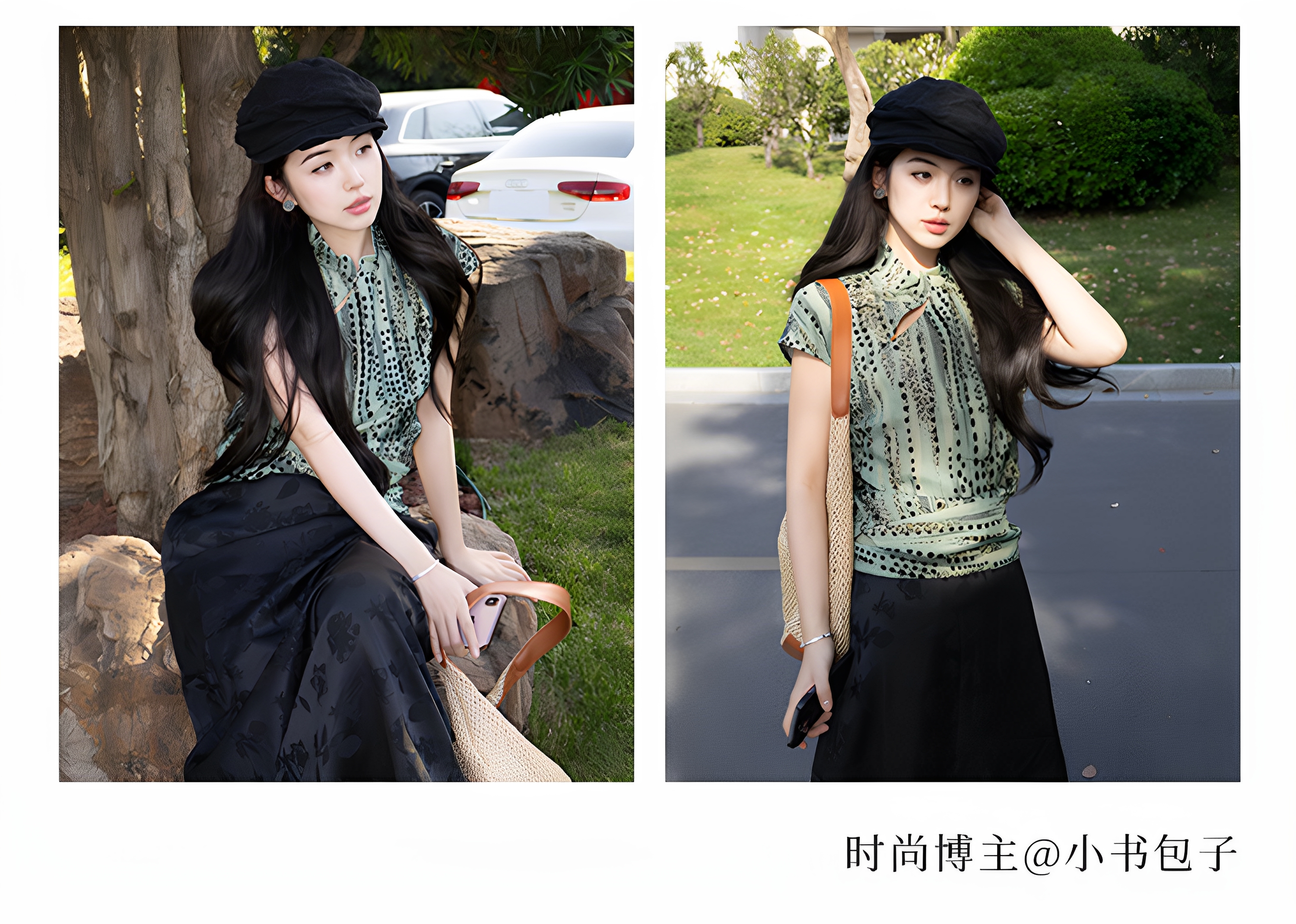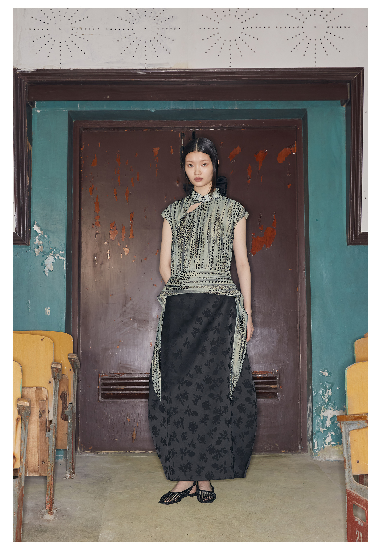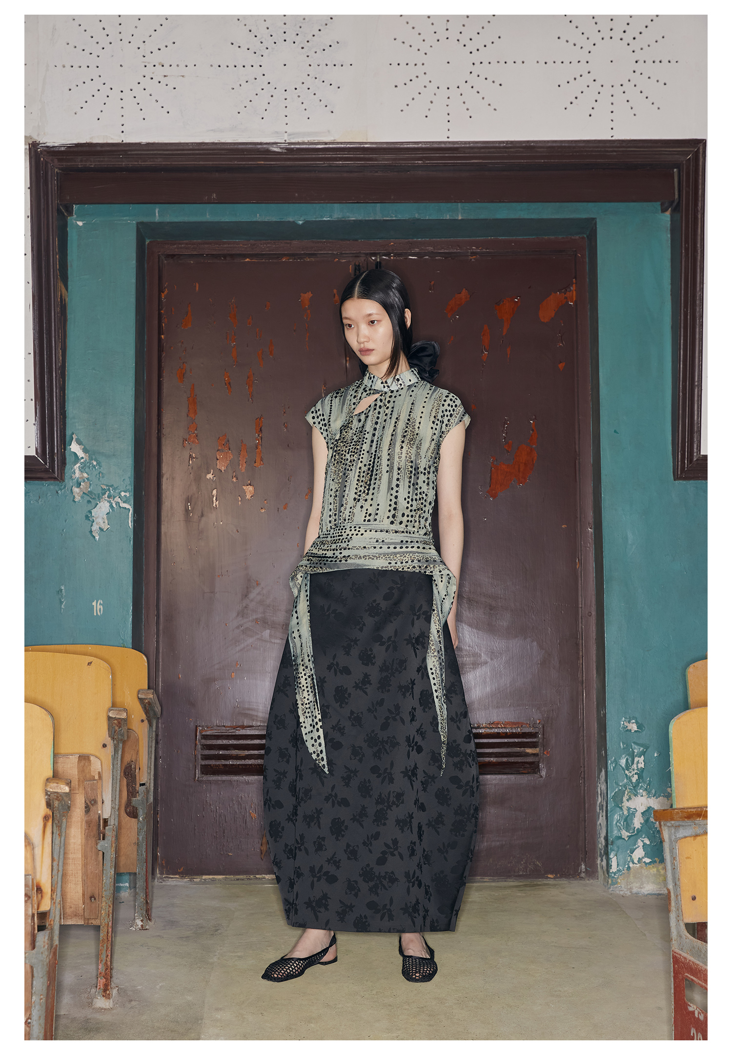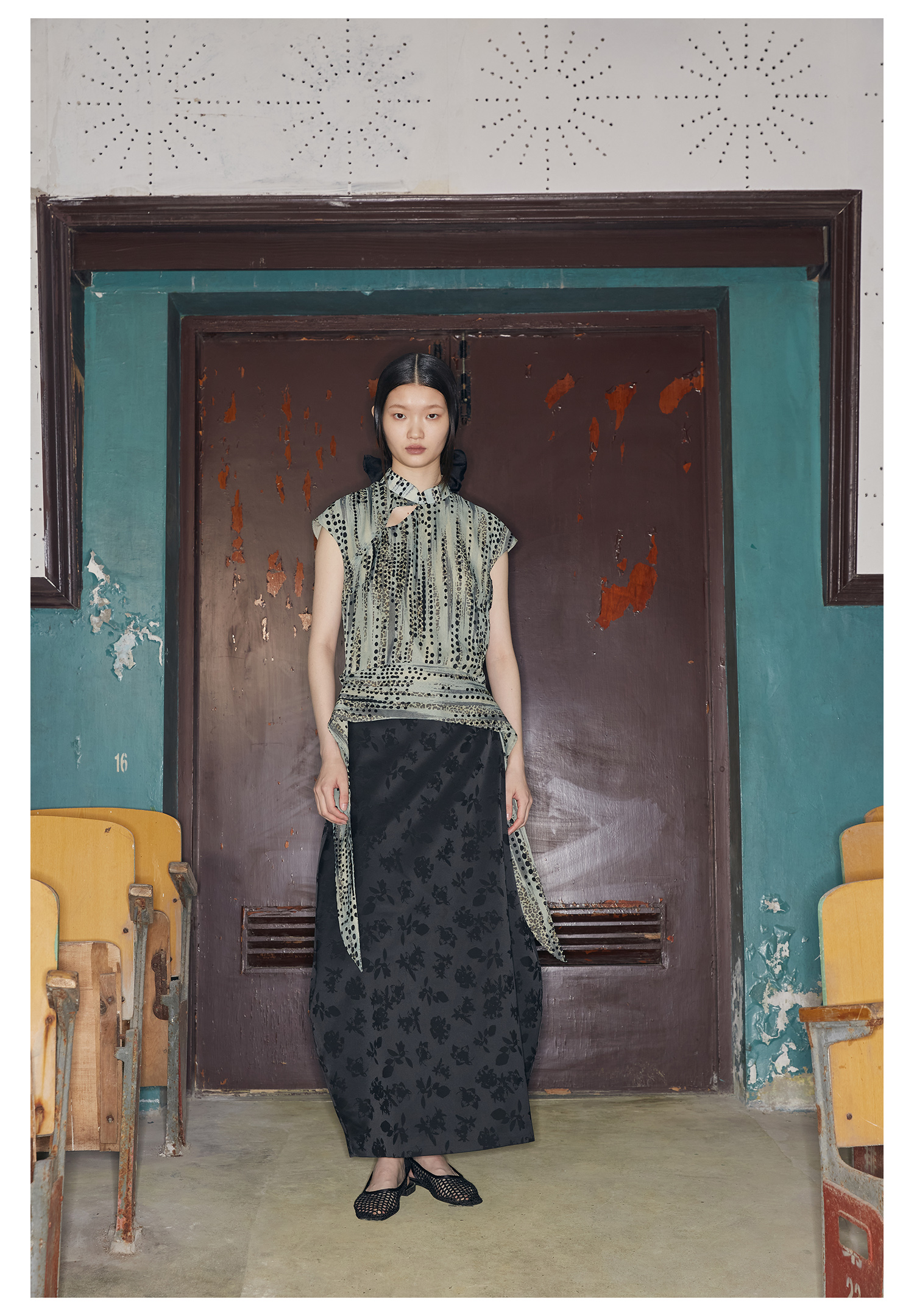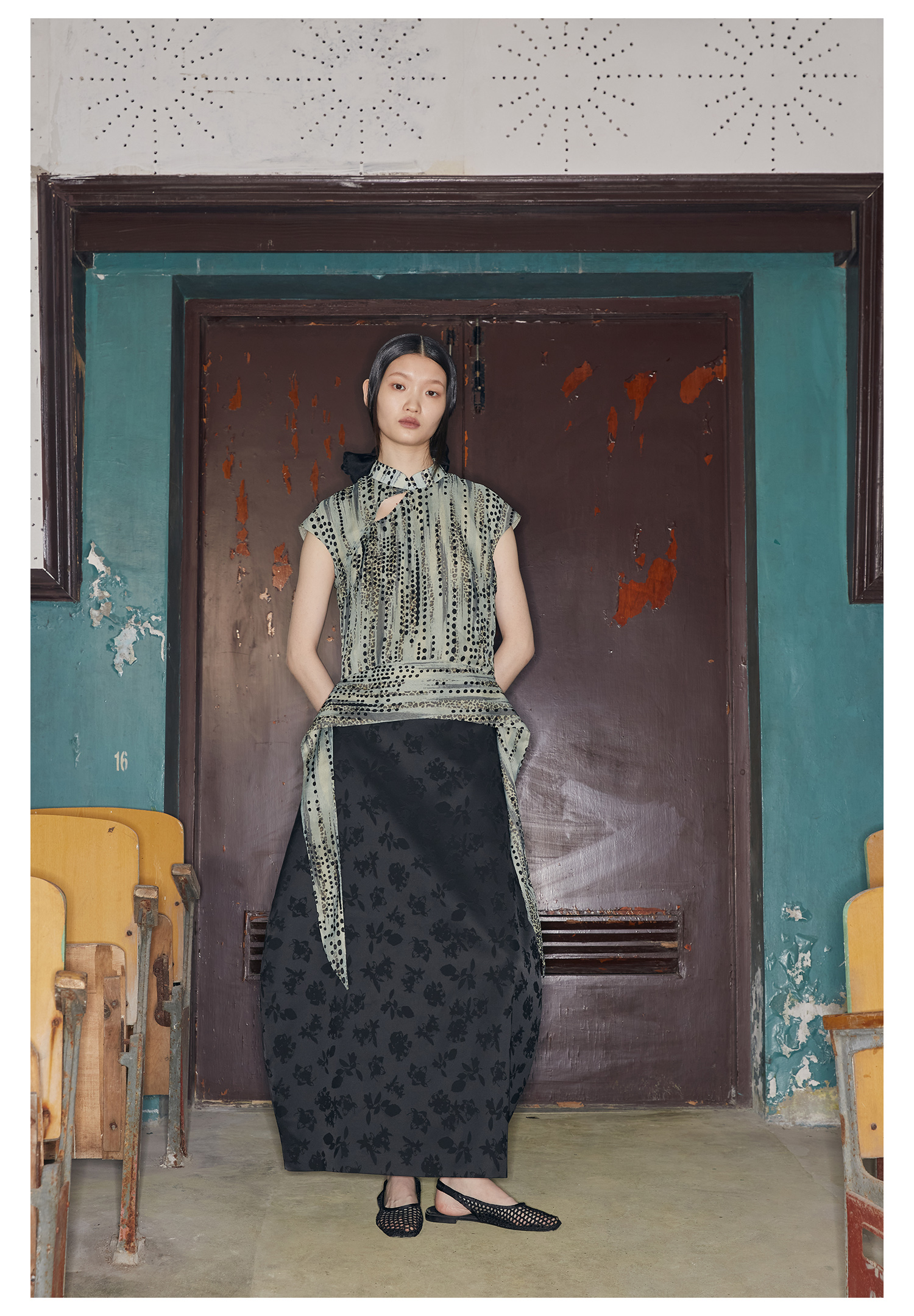 ASAYA3374 Chinese Black Satin Jacquard Design Flower Bud Skirt