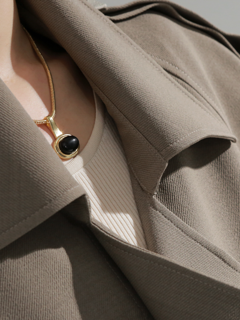 ASAYA3701 : Metal rivet design high waist long windbreaker women's loose jacket