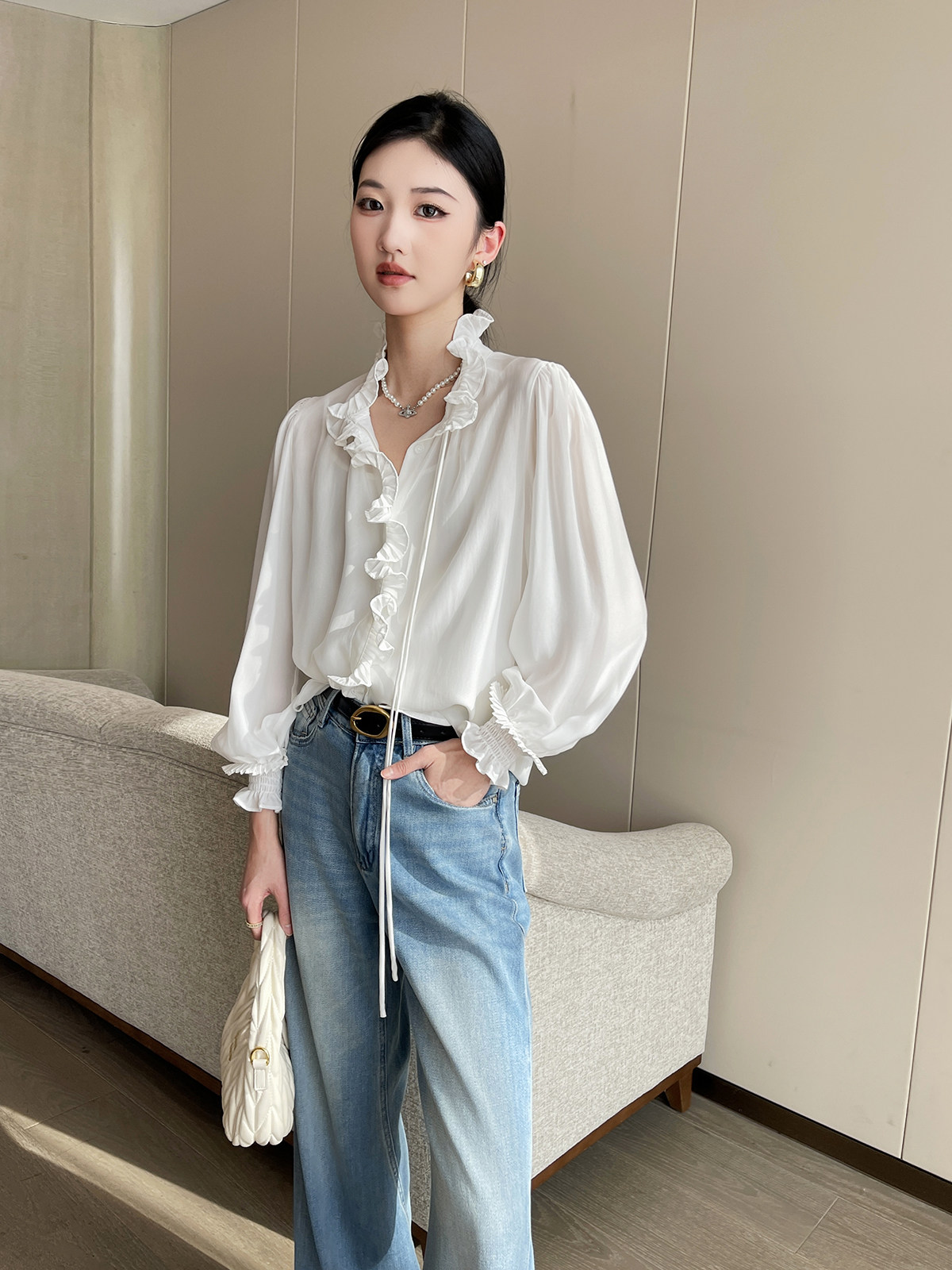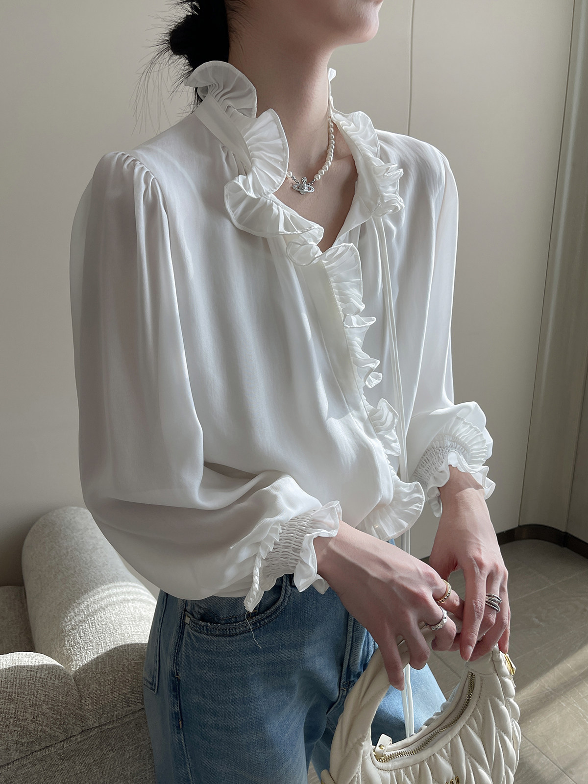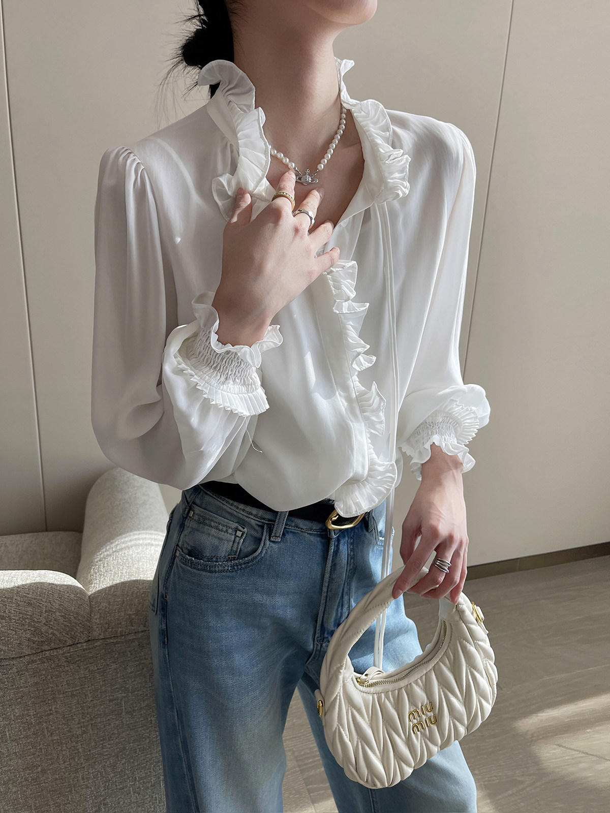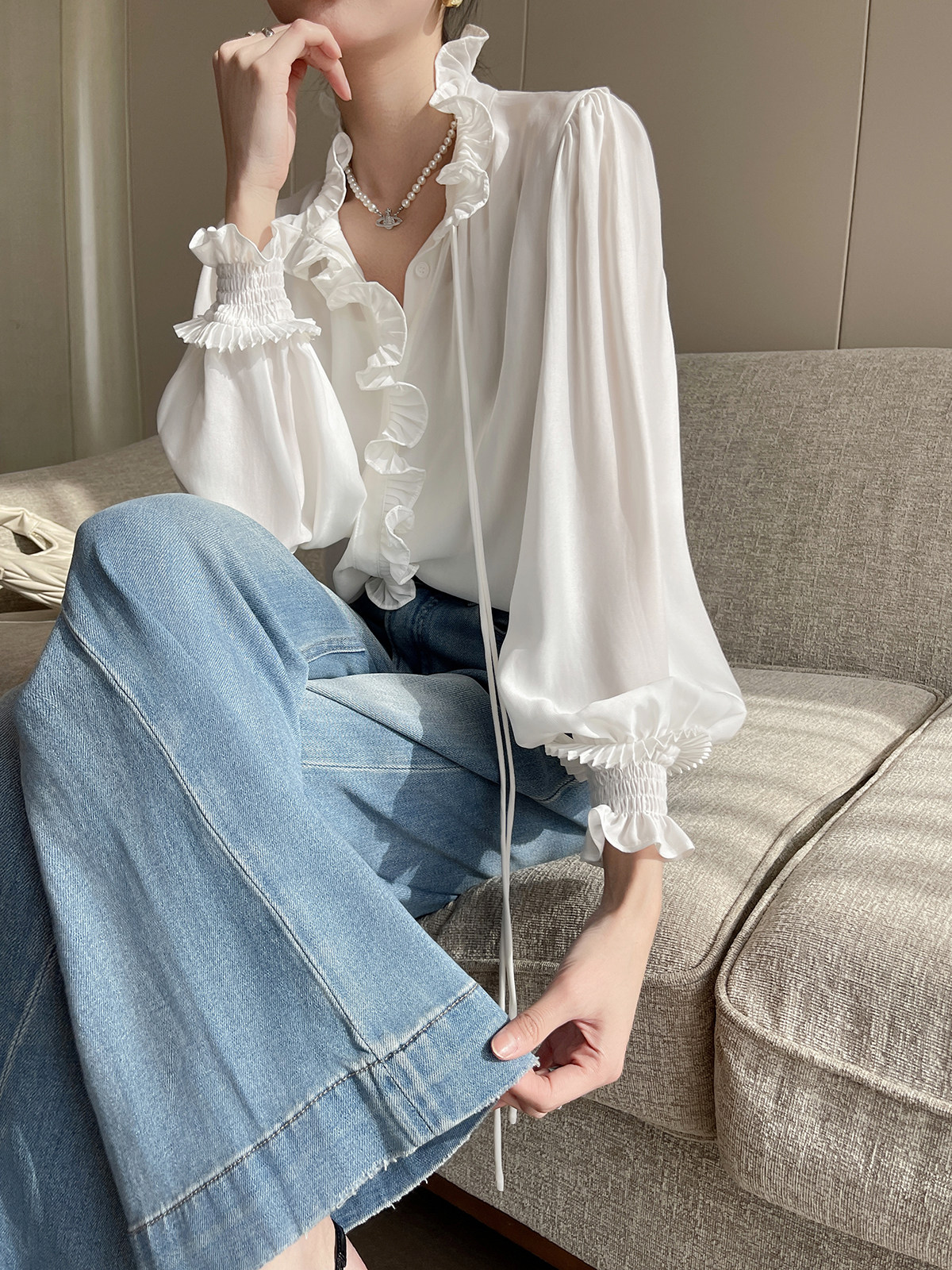 ASAYA5147 – Parisian Ruffle Silk Blouse 🤍☁️