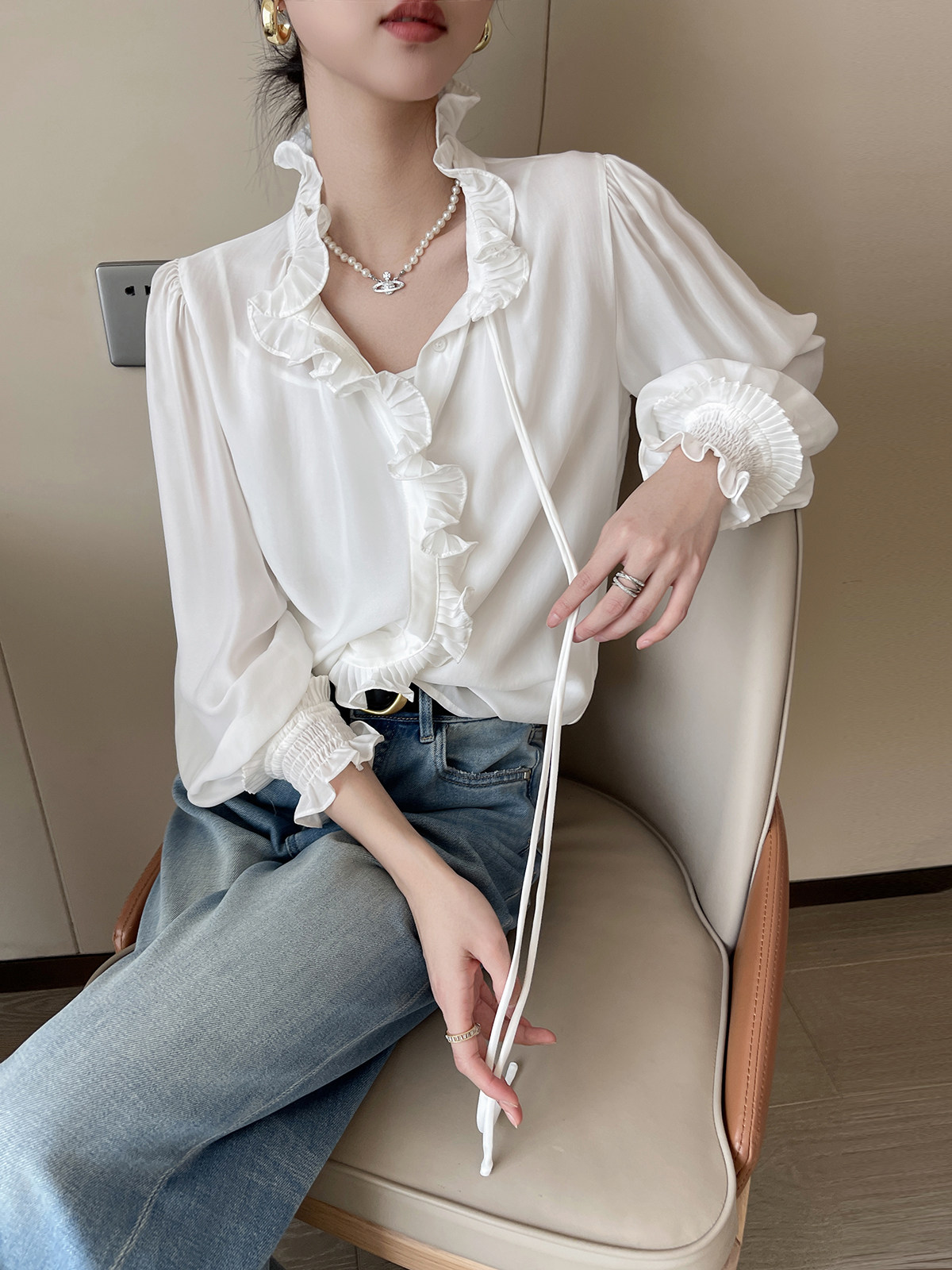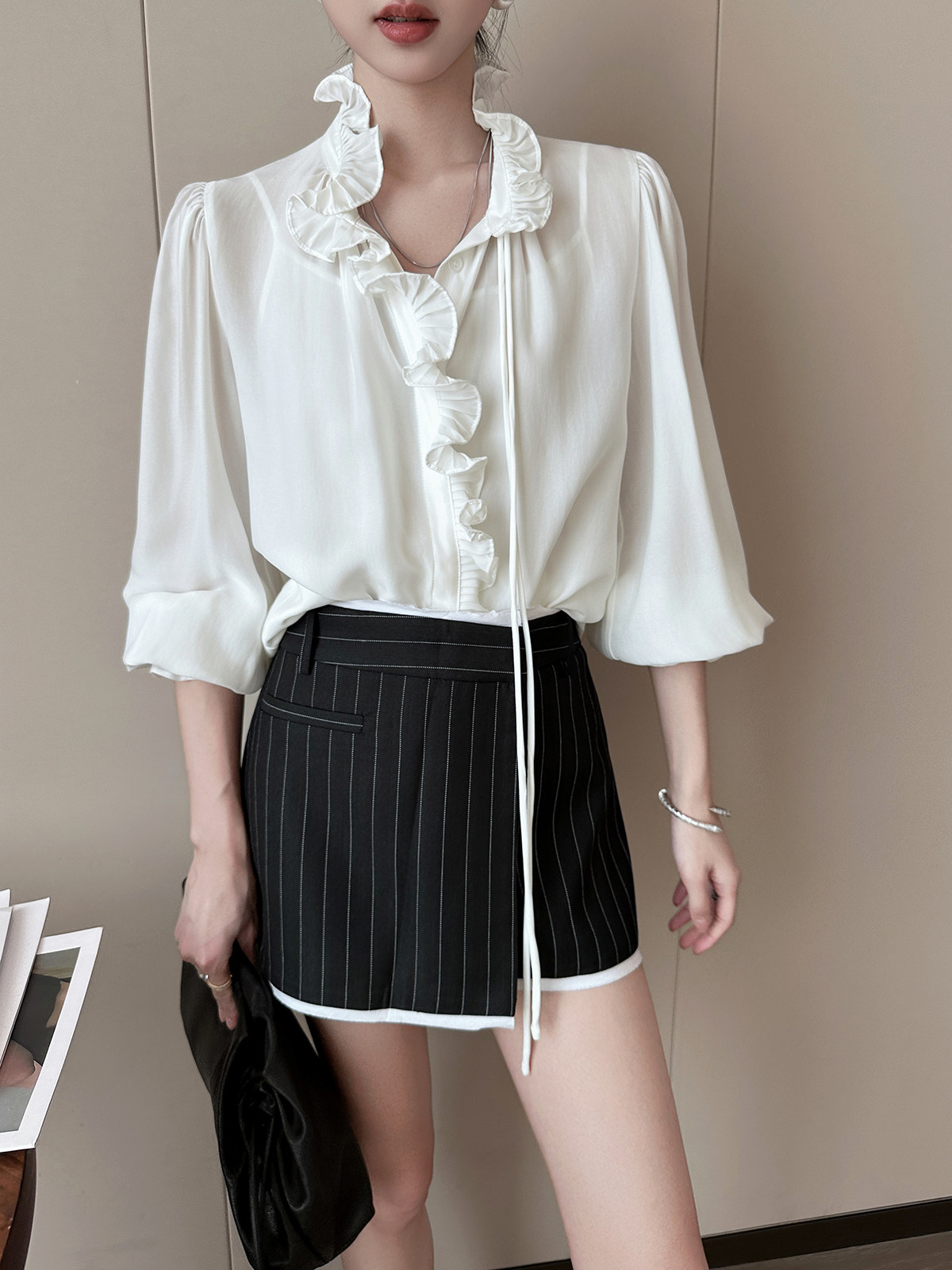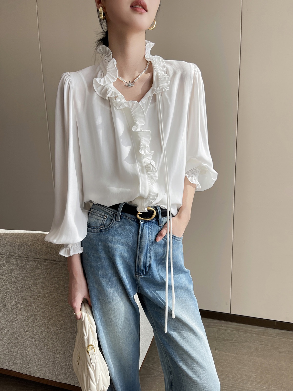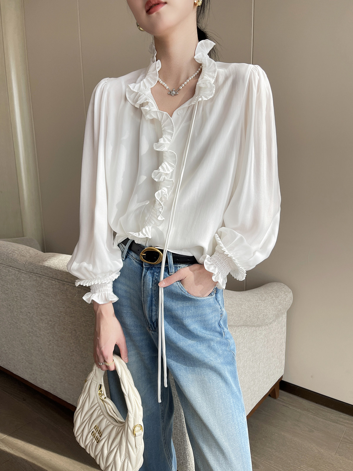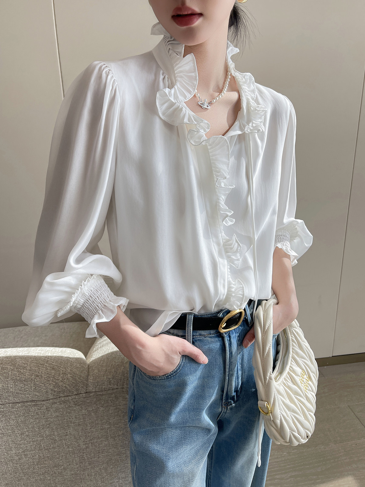 ASAYA5147 – Parisian Ruffle Silk Blouse 🤍☁️