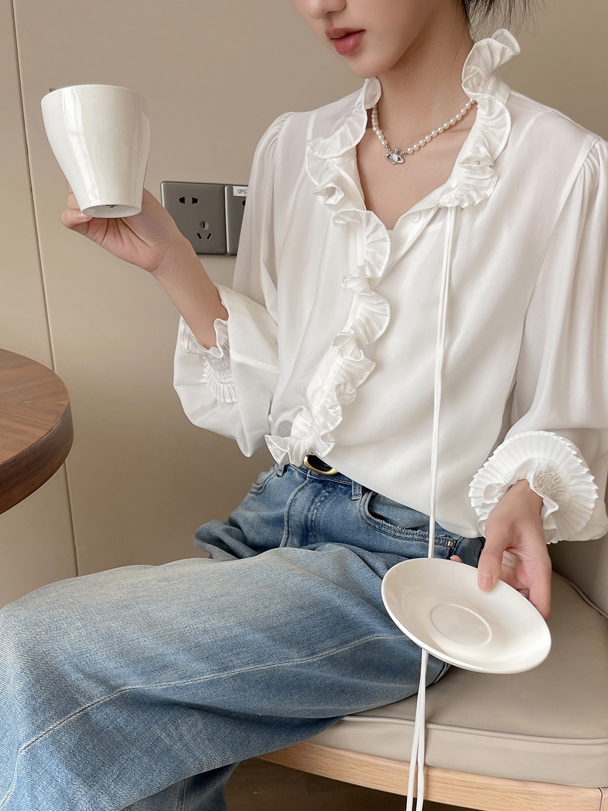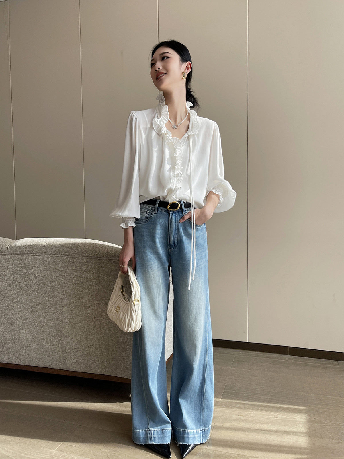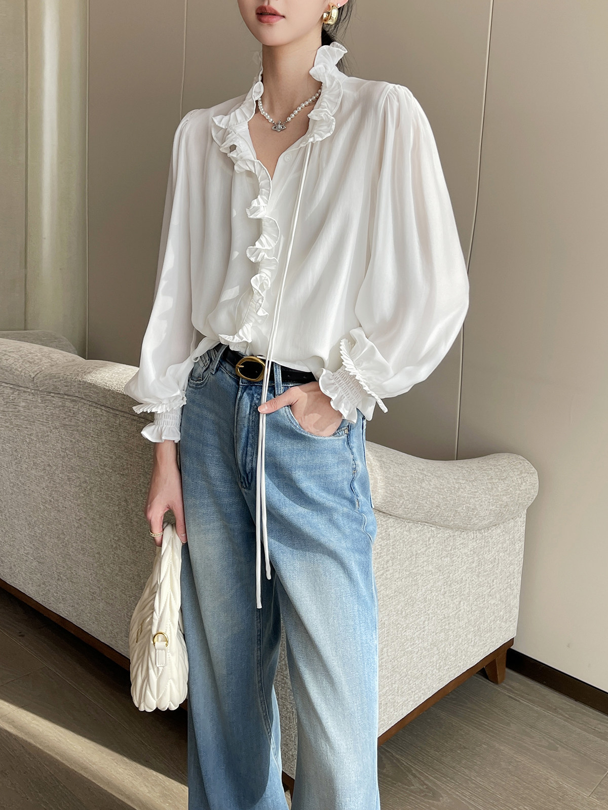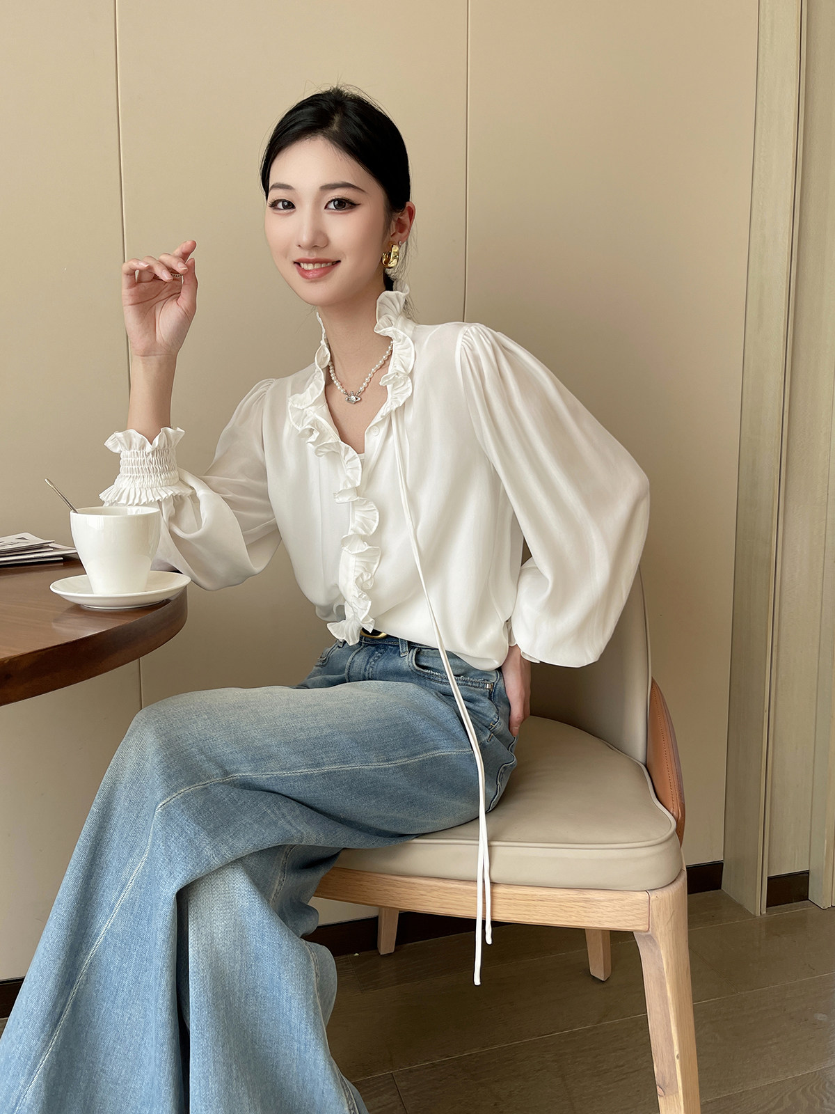 ASAYA5147 – Parisian Ruffle Silk Blouse 🤍☁️
