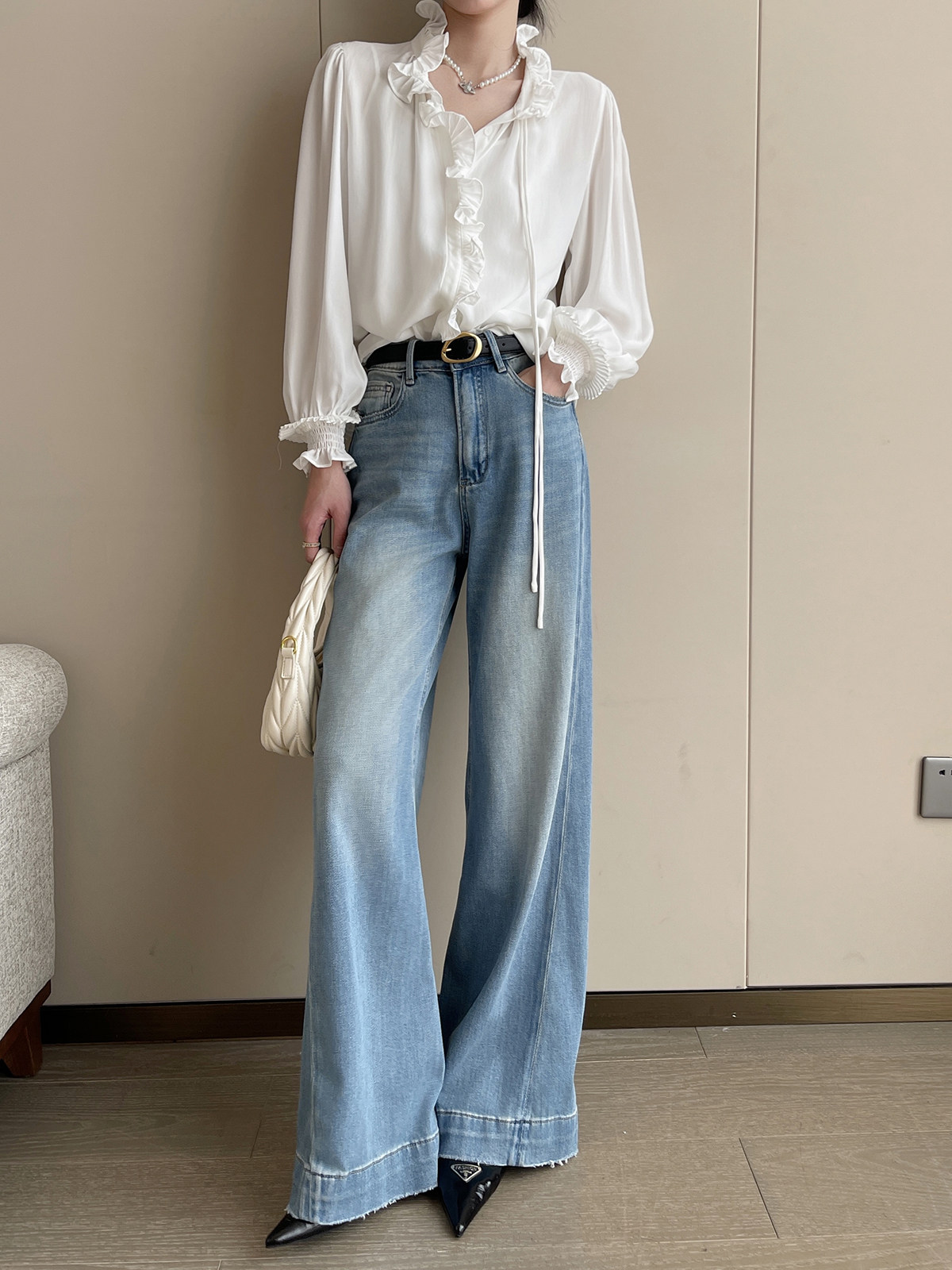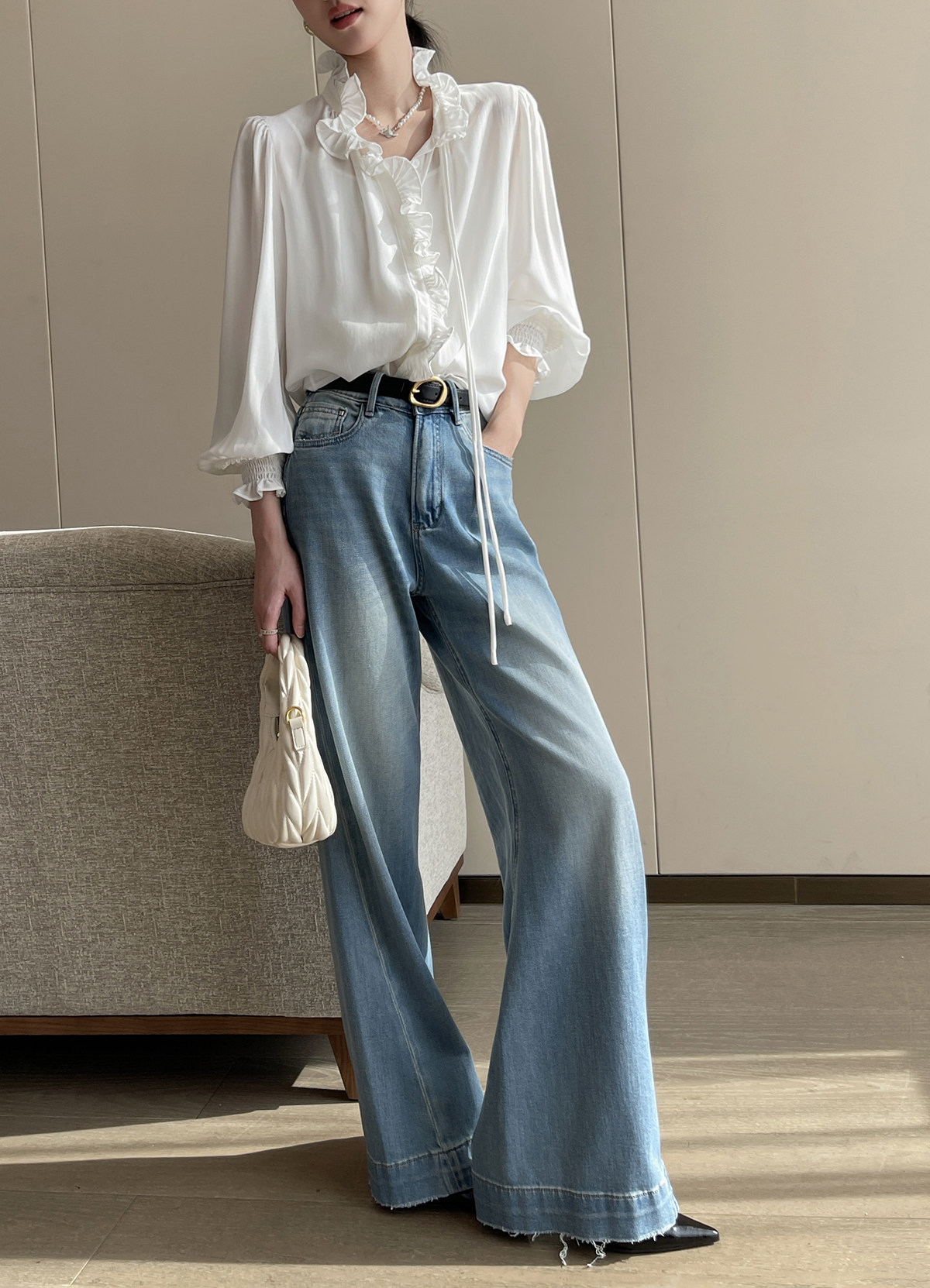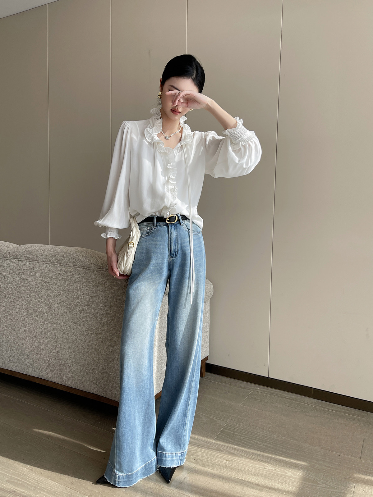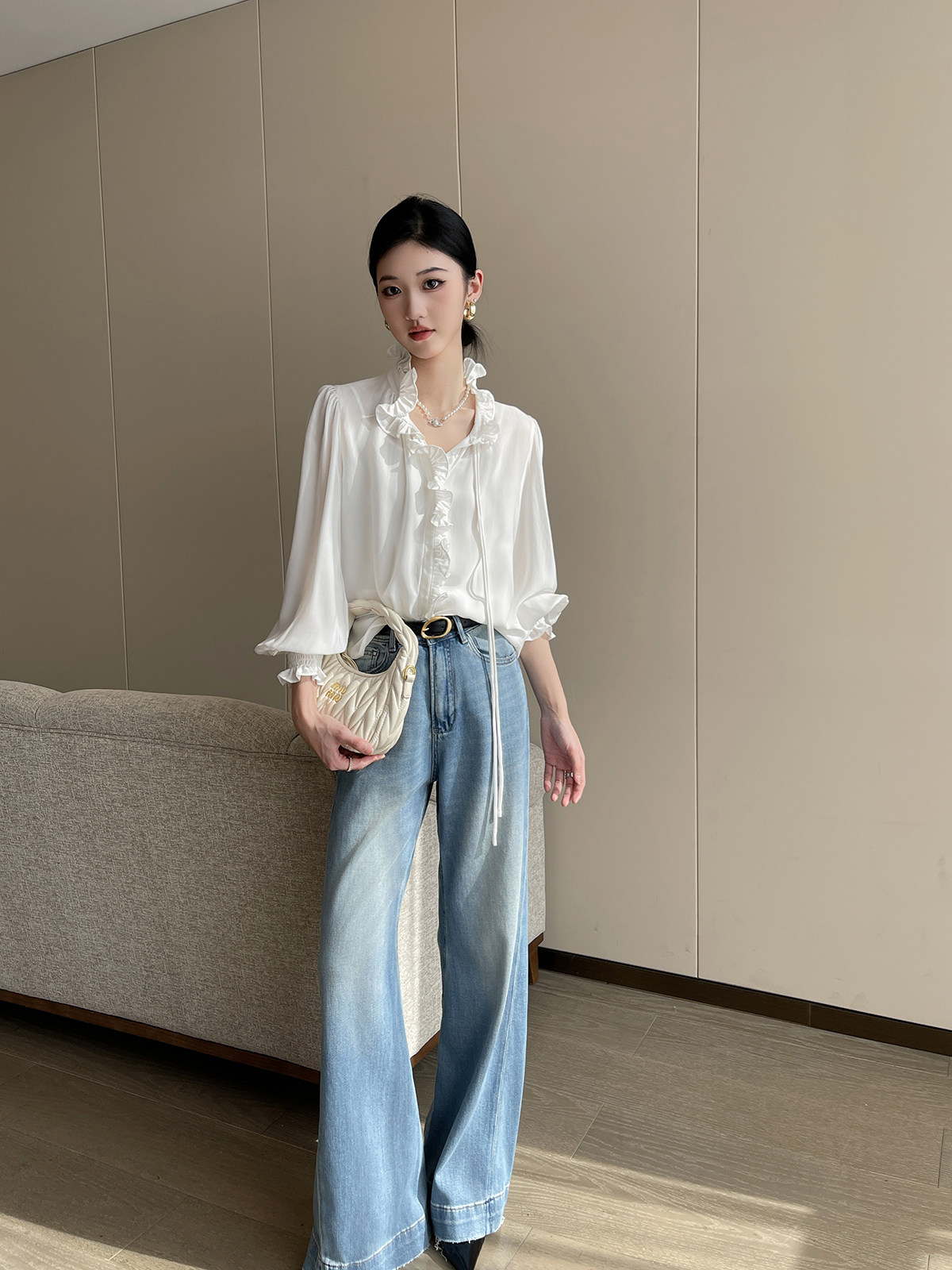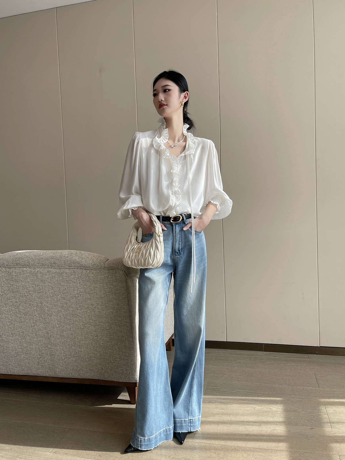 ASAYA5147 – Parisian Ruffle Silk Blouse 🤍☁️