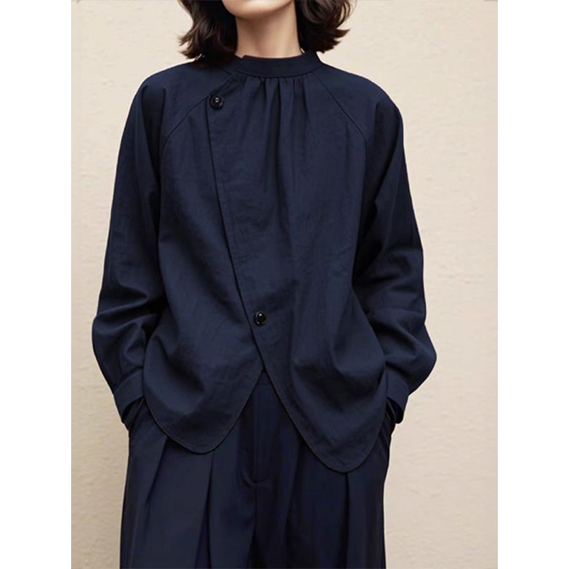 ASAYA5376 – Midnight Draped Asymmetry Shirt 🌙🖤