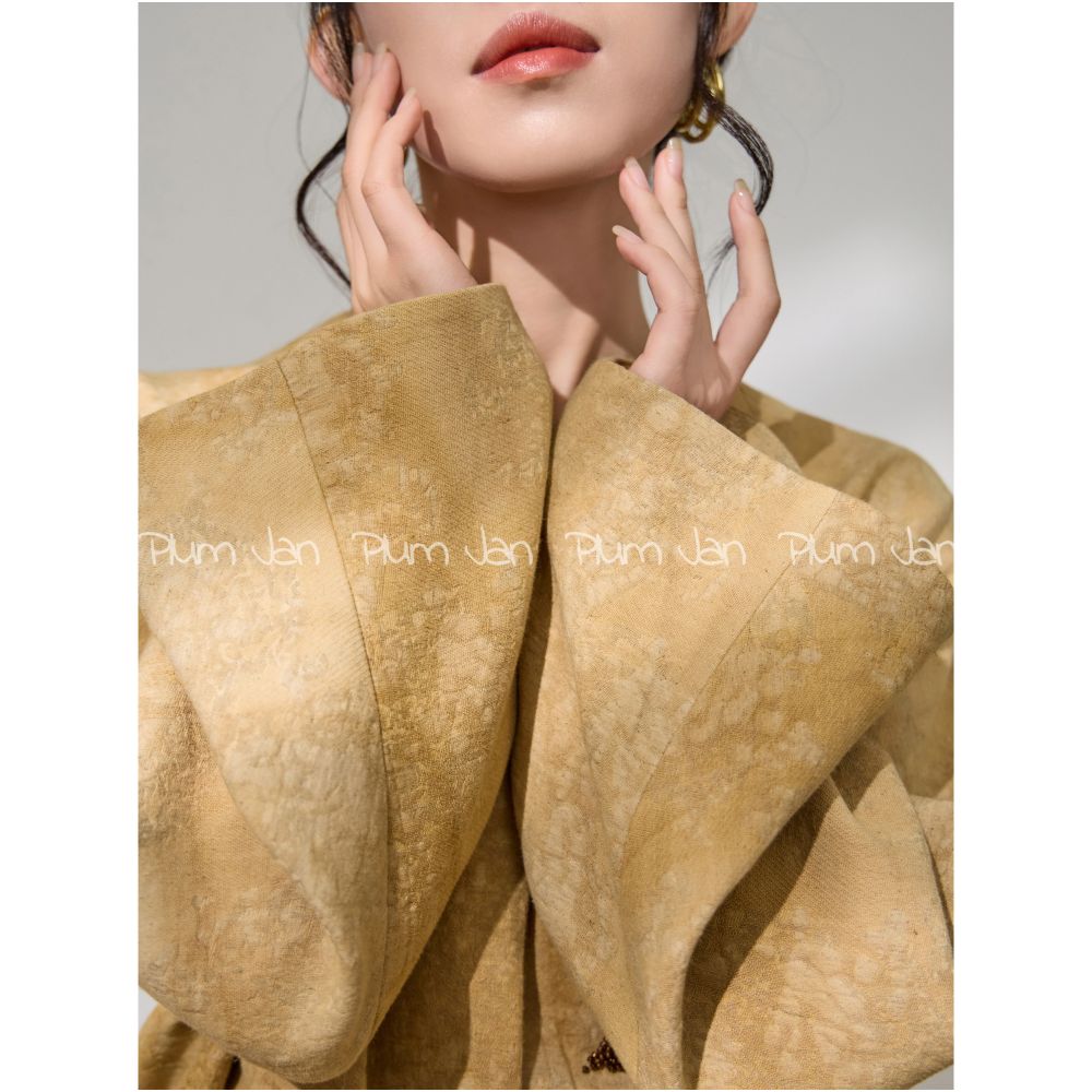 ASAYA4986 – Golden Crane Jacquard Jacket 🕊️✨