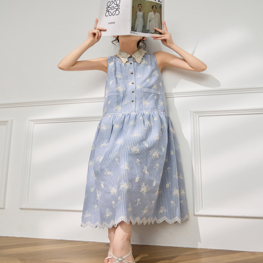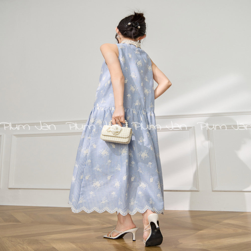 ASAYA4478 - Embroidered Collar Midi Dress in Powder Blue 🤍🌿
