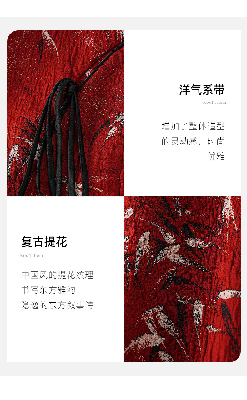 | Style details | Button tie embroidery/embroidery three-dimensional decoration splicing asymmetrical |
