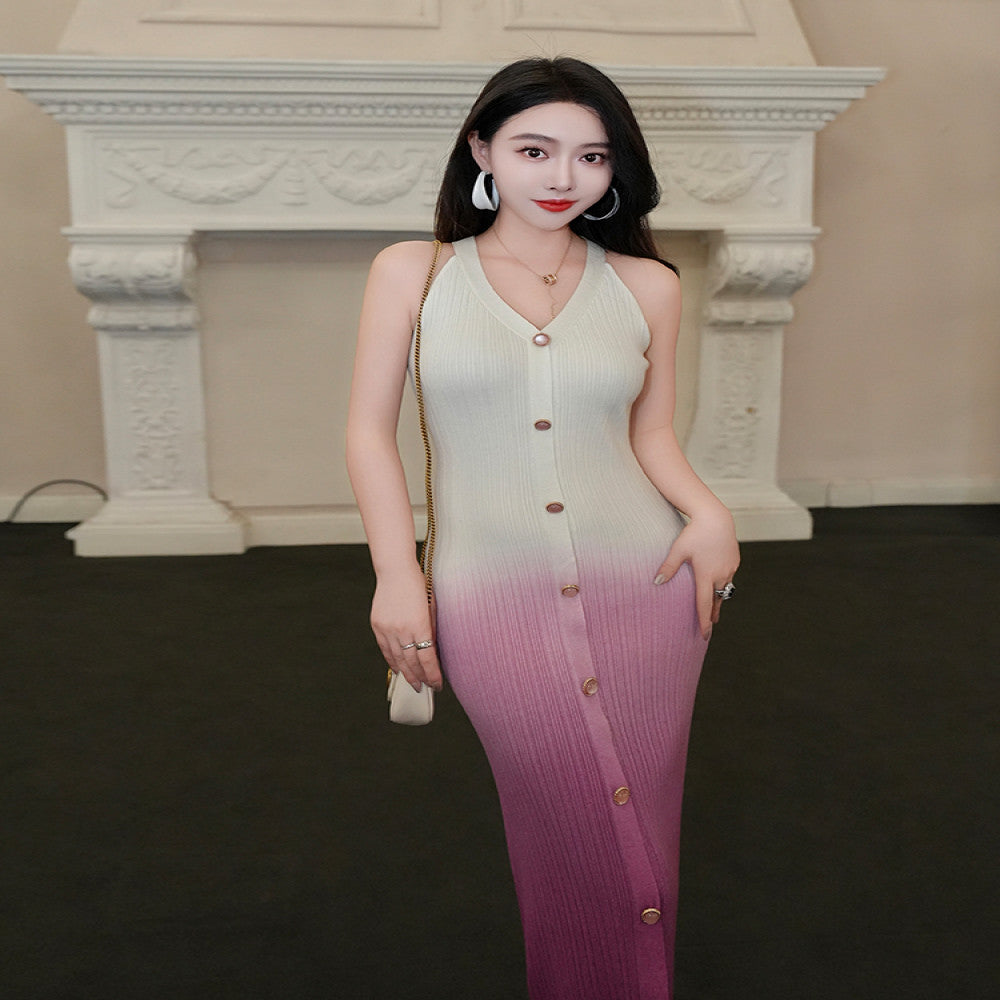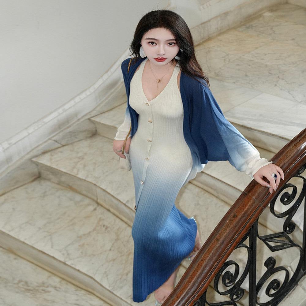 ASAYA3707 Dyed knitted halter neck dress and matching cardigan