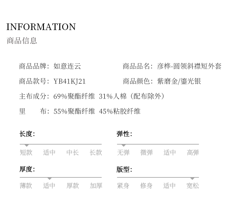 | Material composition | 69% polyester fiber, 31% regenerated cellulose fiber |