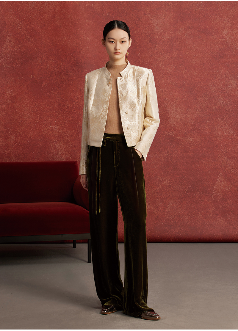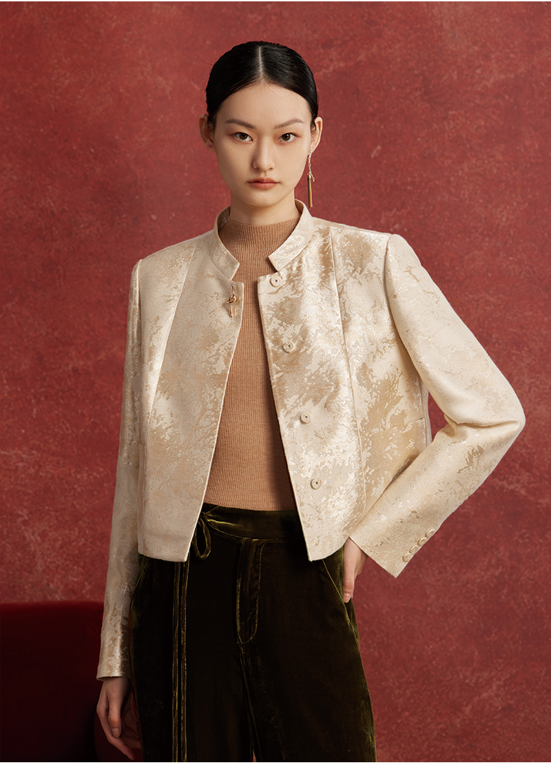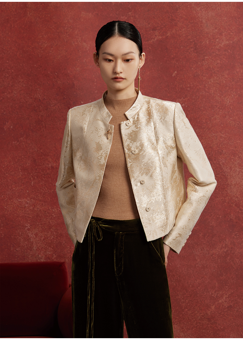 ASAYA2628 Spring New Style Small Stand Collar Jacquard Short Jacket