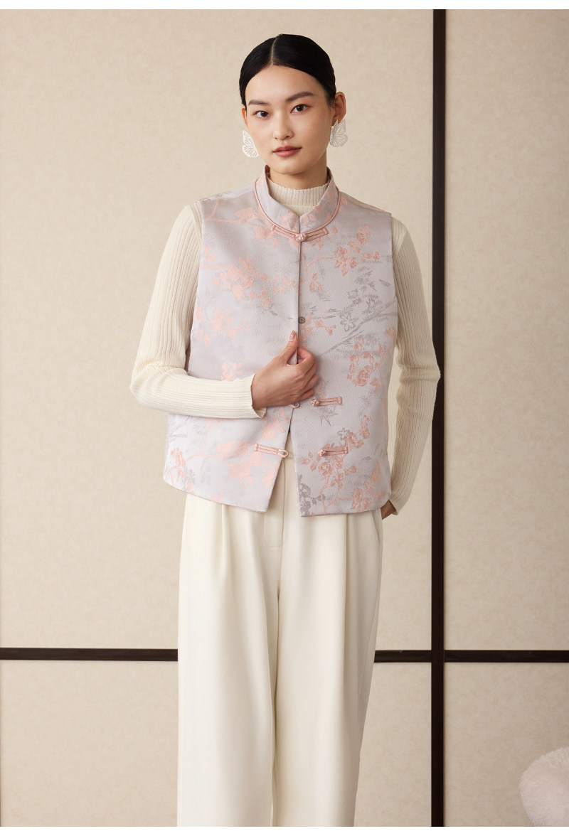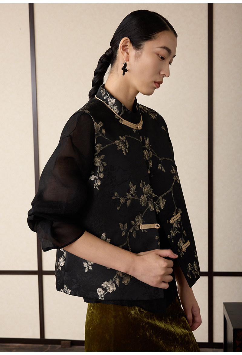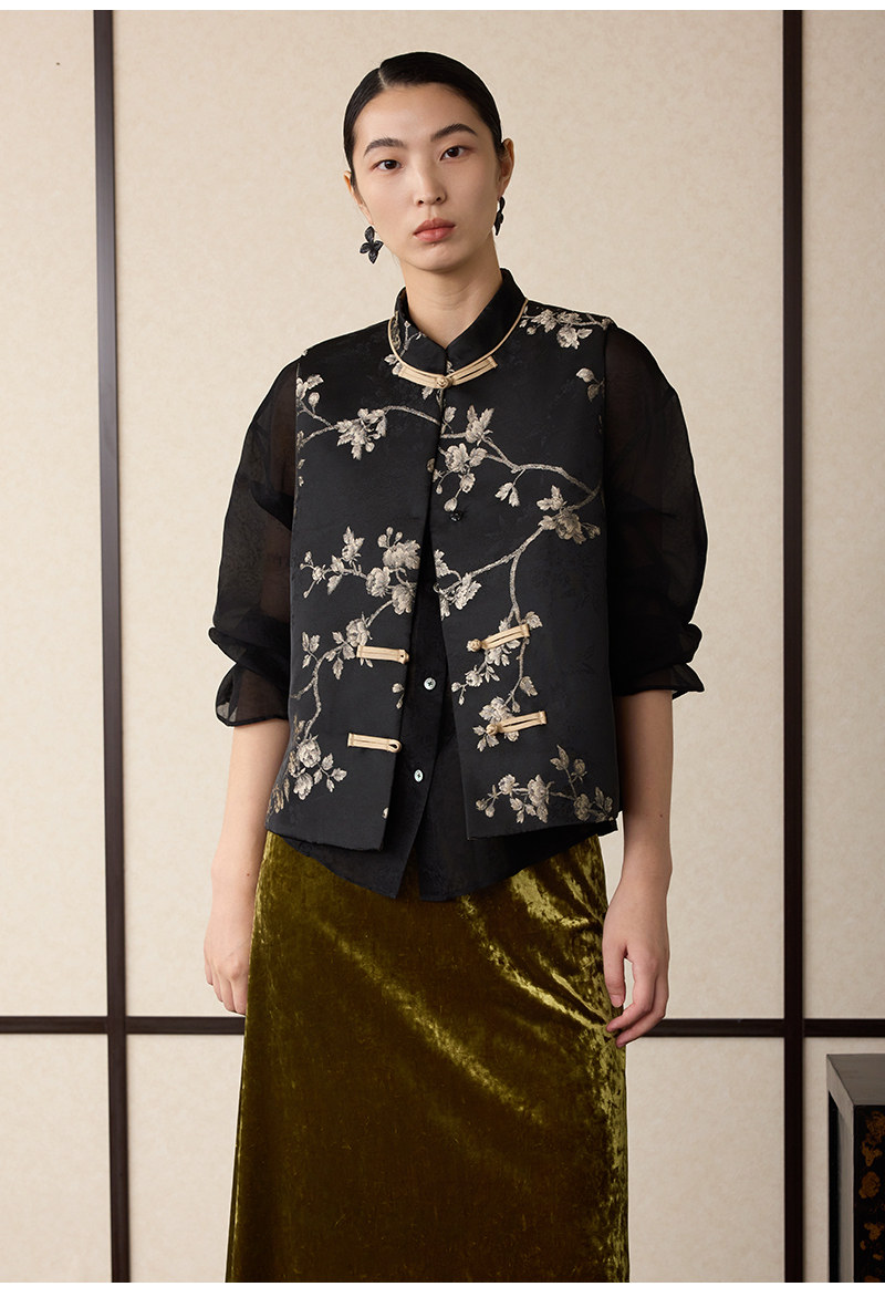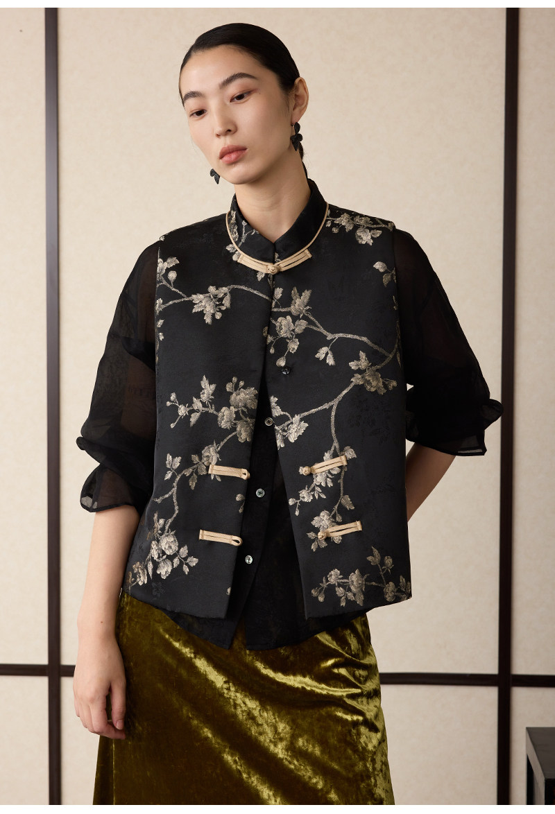 ASAYA5413 – Blossom Brocade Mandarin Vest 🌸✨