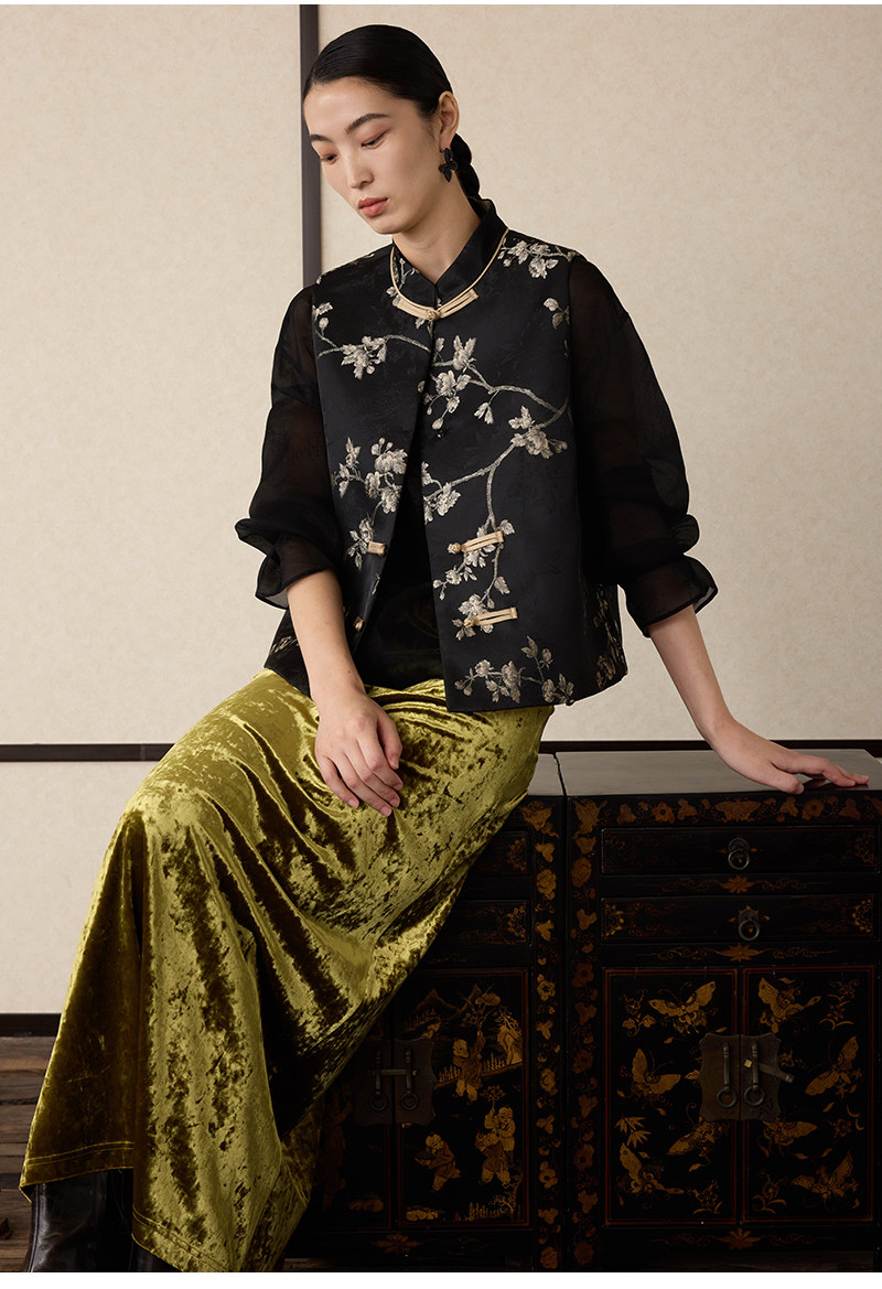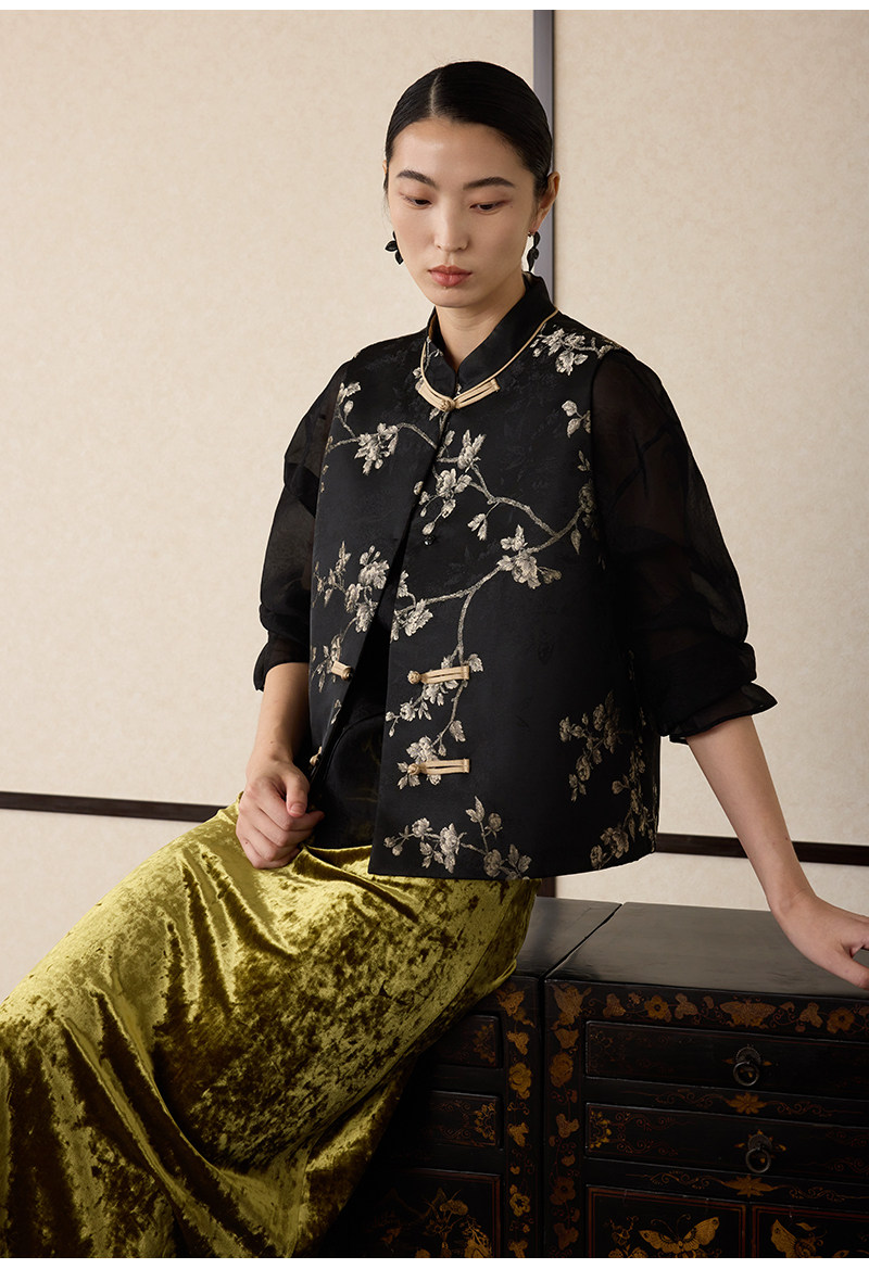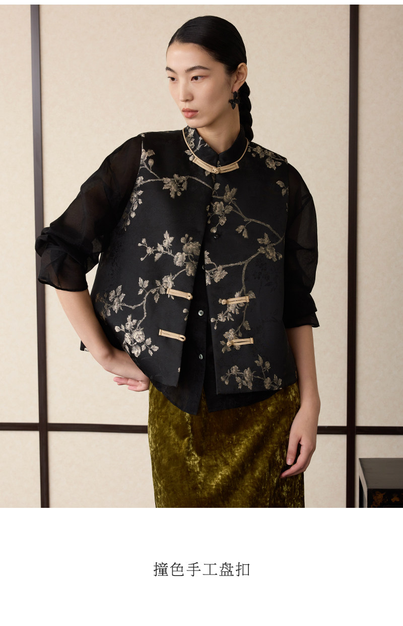ASAYA5413 – Blossom Brocade Mandarin Vest 🌸✨