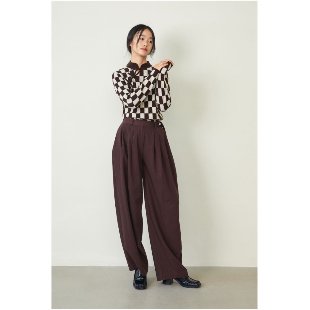 Asaya0424 - Blue Dot Original Designer 100 Wool Chessboard Pattern Chinese Plate Button Knitted Sweater Sweater