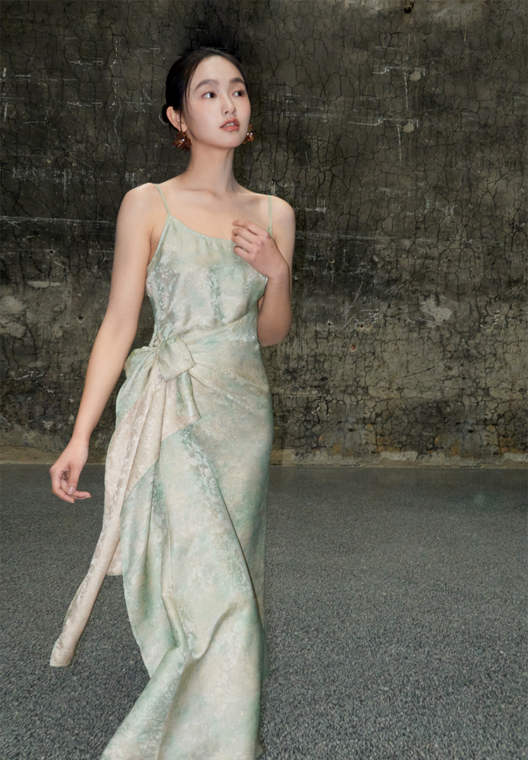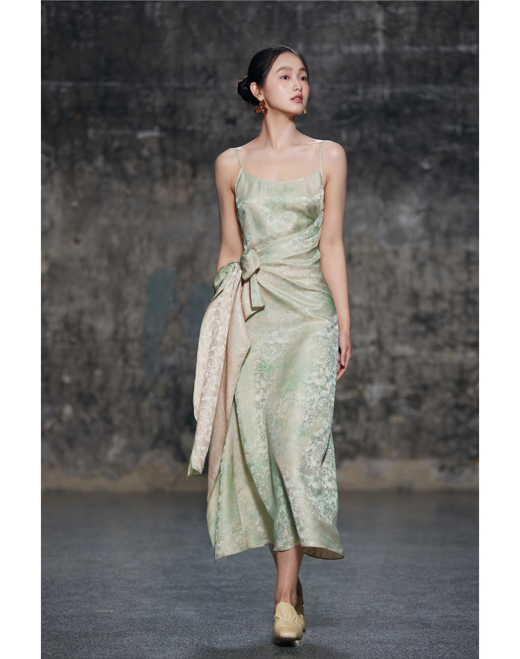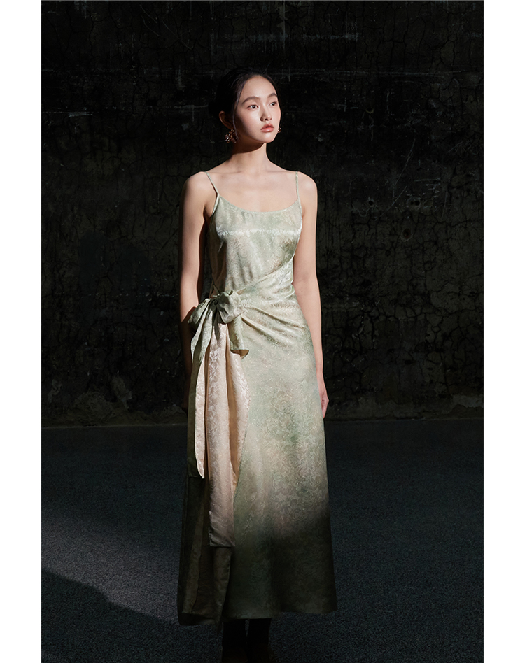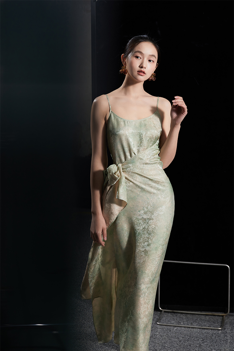 ASAYA3118 Silk interwoven jacquard Wrap-style strap design suspender skirt