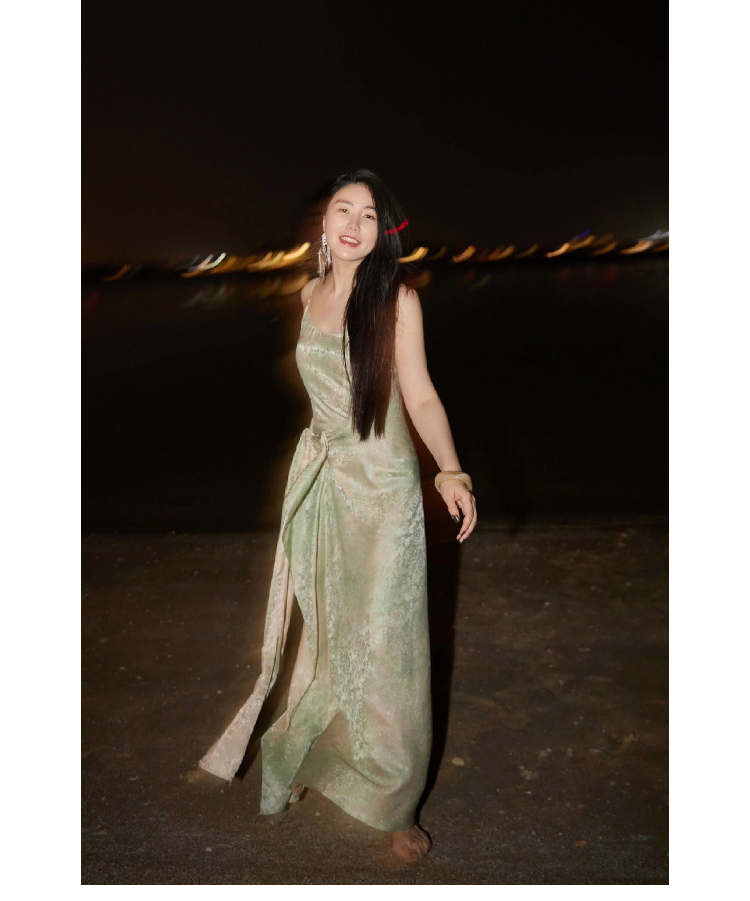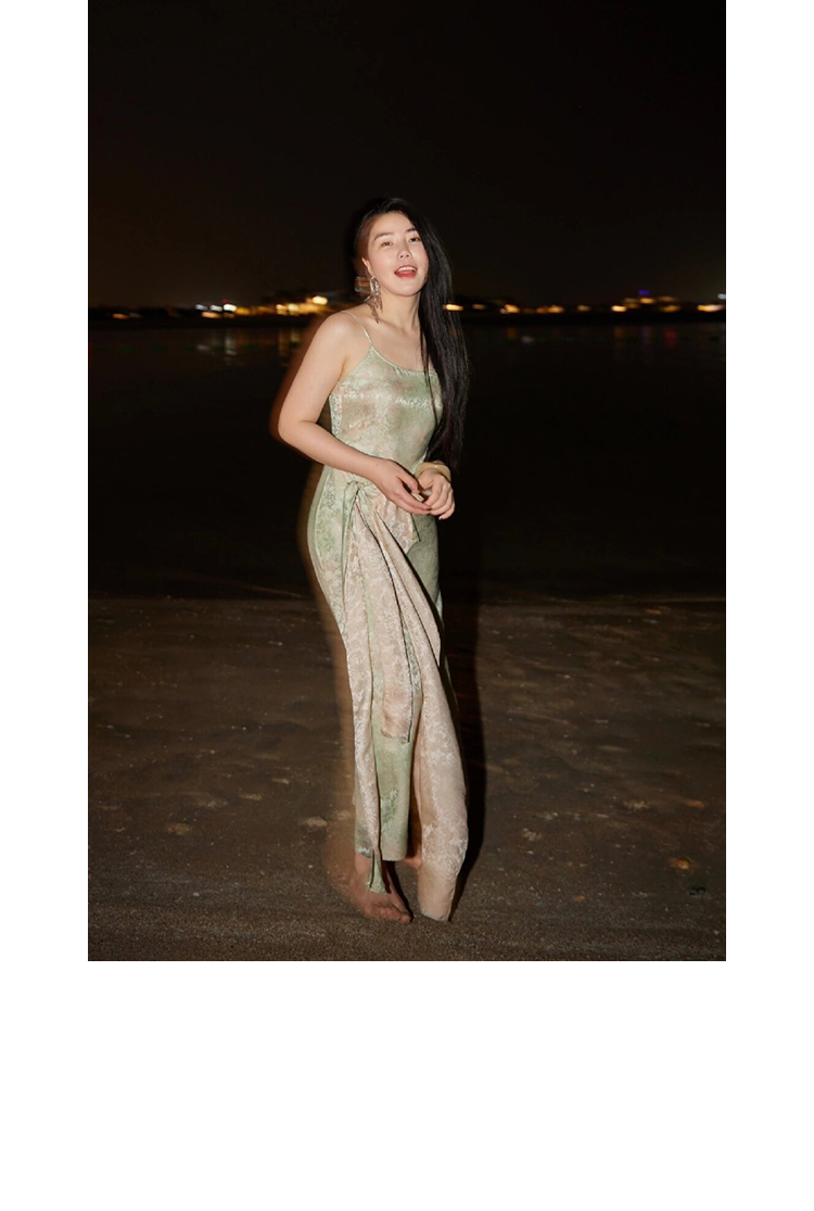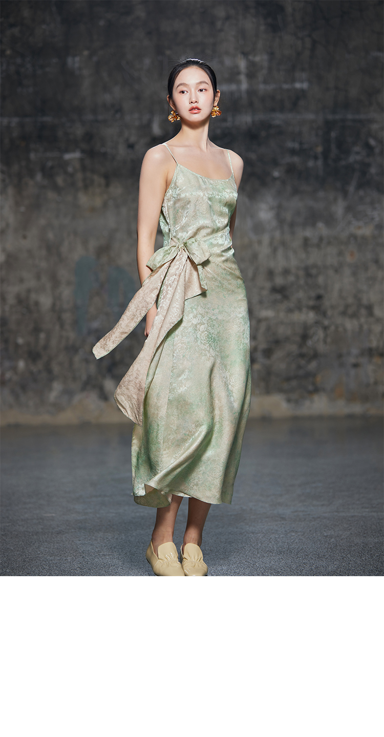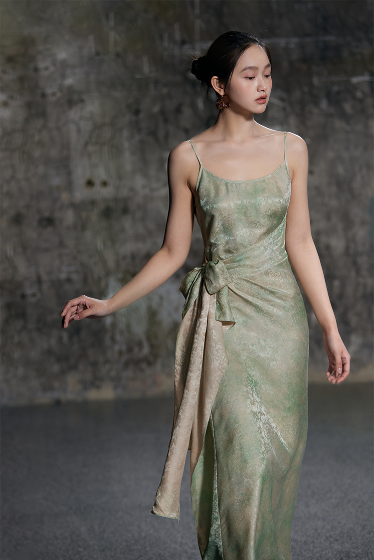 ASAYA3118 Silk interwoven jacquard Wrap-style strap design suspender skirt