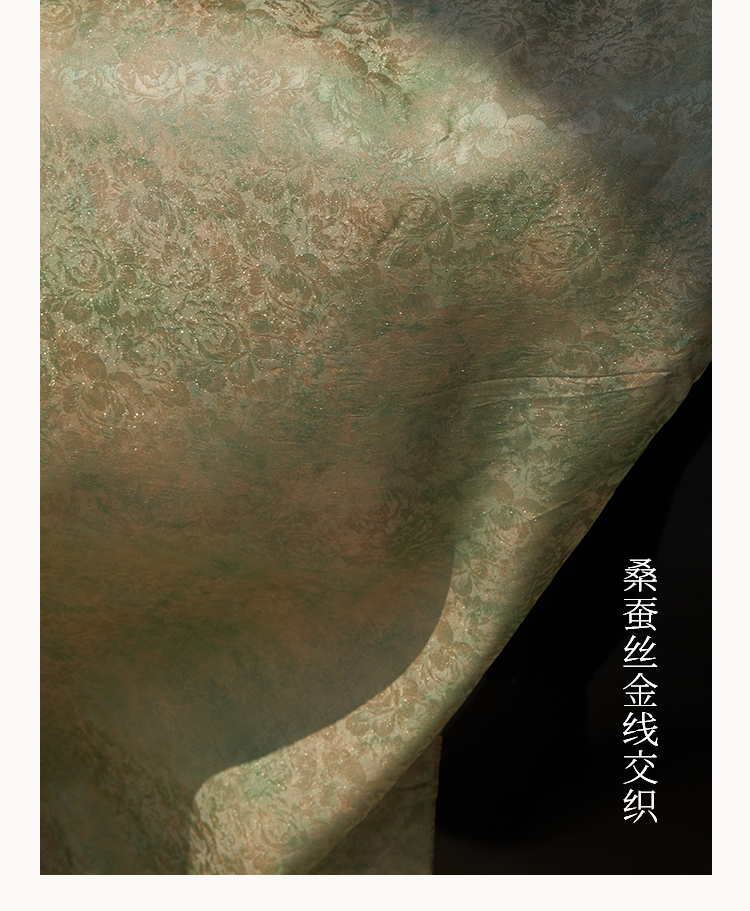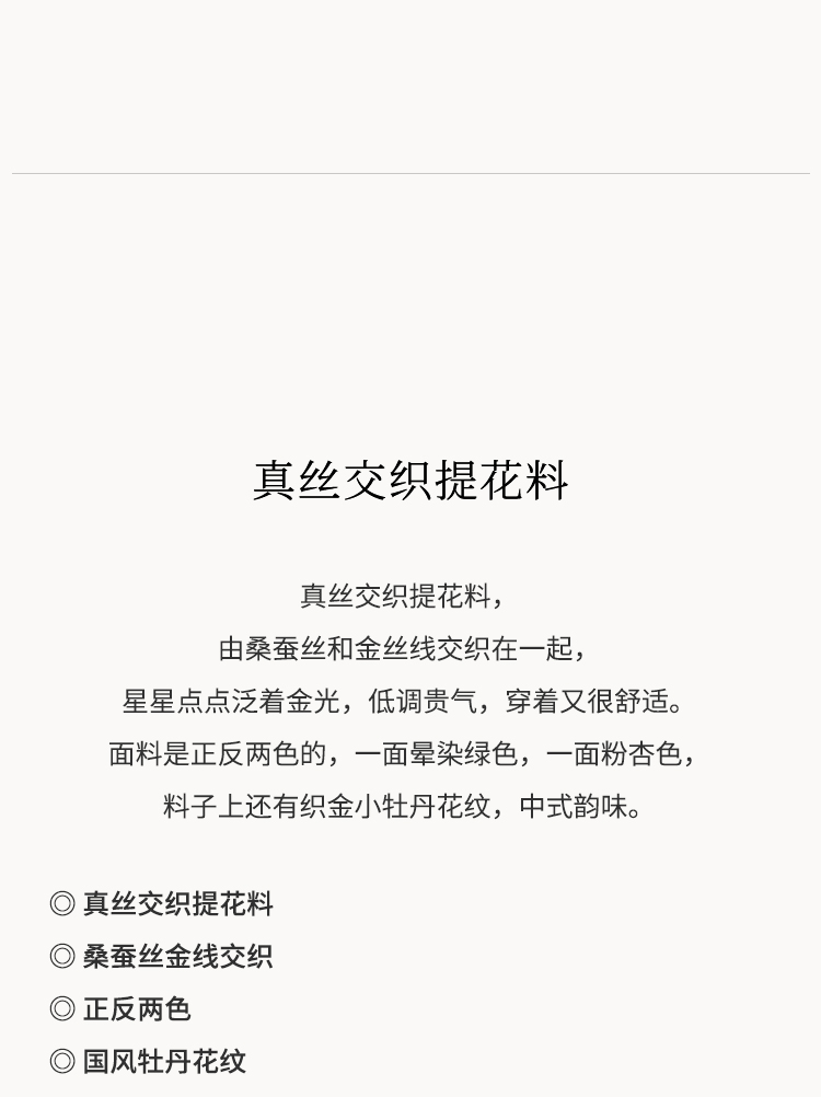 成分: 25%桑蚕丝 35%粘胶纤维30%人棉 10%金属丝