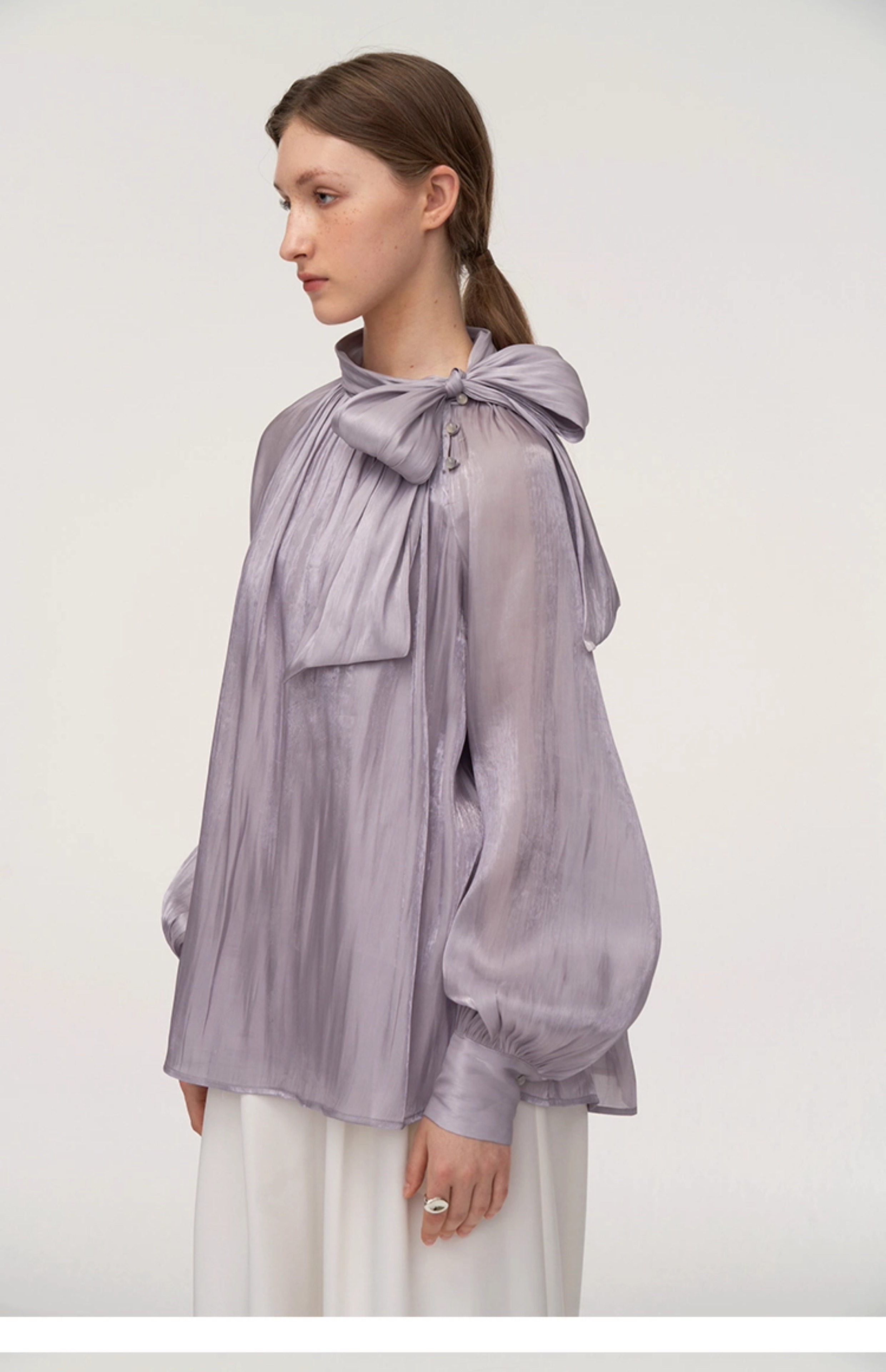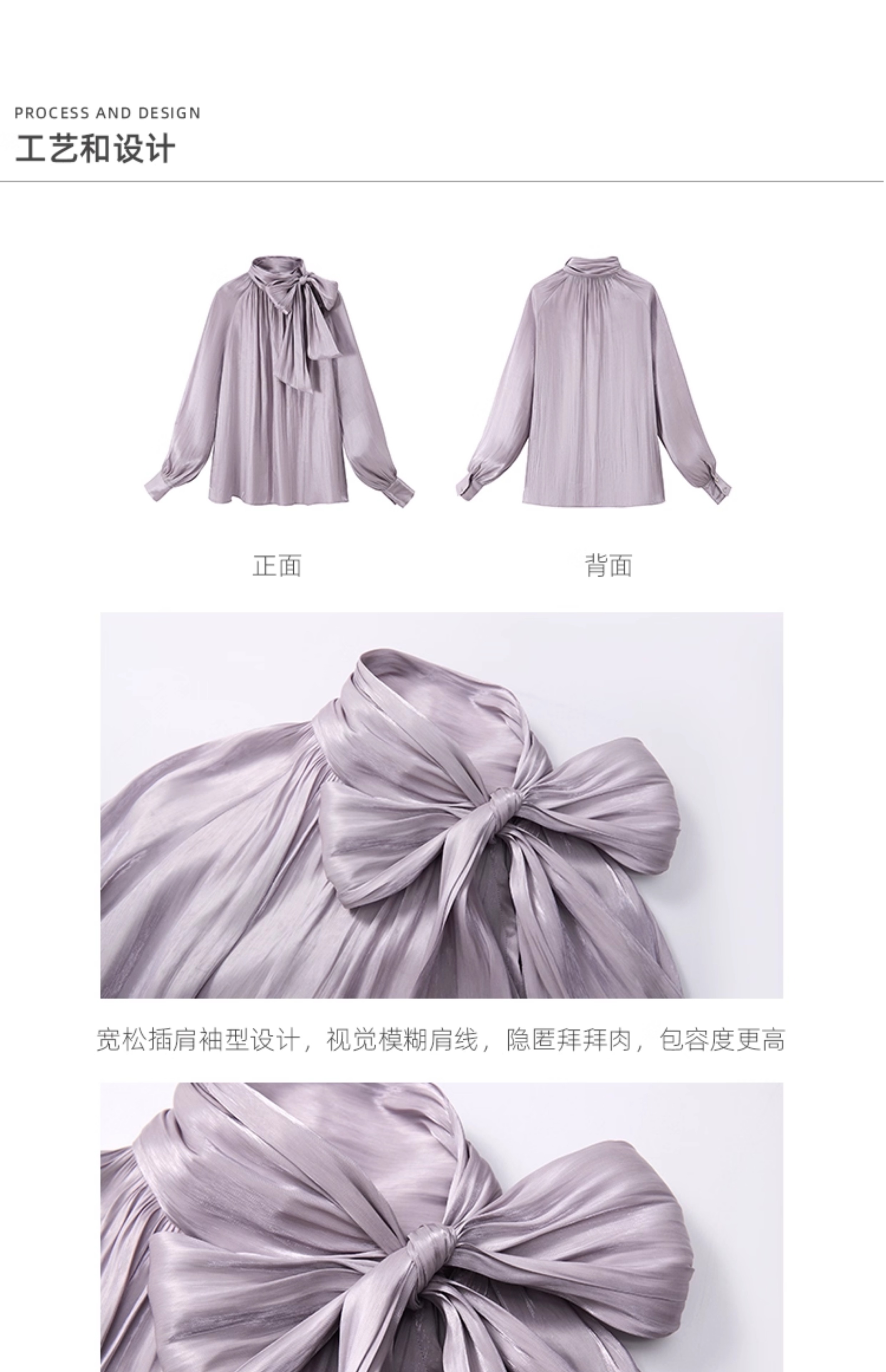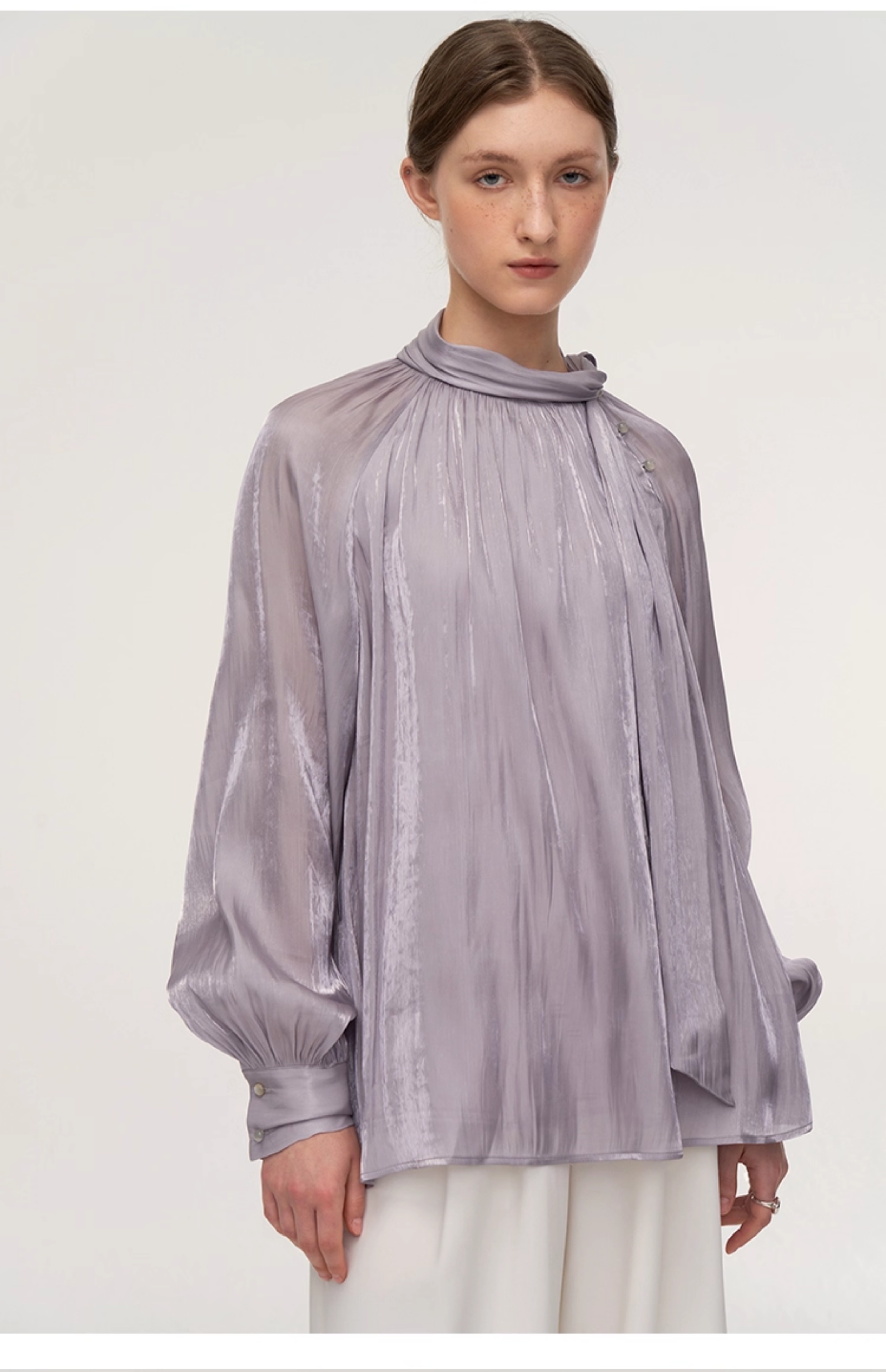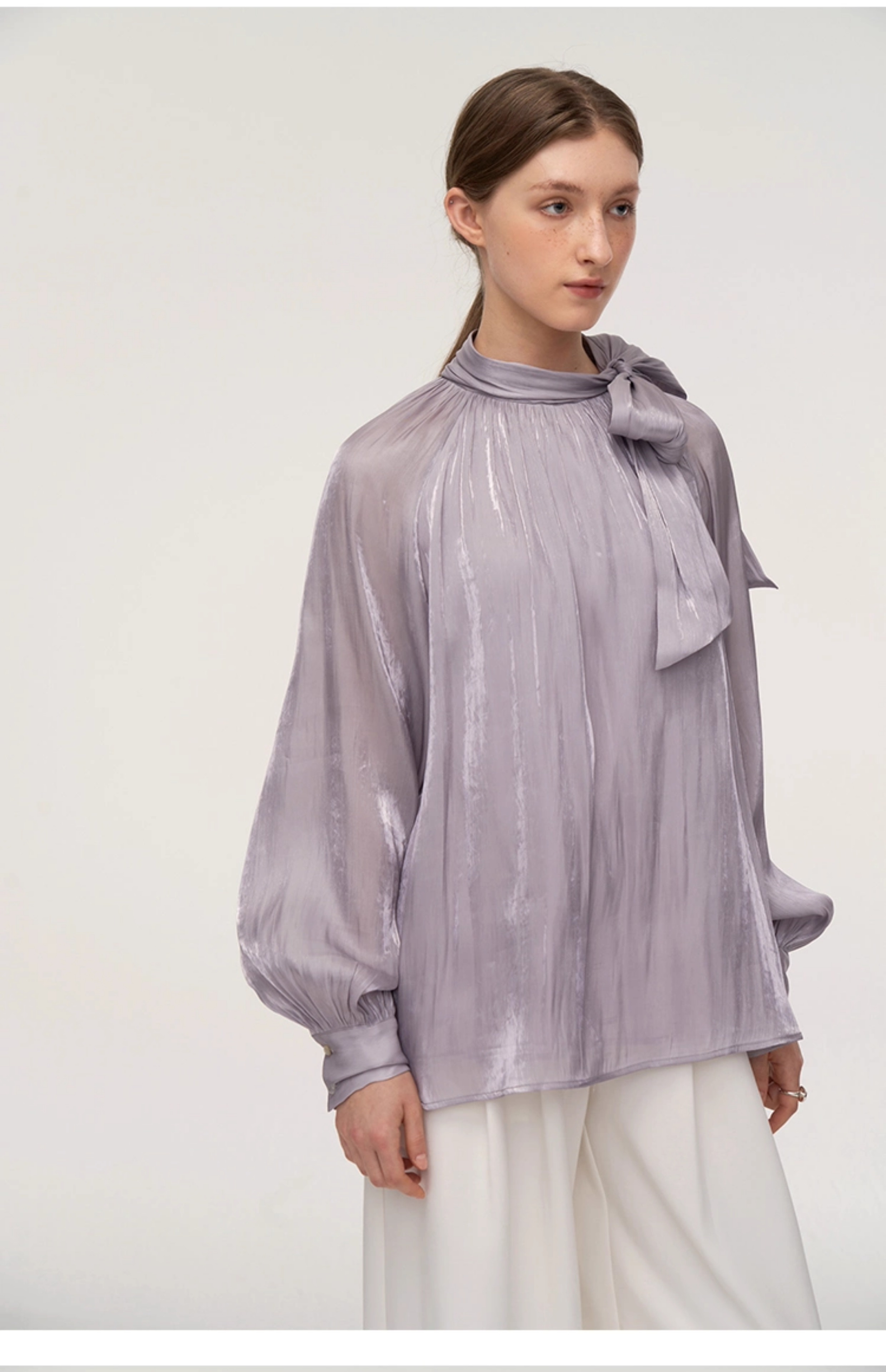 ASAYA3058 Original knotted pleated loose raglan long-sleeved shirt