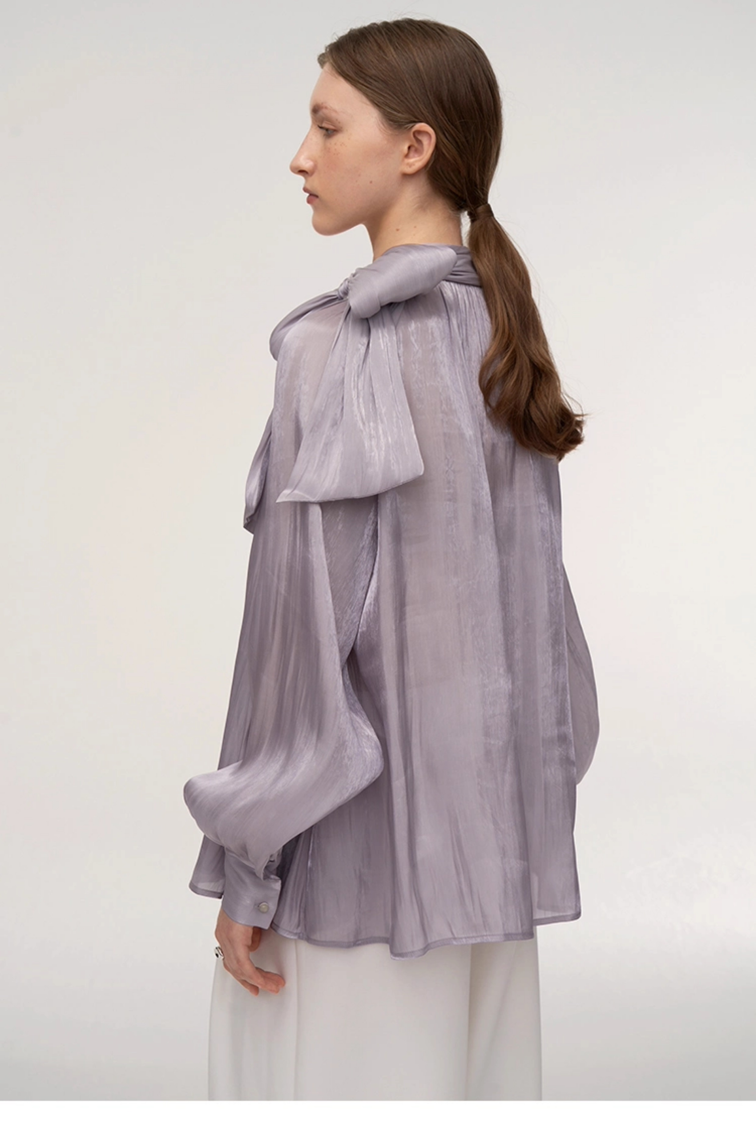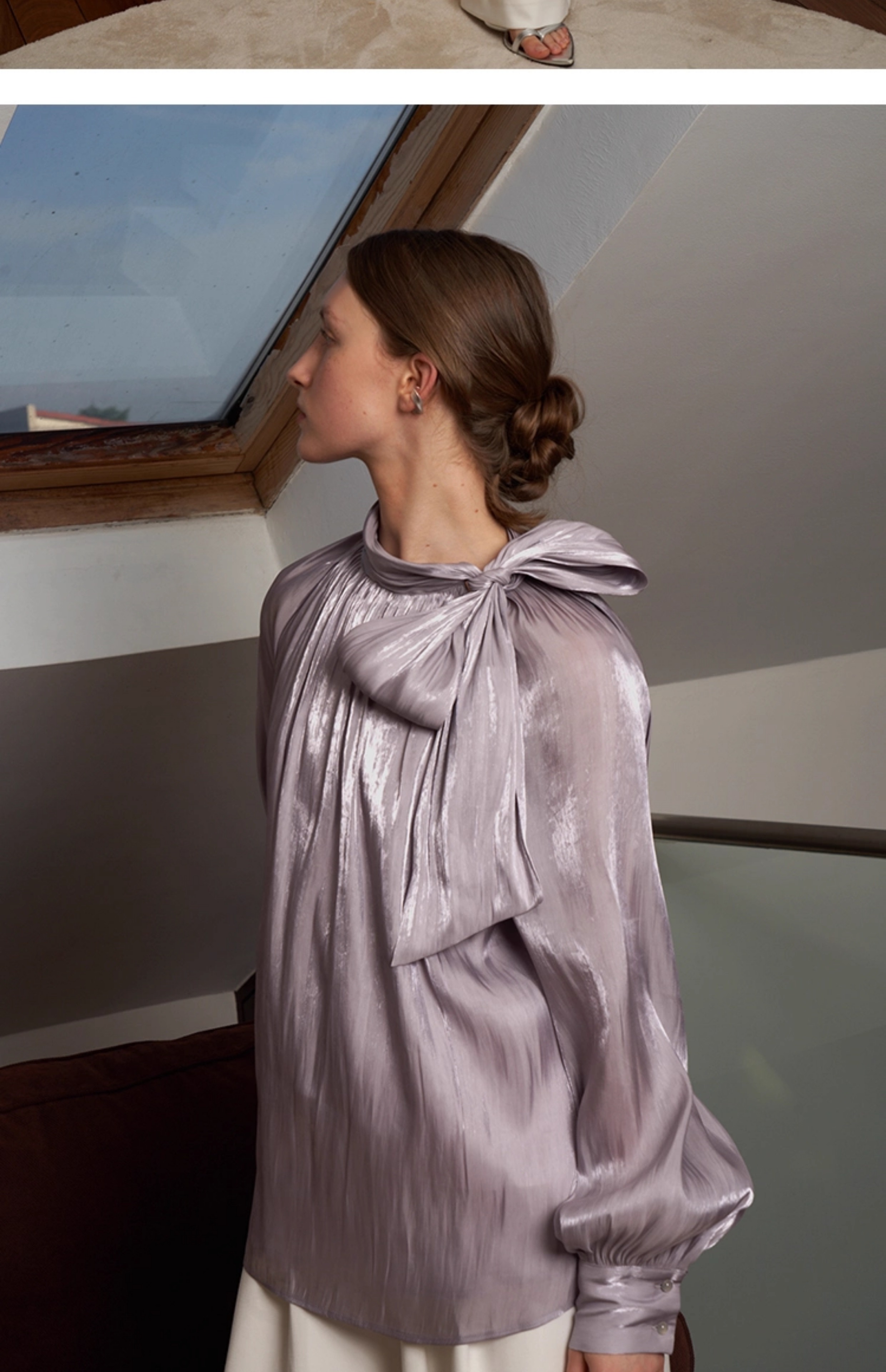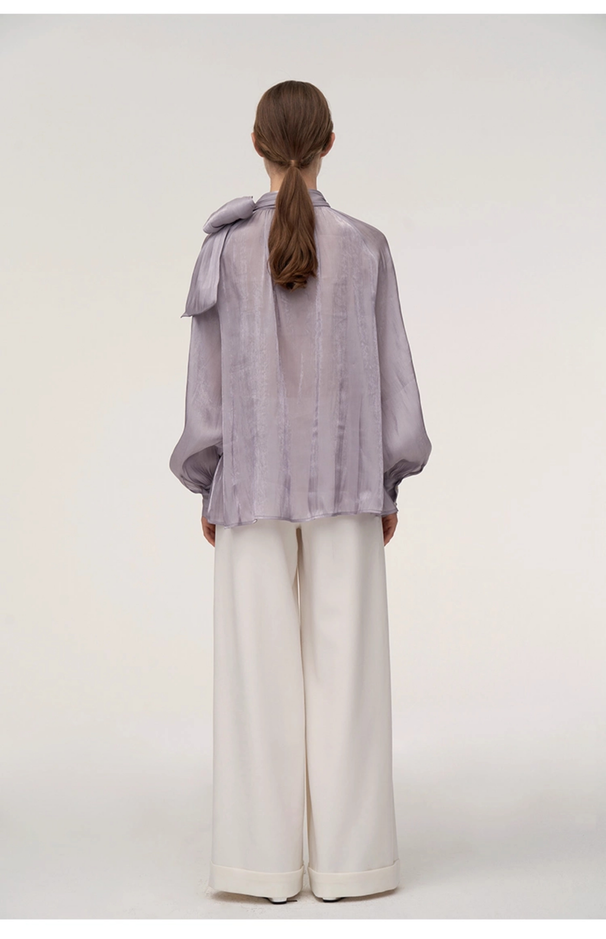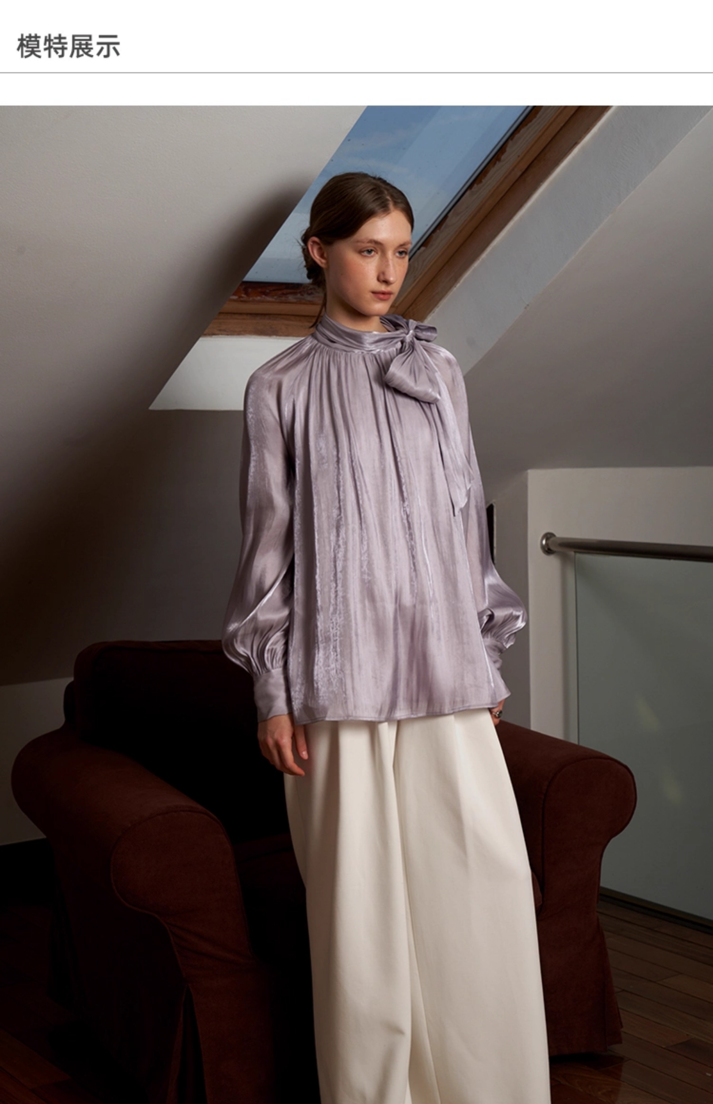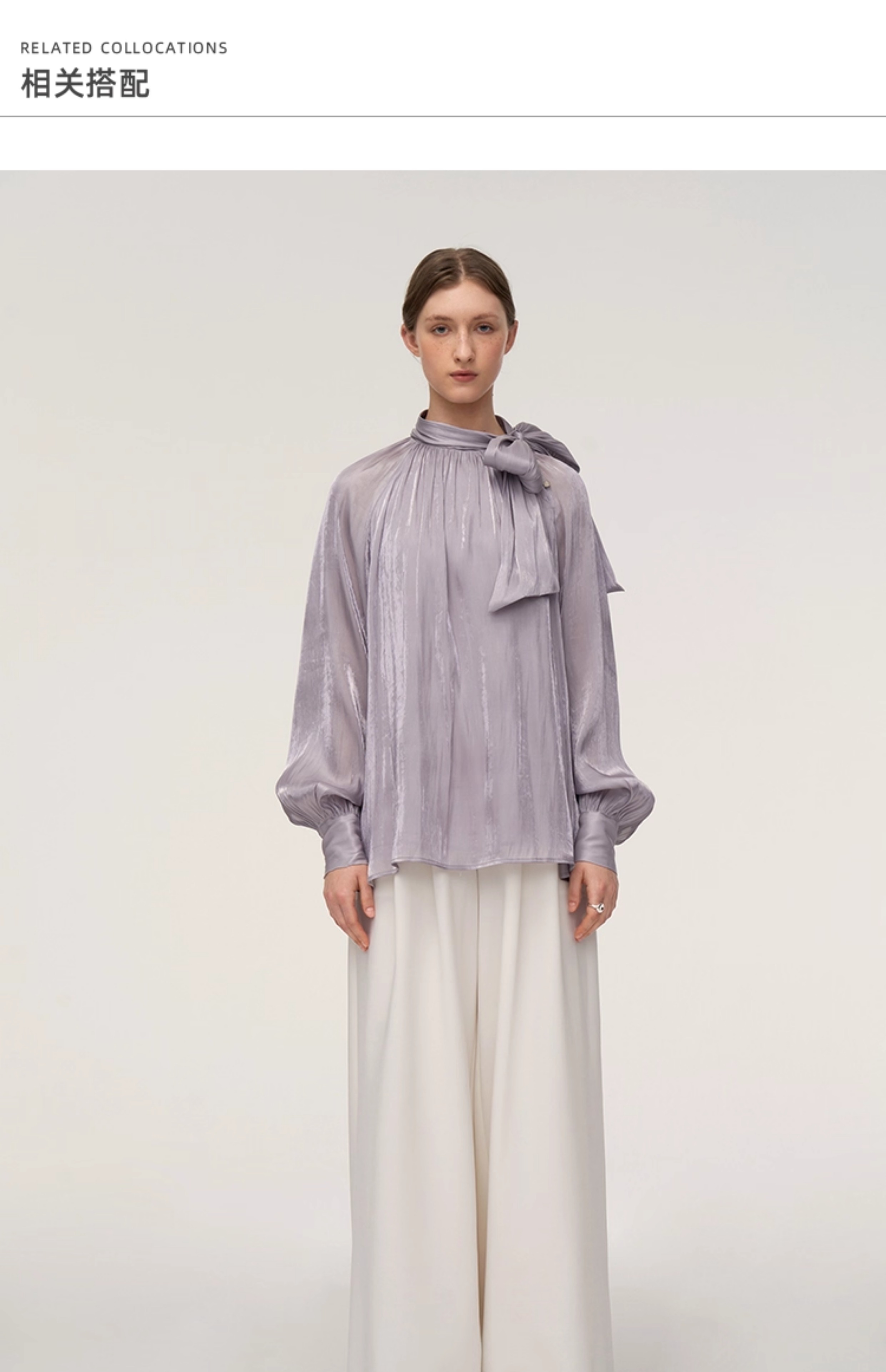ASAYA3058 Original knotted pleated loose raglan long-sleeved shirt
