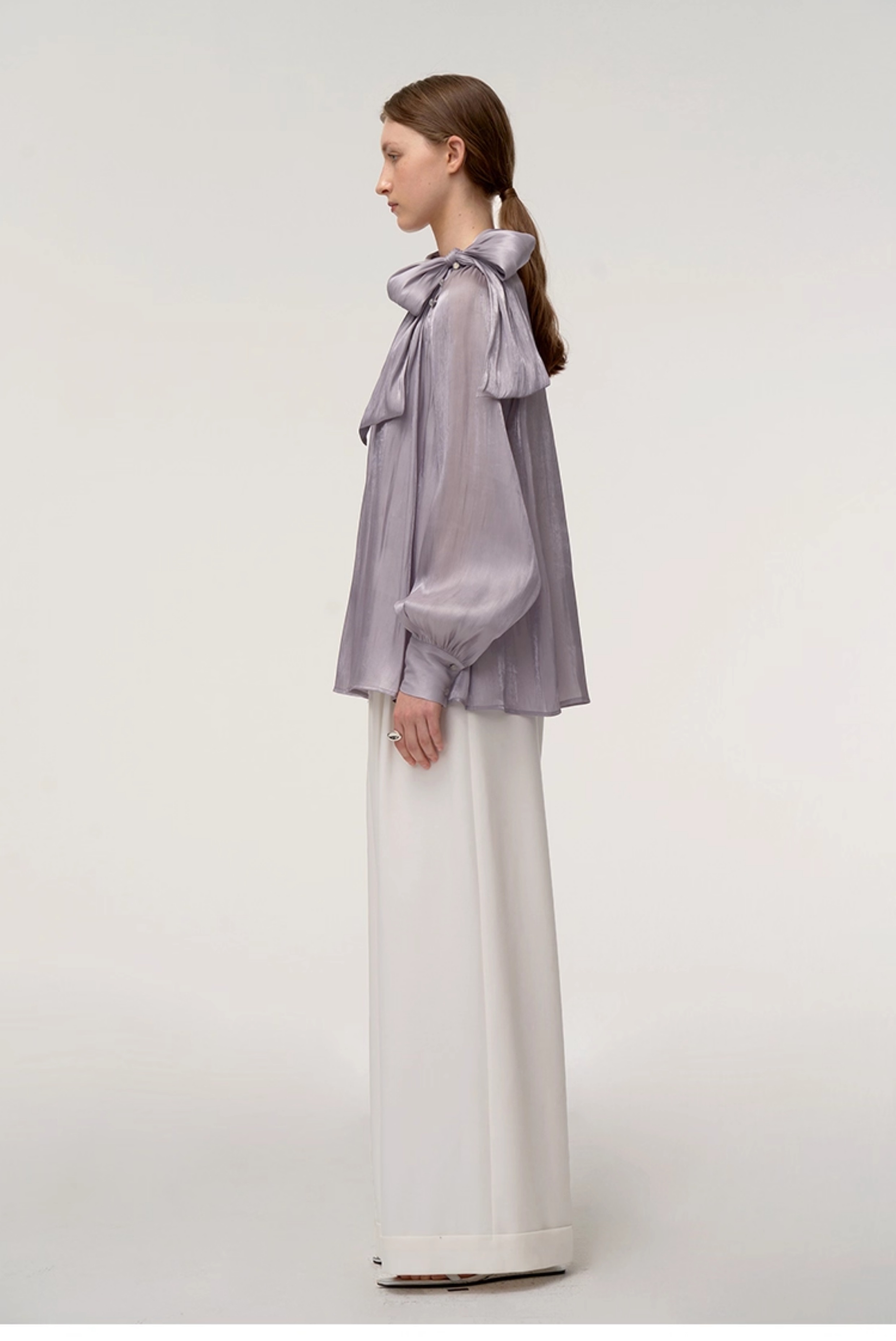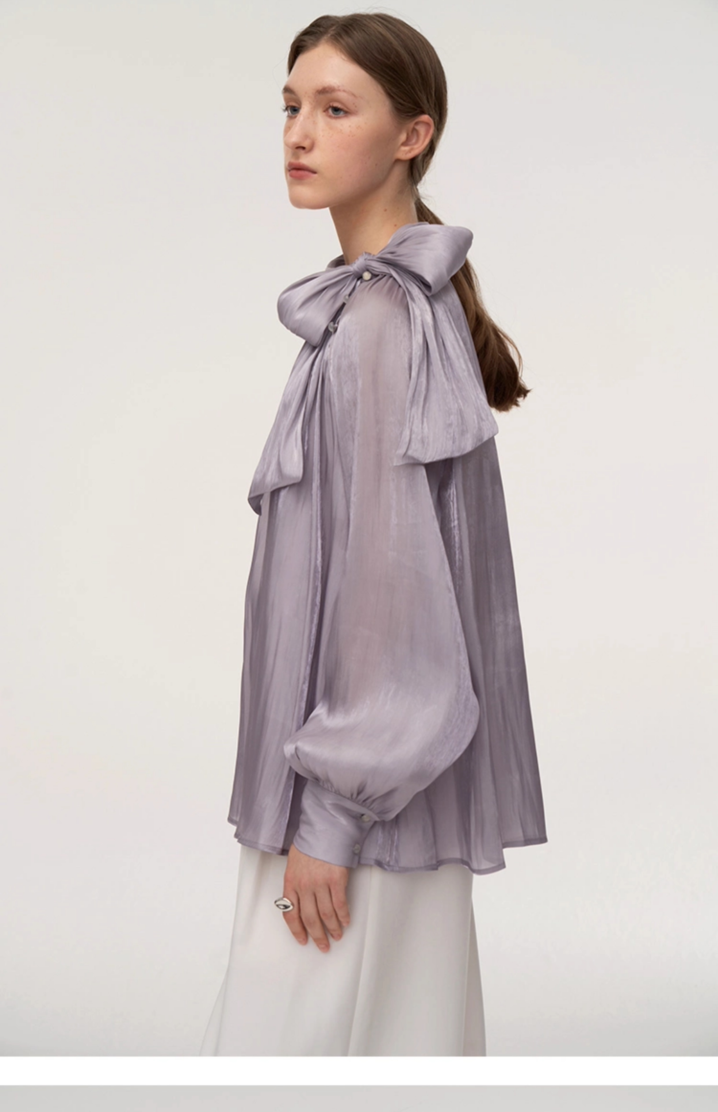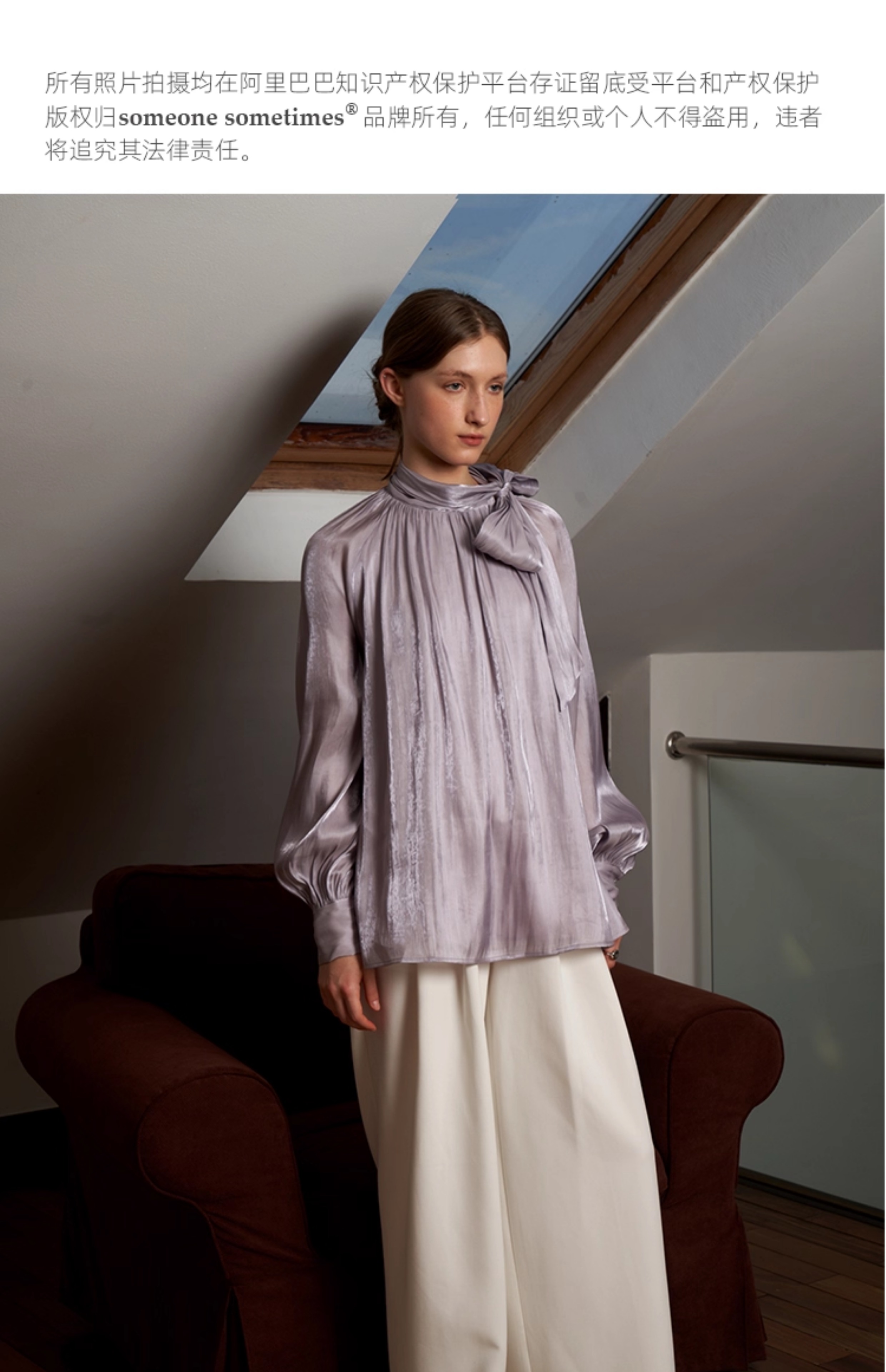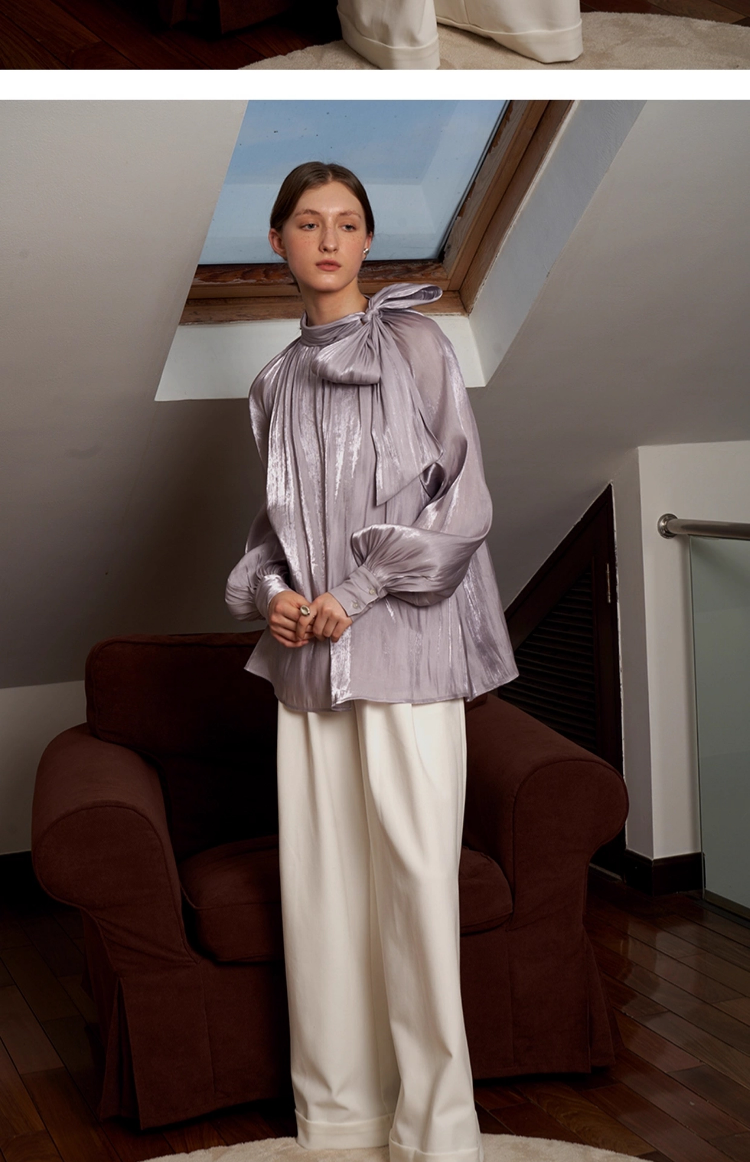 ASAYA3058 Original knotted pleated loose raglan long-sleeved shirt