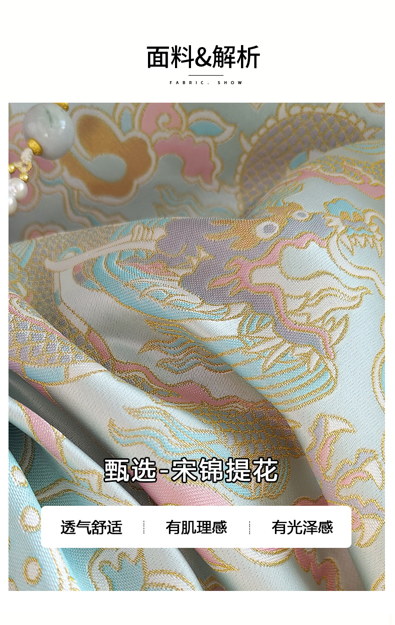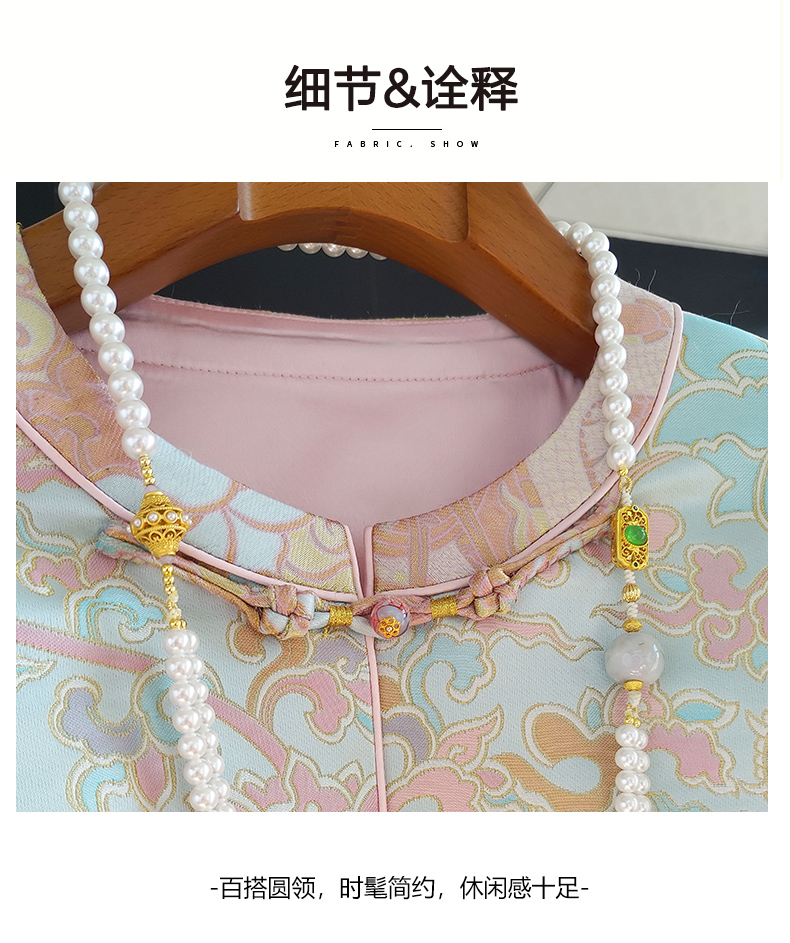 | Style details | Jacquard, button, embroidery, three-dimensional decoration, splicing, asymmetrical |