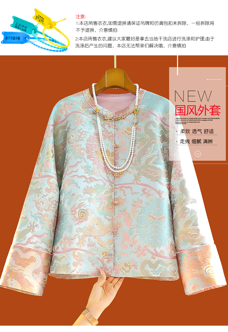 ASAYA4346 - Pastel Brocade Tang Coat with Dragon Pattern 🐉🩵🌸