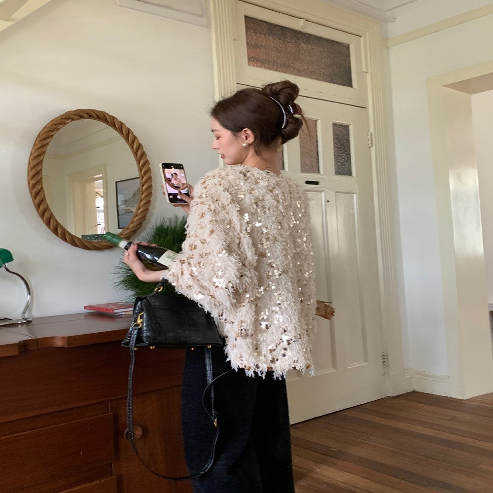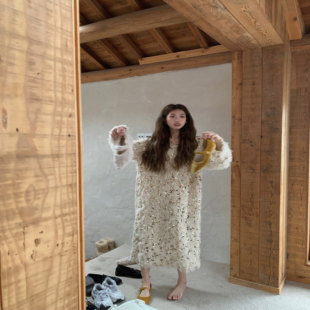 ASAYA2745 Sparkling and cute festive atmosphere sequined sweater dress