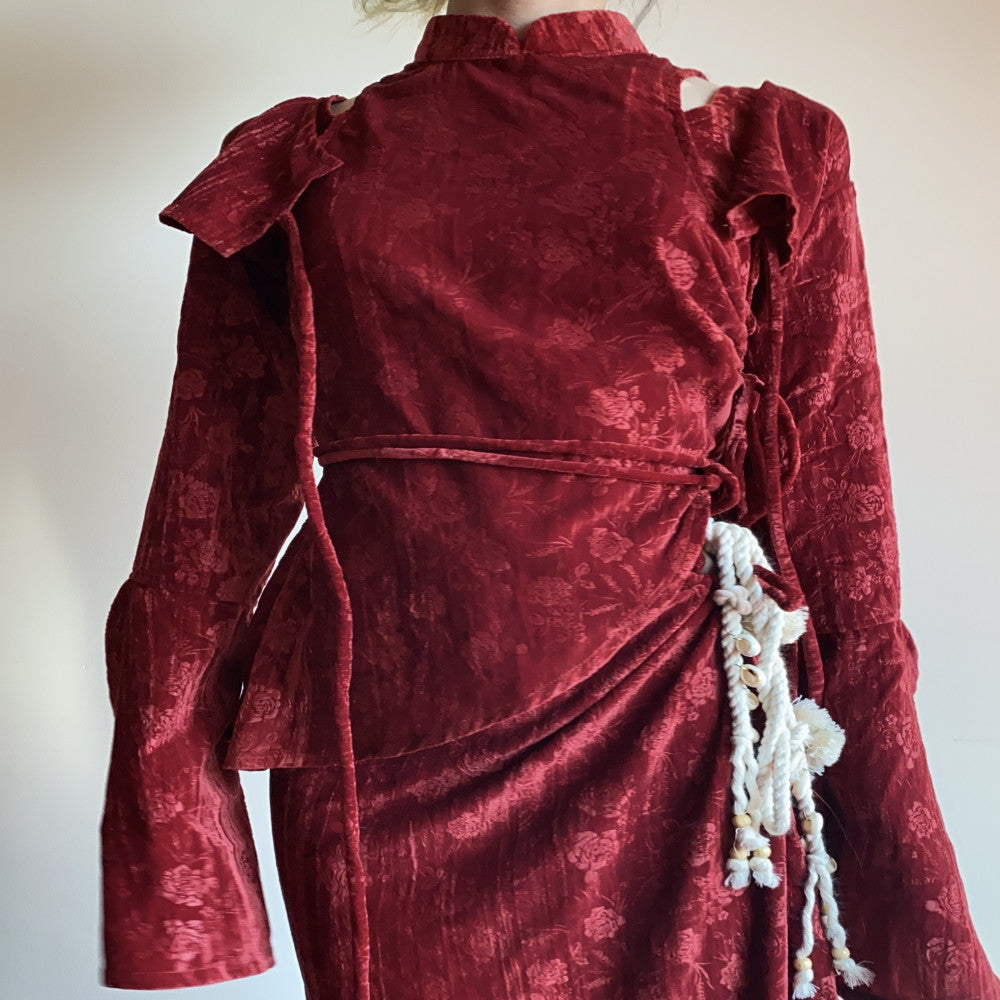 ASAYA-3829: Elegant Red Velvet Cheongsam Set ✨