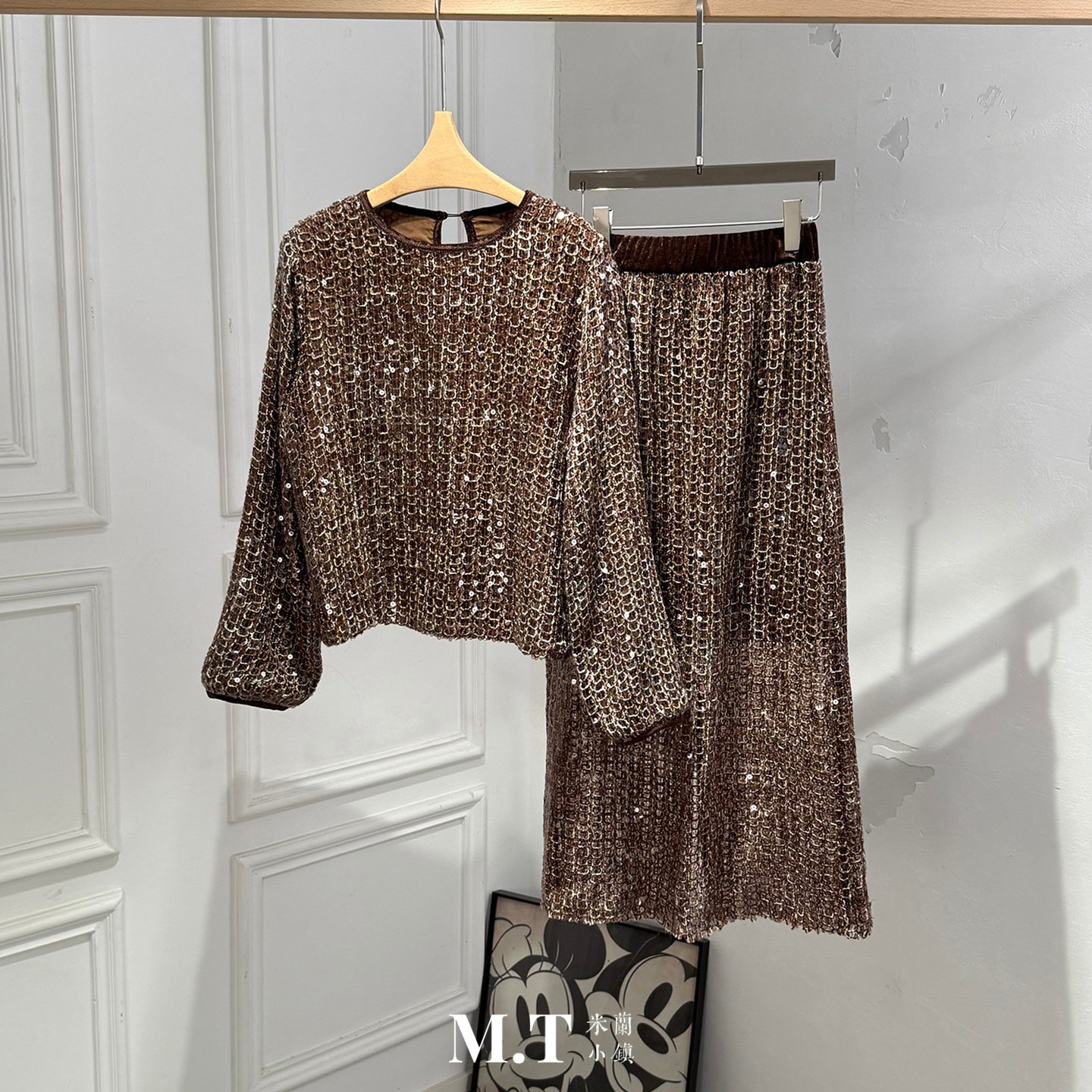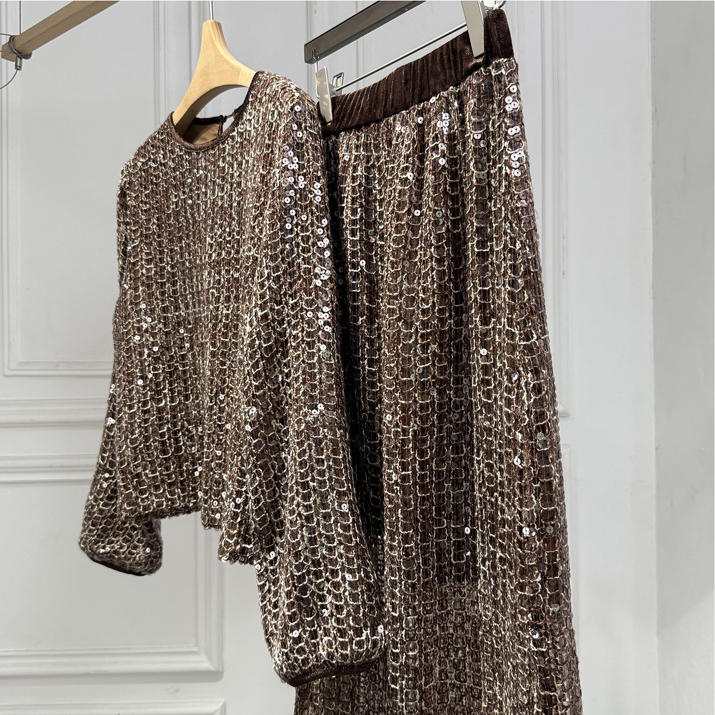 ASAYA5519 – Golden Mocha Sequin Set ✨🤎