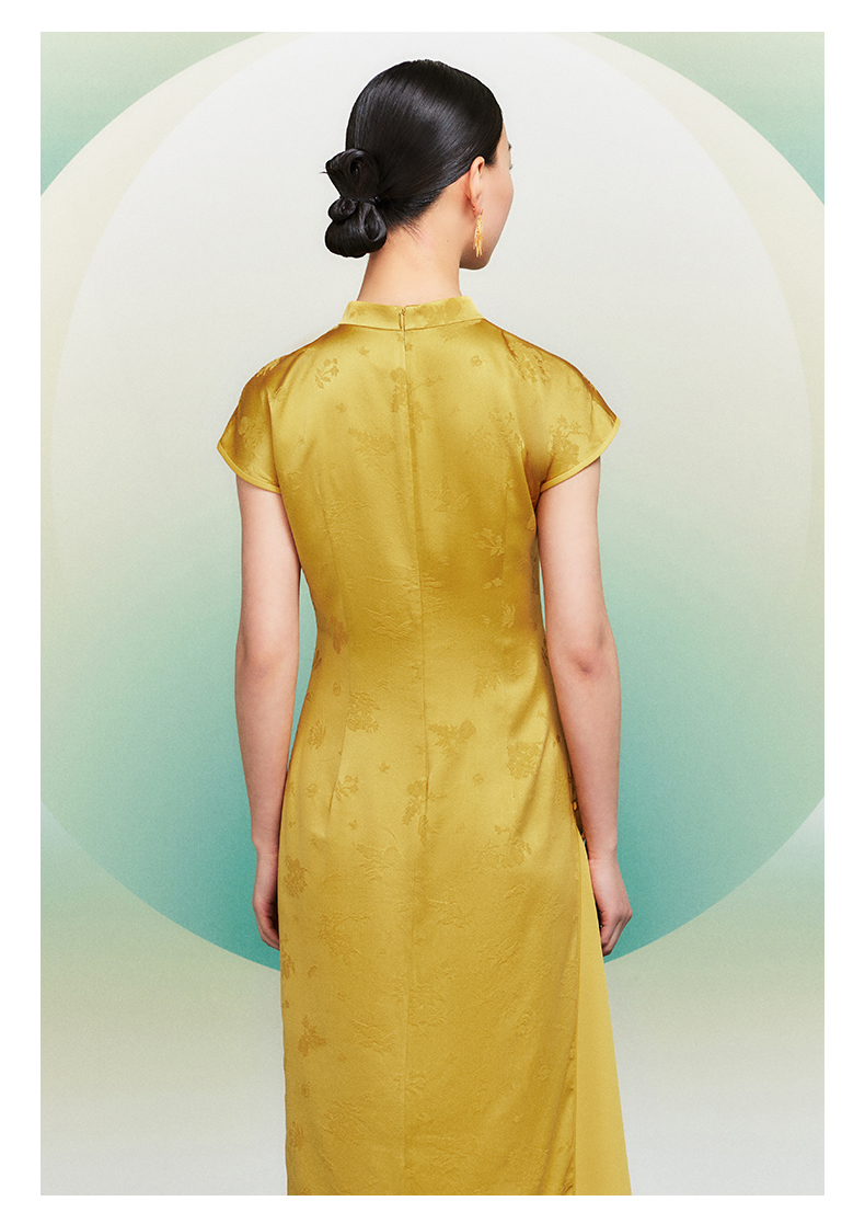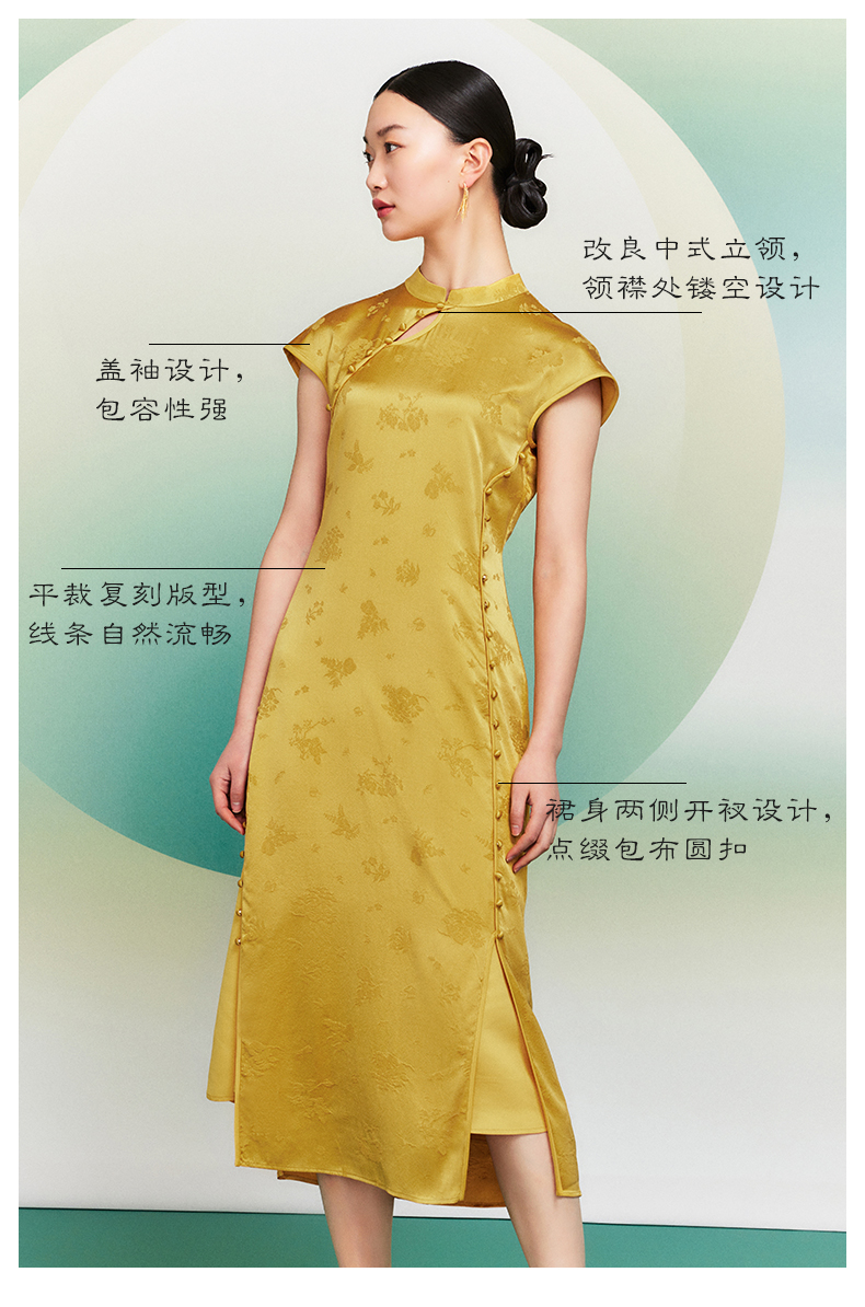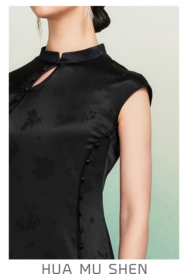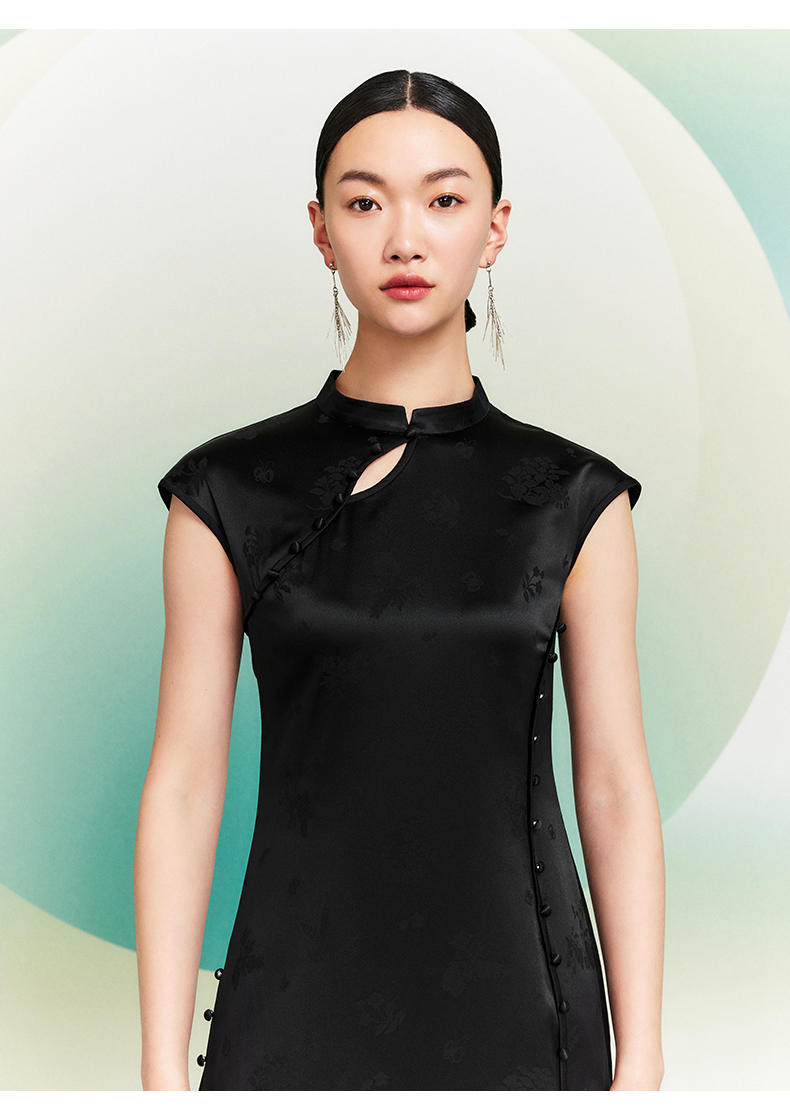 Asaya1021 - Spring Festival Gala Same Store Republic of China Style Reproduction Ancient Method Flat Cut Cheongsam Flower and Tree Deep Silk Chinese Dress