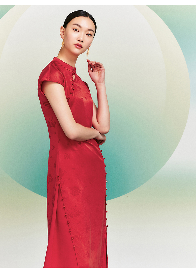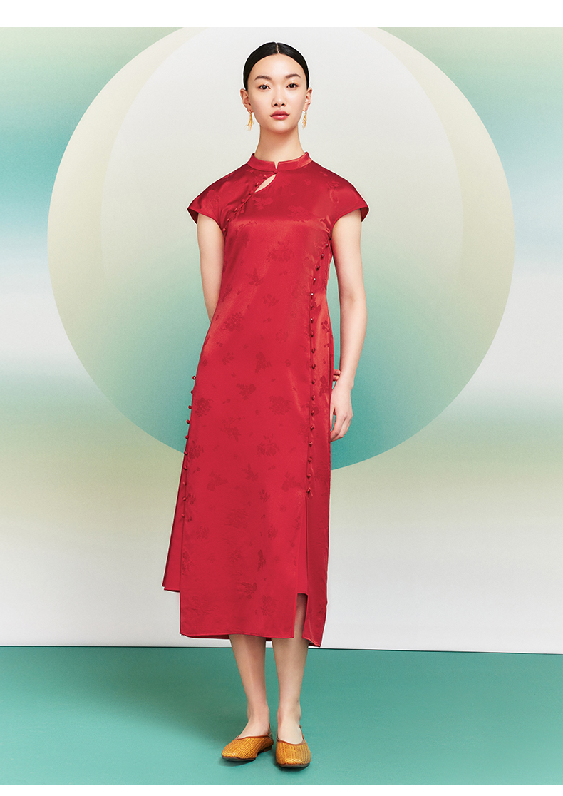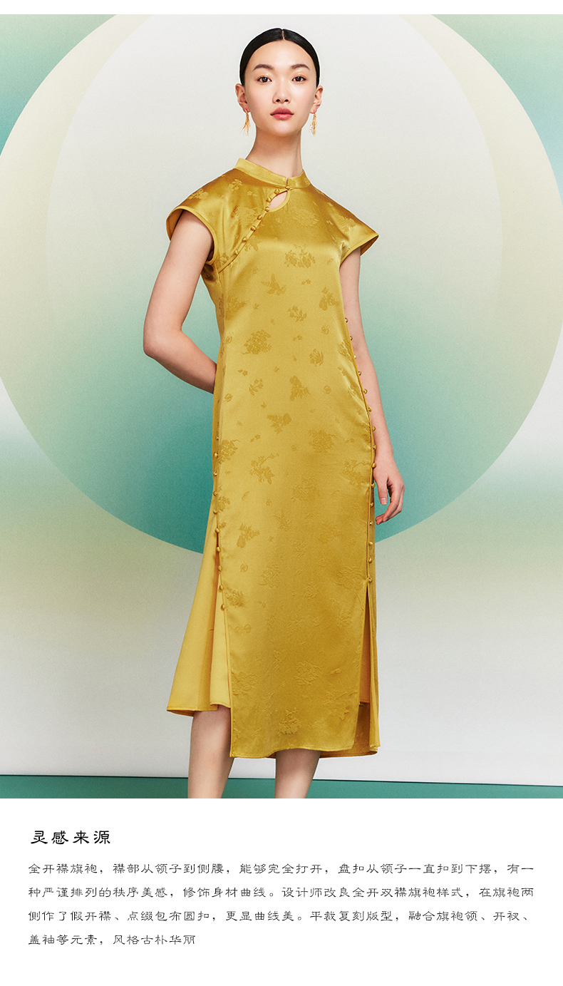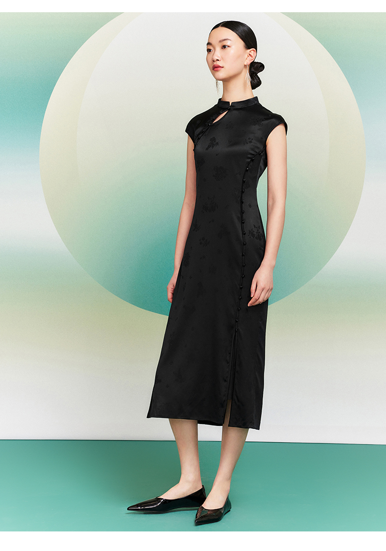 Asaya1021 - Spring Festival Gala Same Store Republic of China Style Reproduction Ancient Method Flat Cut Cheongsam Flower and Tree Deep Silk Chinese Dress