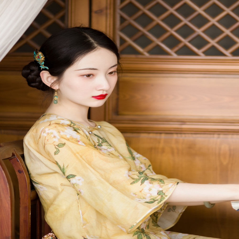 ASAYA4163 ✨ Vintage-Inspired Floral Qipao Dress 💛