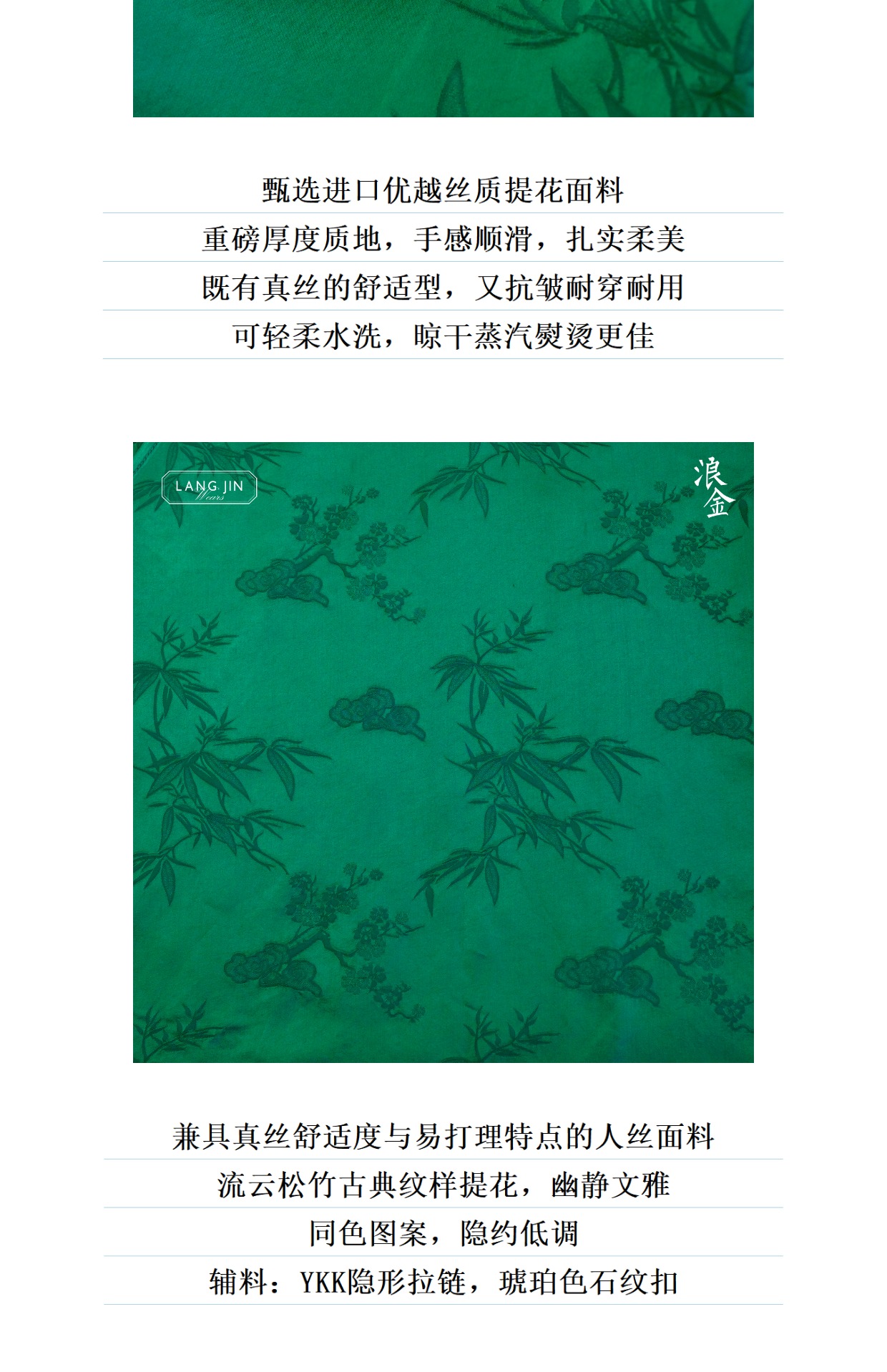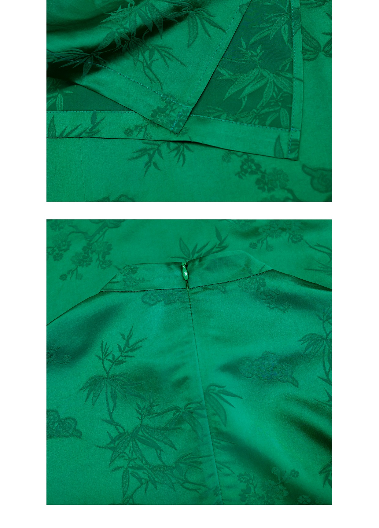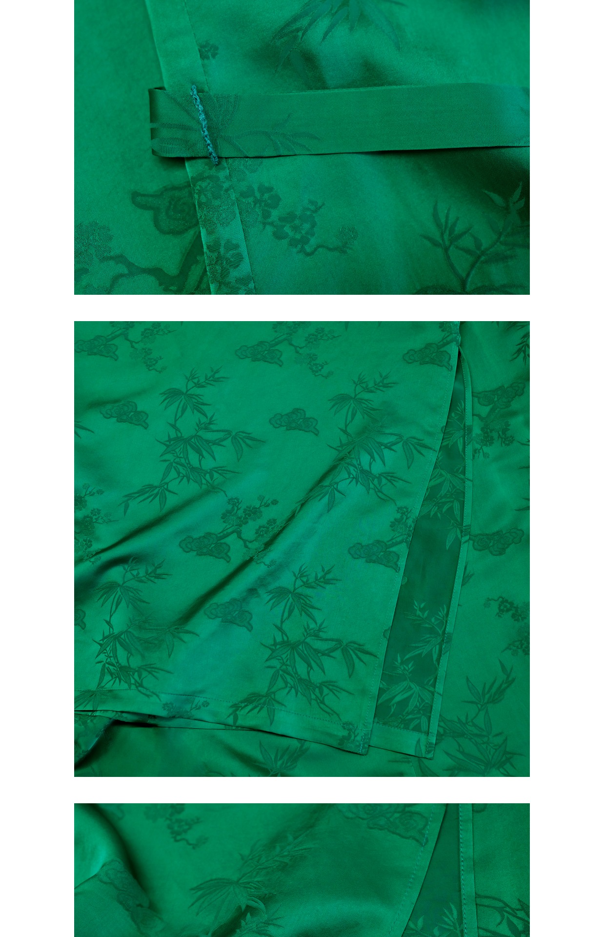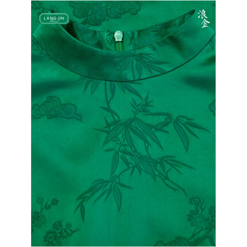 Asaya1349 - Stand up collar side slit dress silk jacquard long sleeved waist cinching tie H shaped long skirt children s style langjin gold