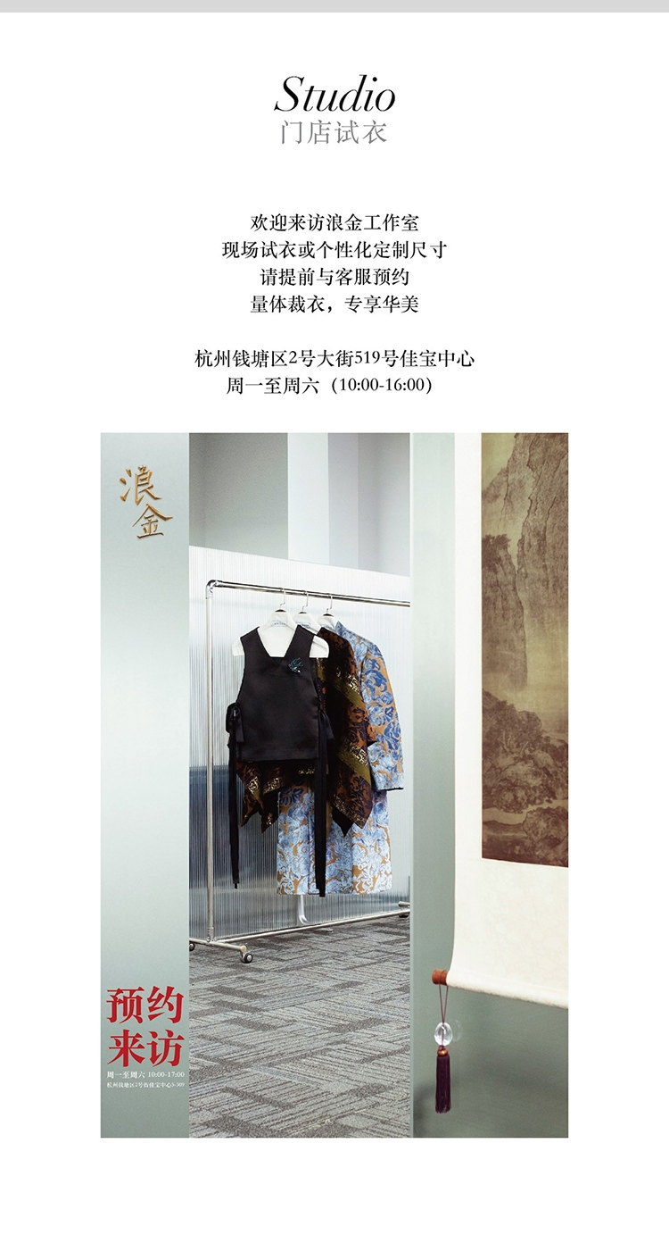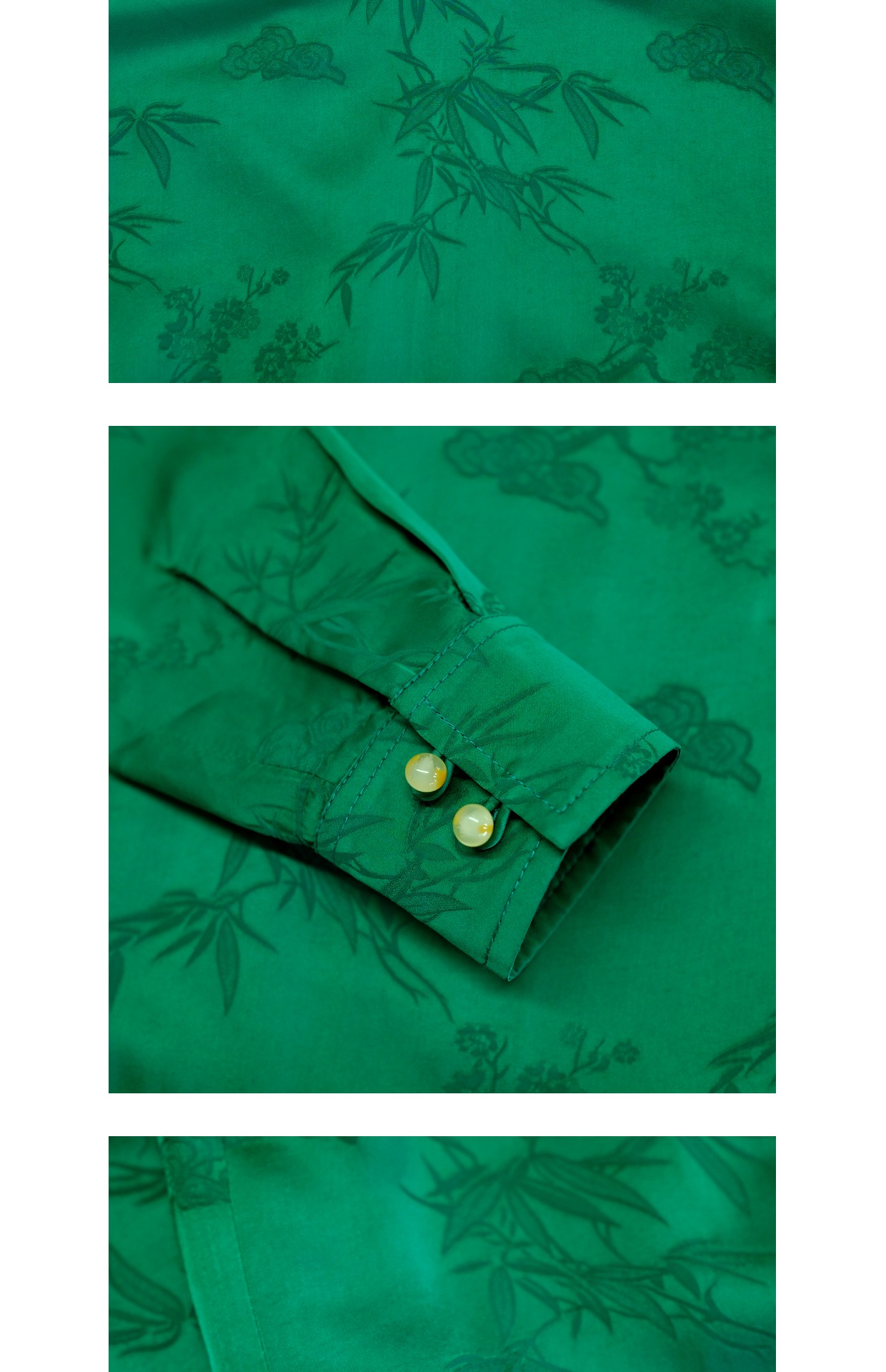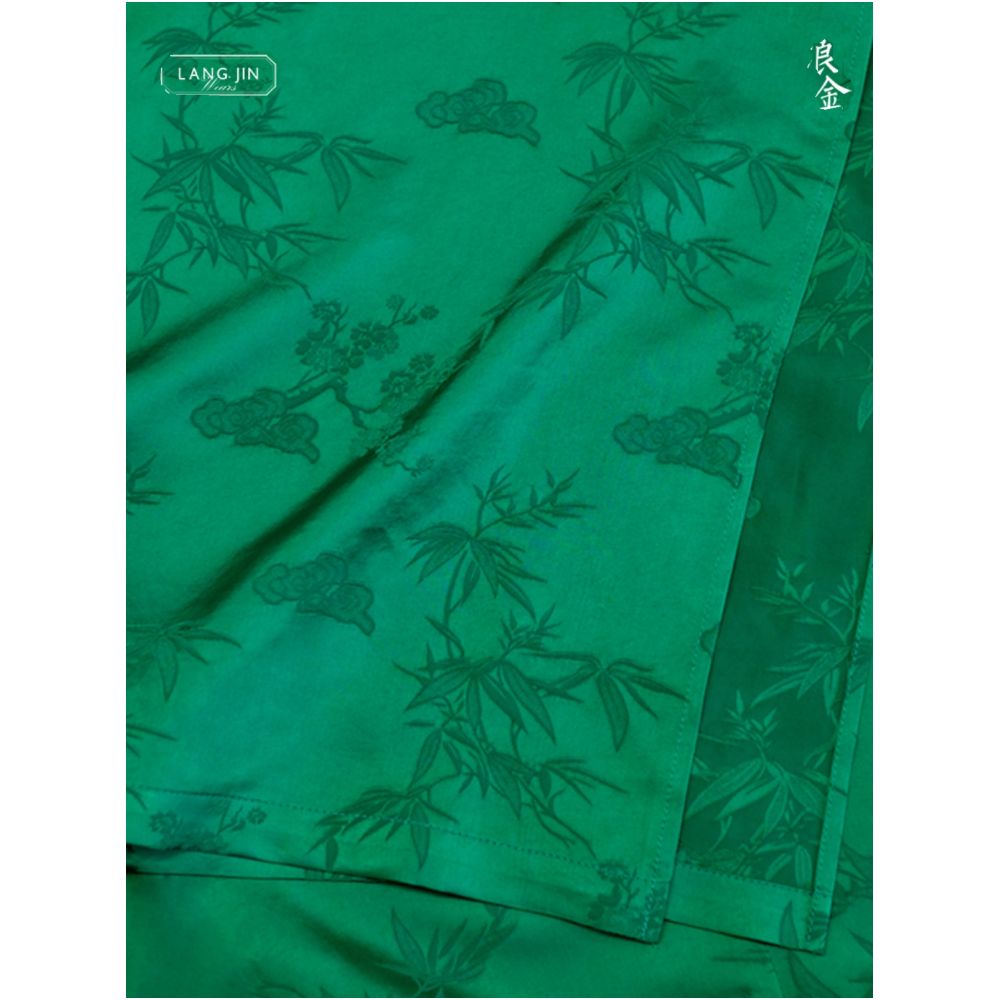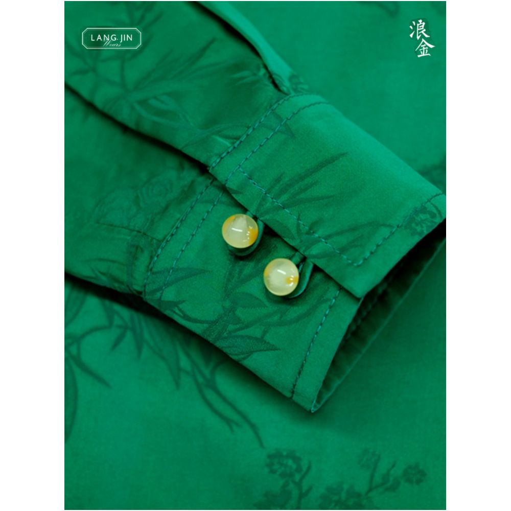 Asaya1349 - Stand up collar side slit dress silk jacquard long sleeved waist cinching tie H shaped long skirt children s style langjin gold